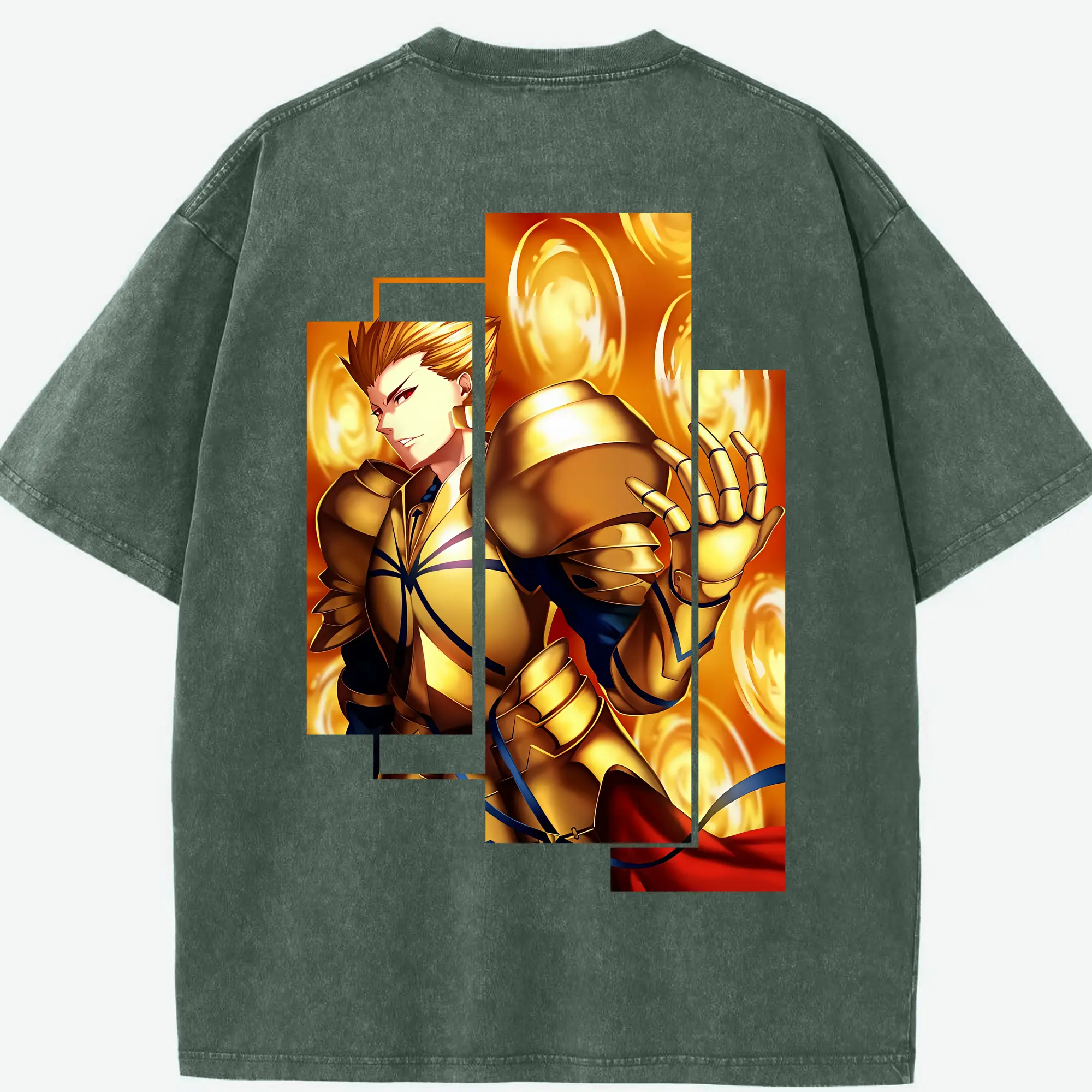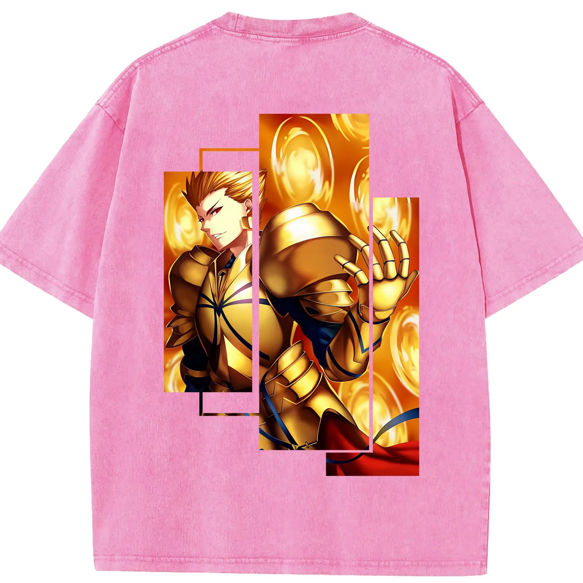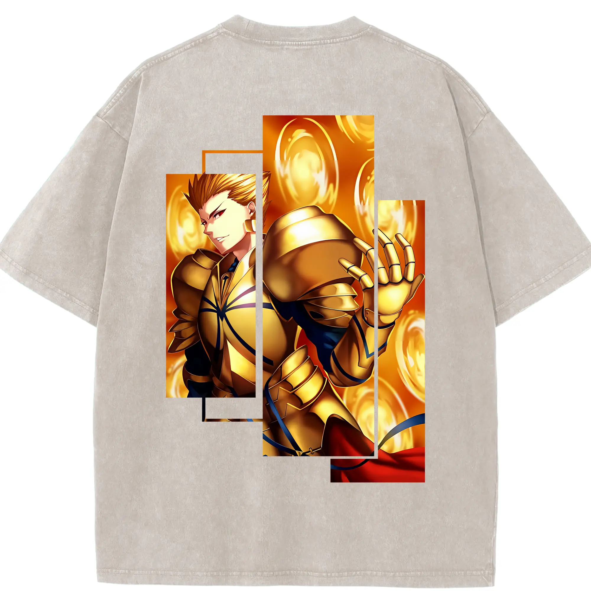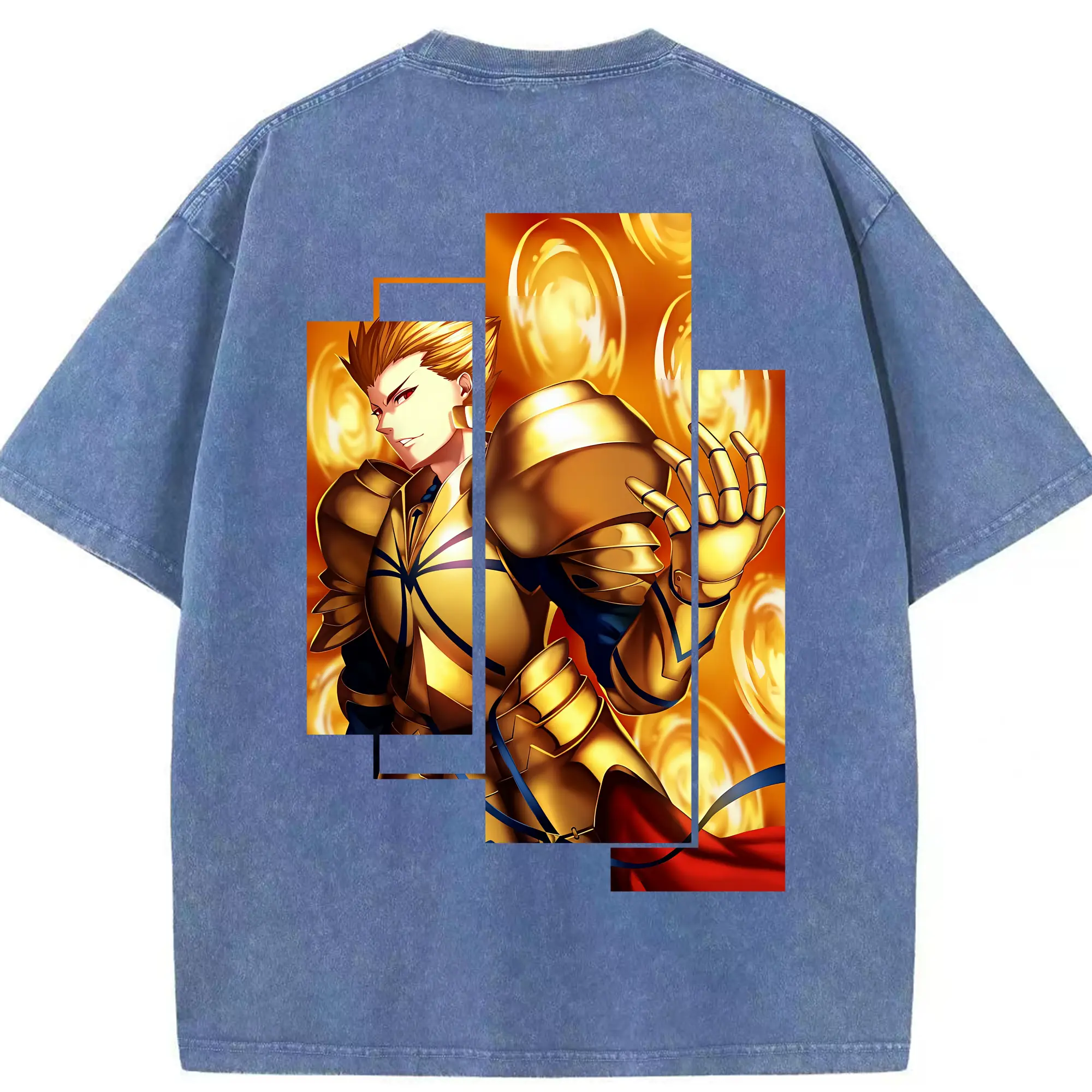 FGO グッズ,ギルガメッシュ - 綿100% ヴィンテージ風 半袖Tシャツ ・ フロントプリント ・ 柔らか肌触り ・ 通気性 快適 ・ スポーツ カジュアル 外出用