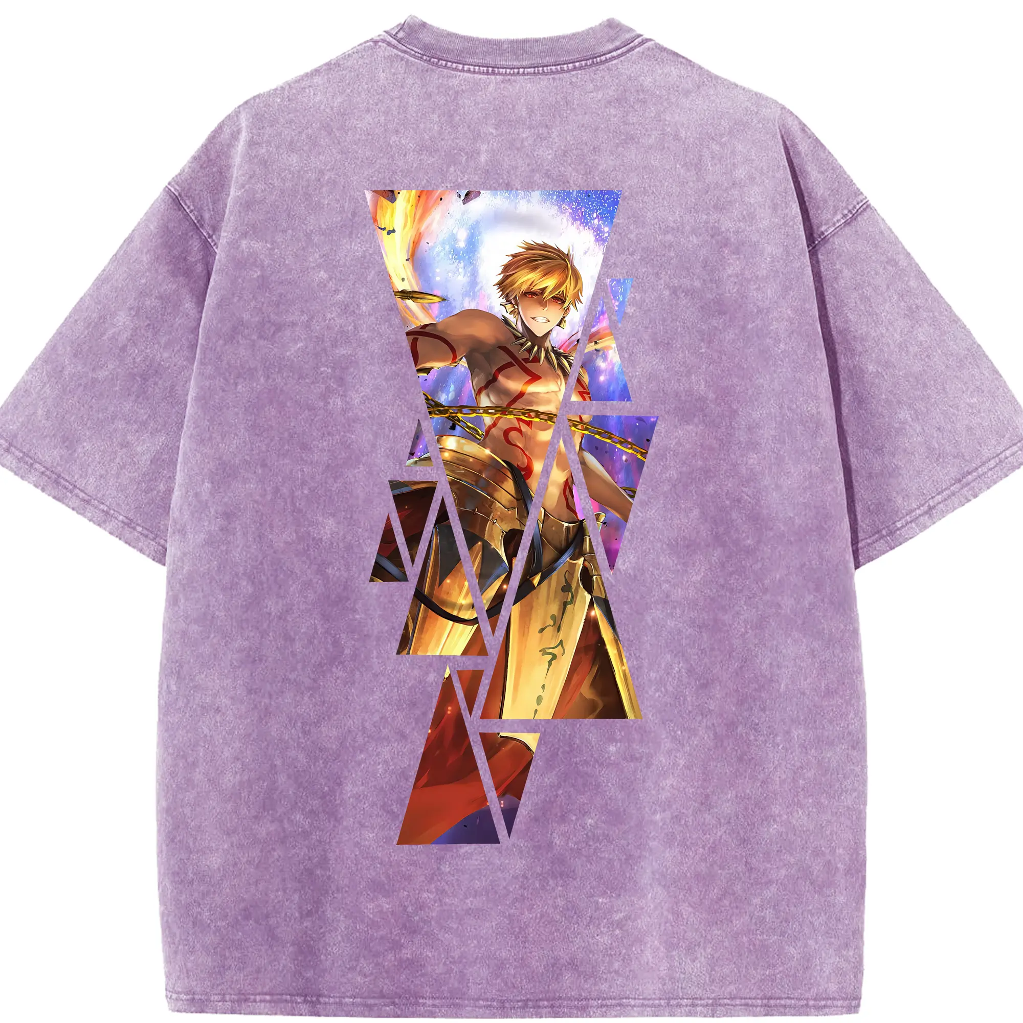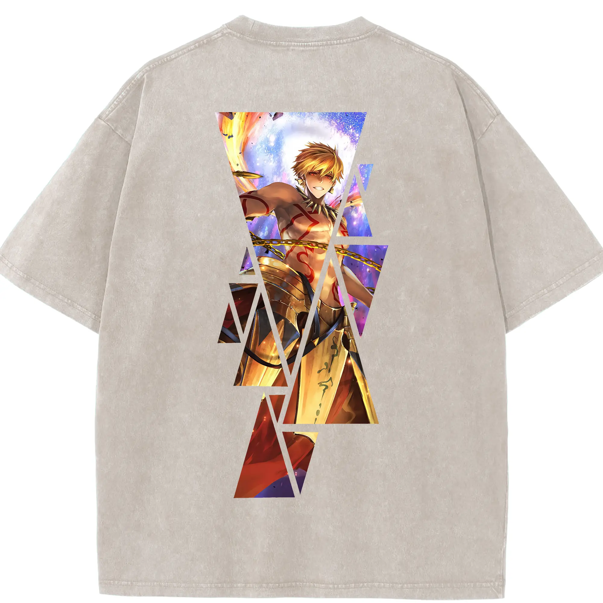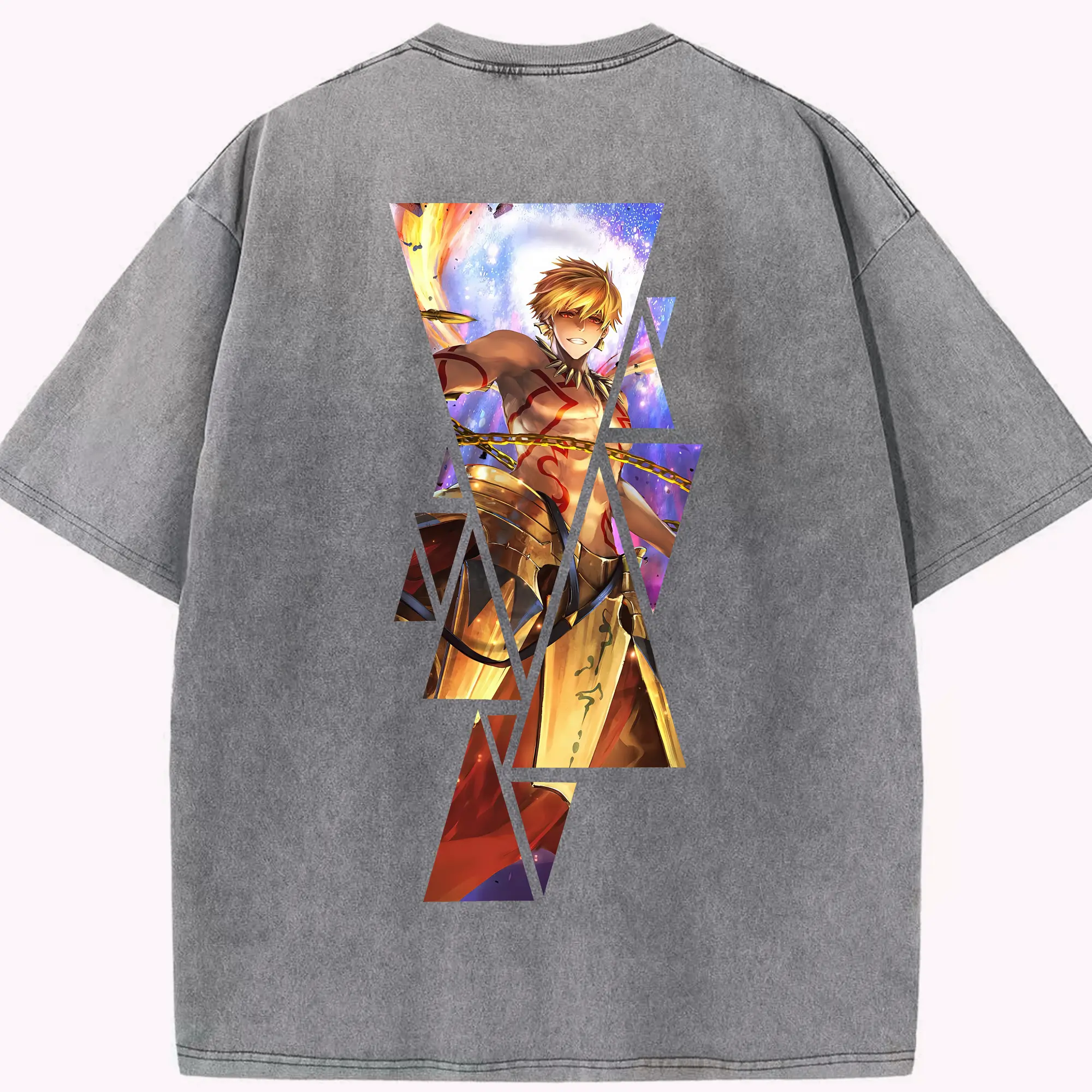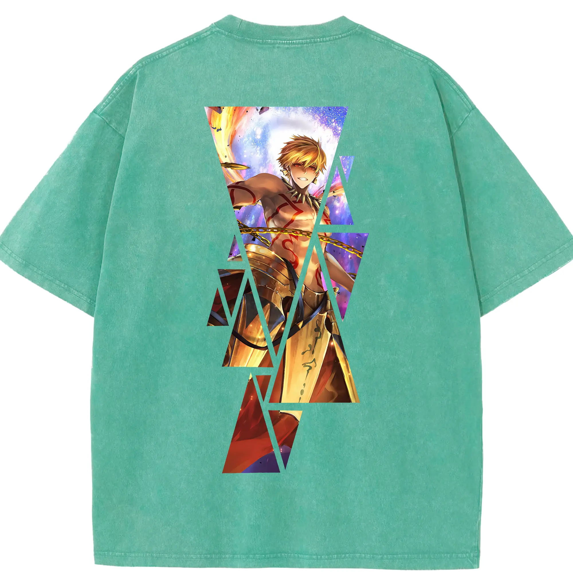 FGO グッズ,ギルガメッシュ - 綿100% ヴィンテージ風 半袖Tシャツ ・ フロントプリント ・ 柔らか肌触り ・ 通気性 快適 ・ スポーツ カジュアル 外出用