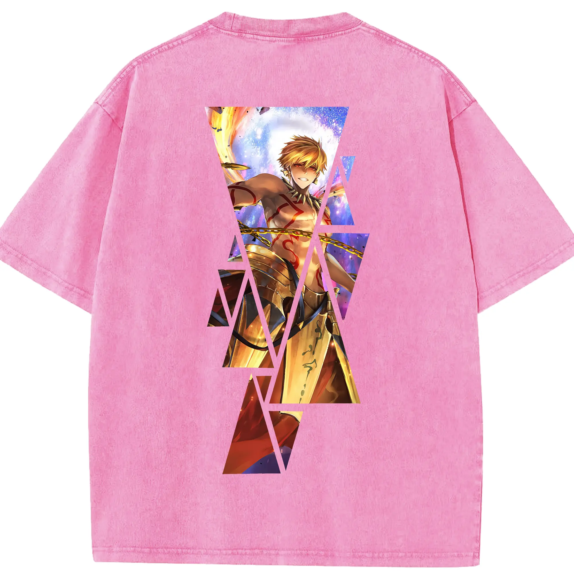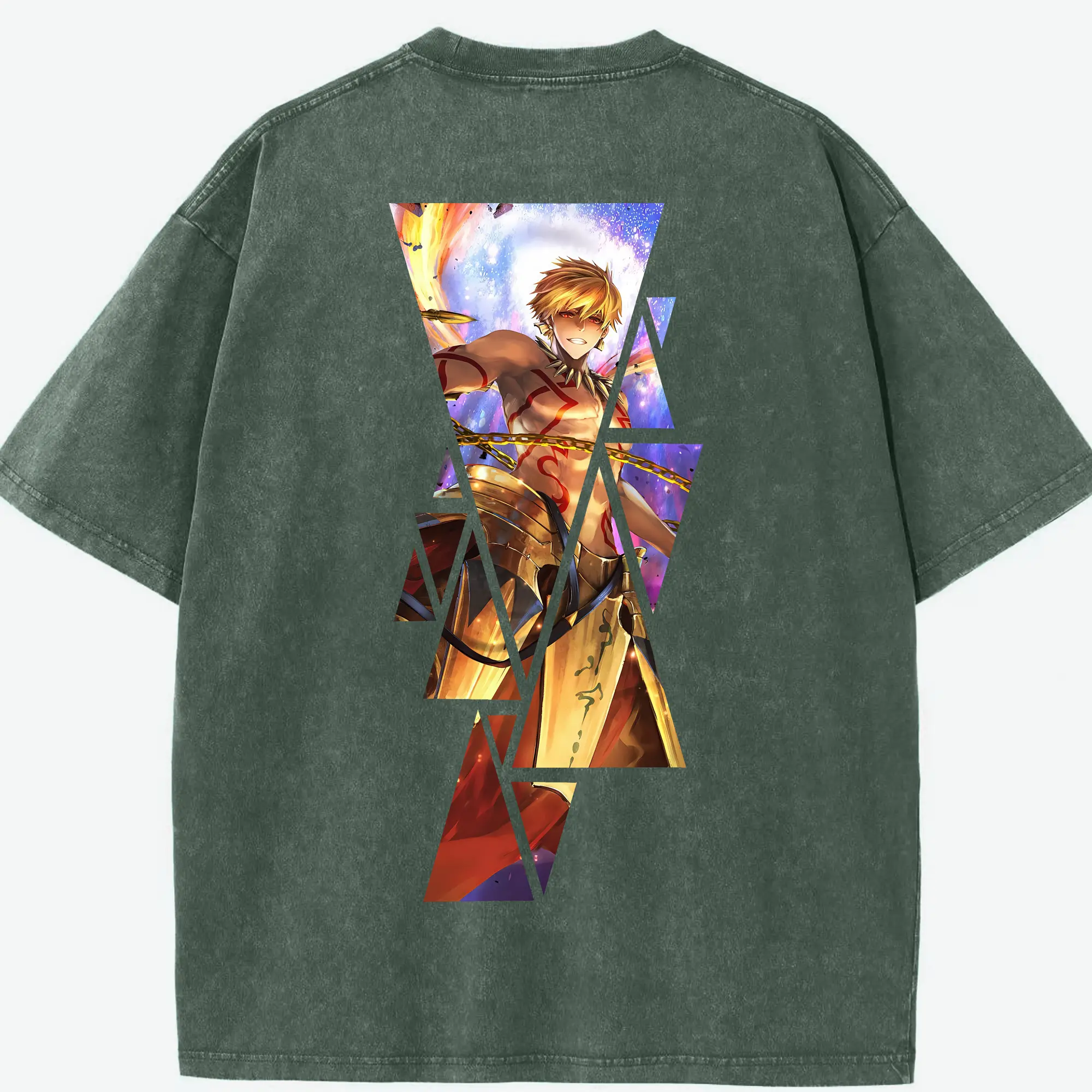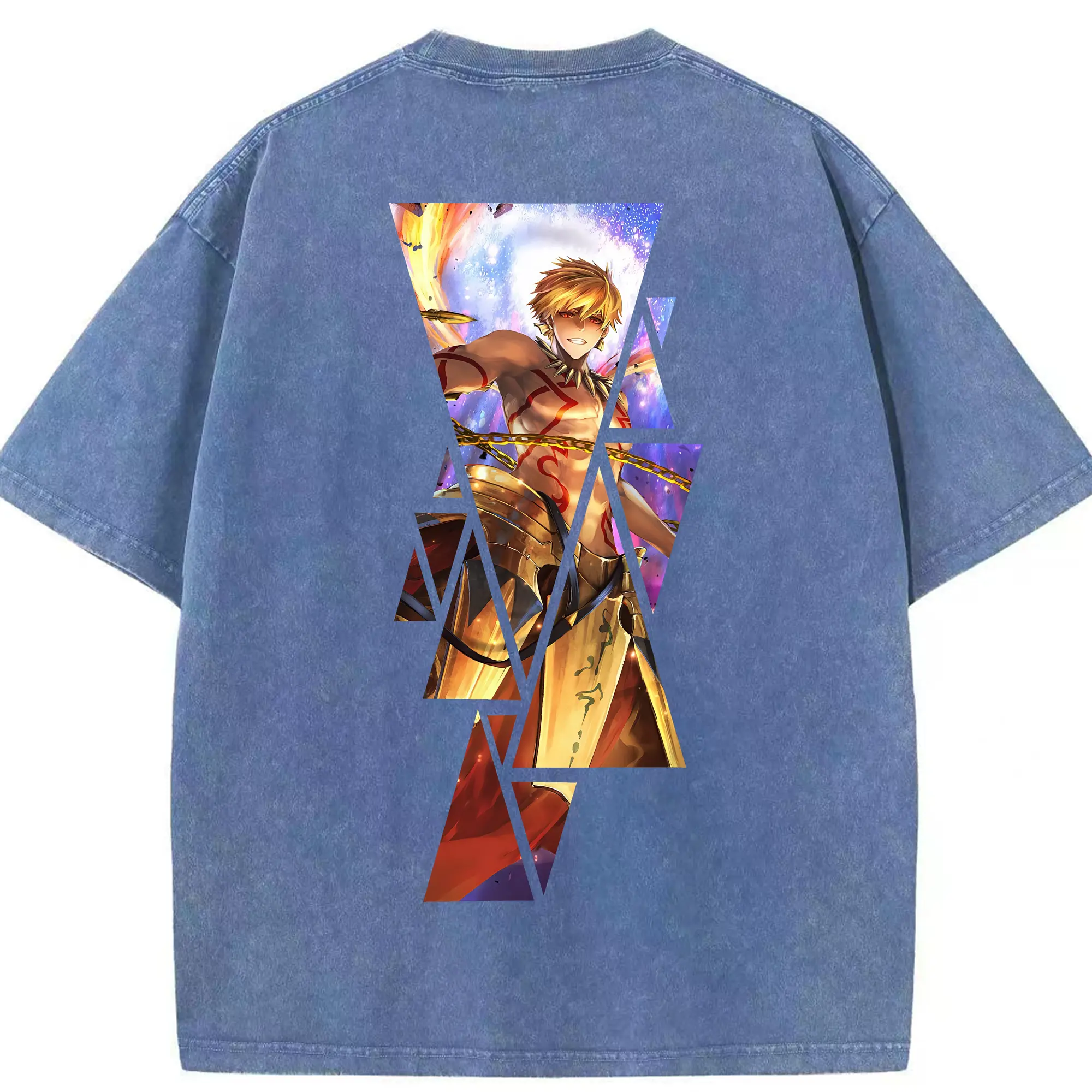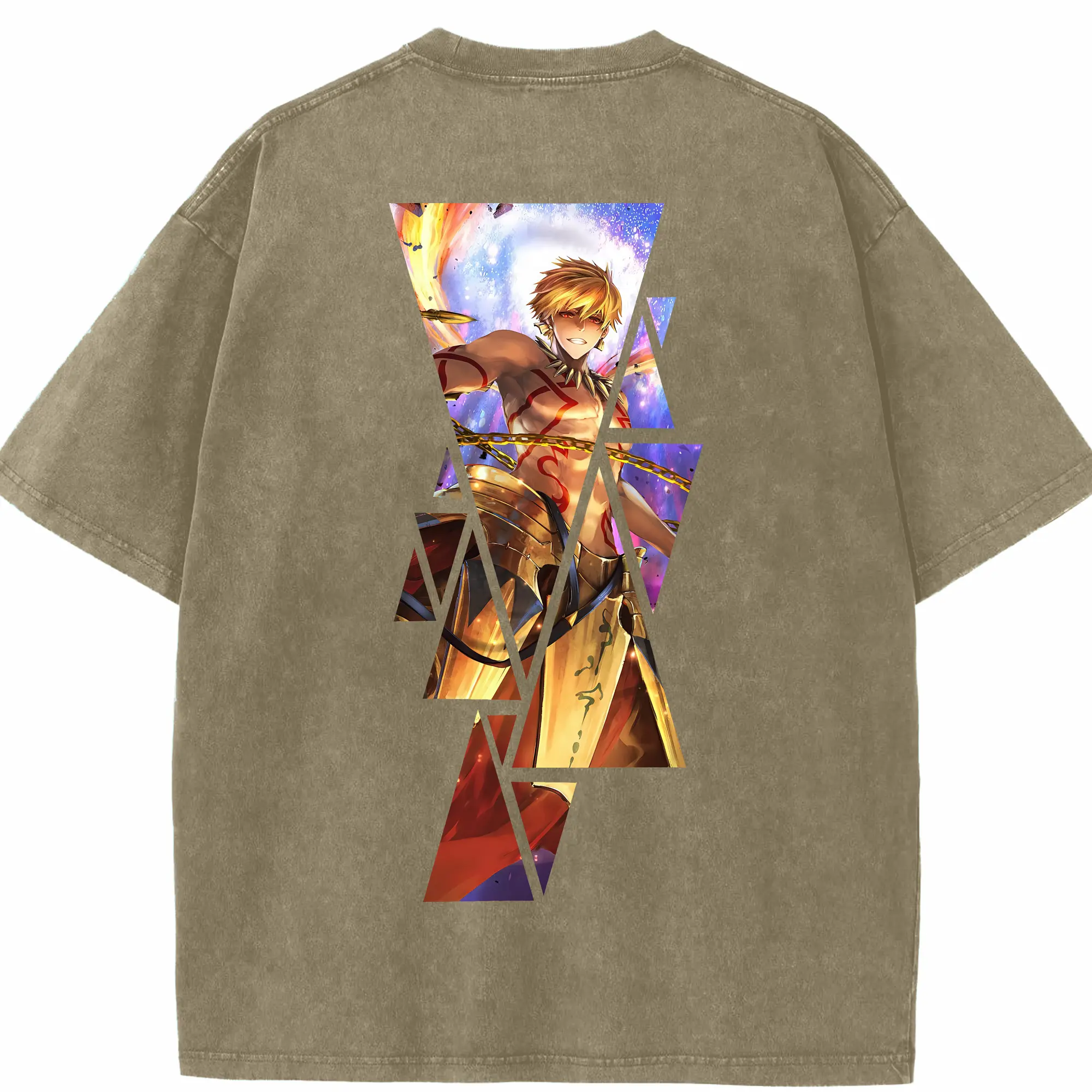 FGO グッズ,ギルガメッシュ - 綿100% ヴィンテージ風 半袖Tシャツ ・ フロントプリント ・ 柔らか肌触り ・ 通気性 快適 ・ スポーツ カジュアル 外出用