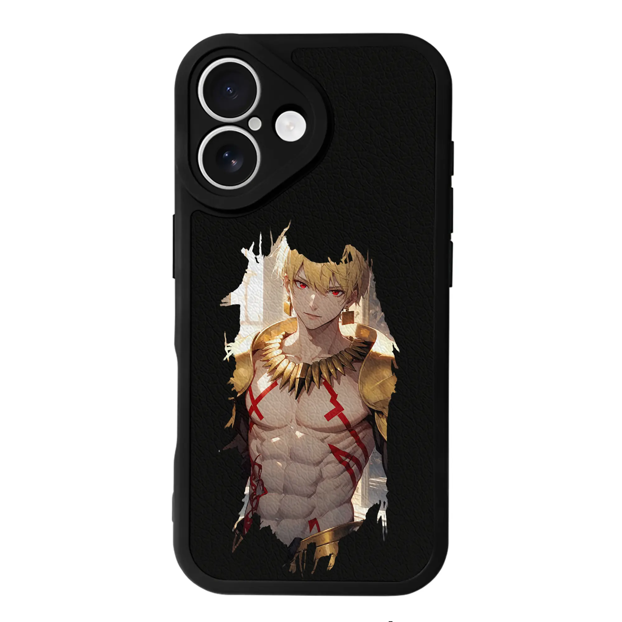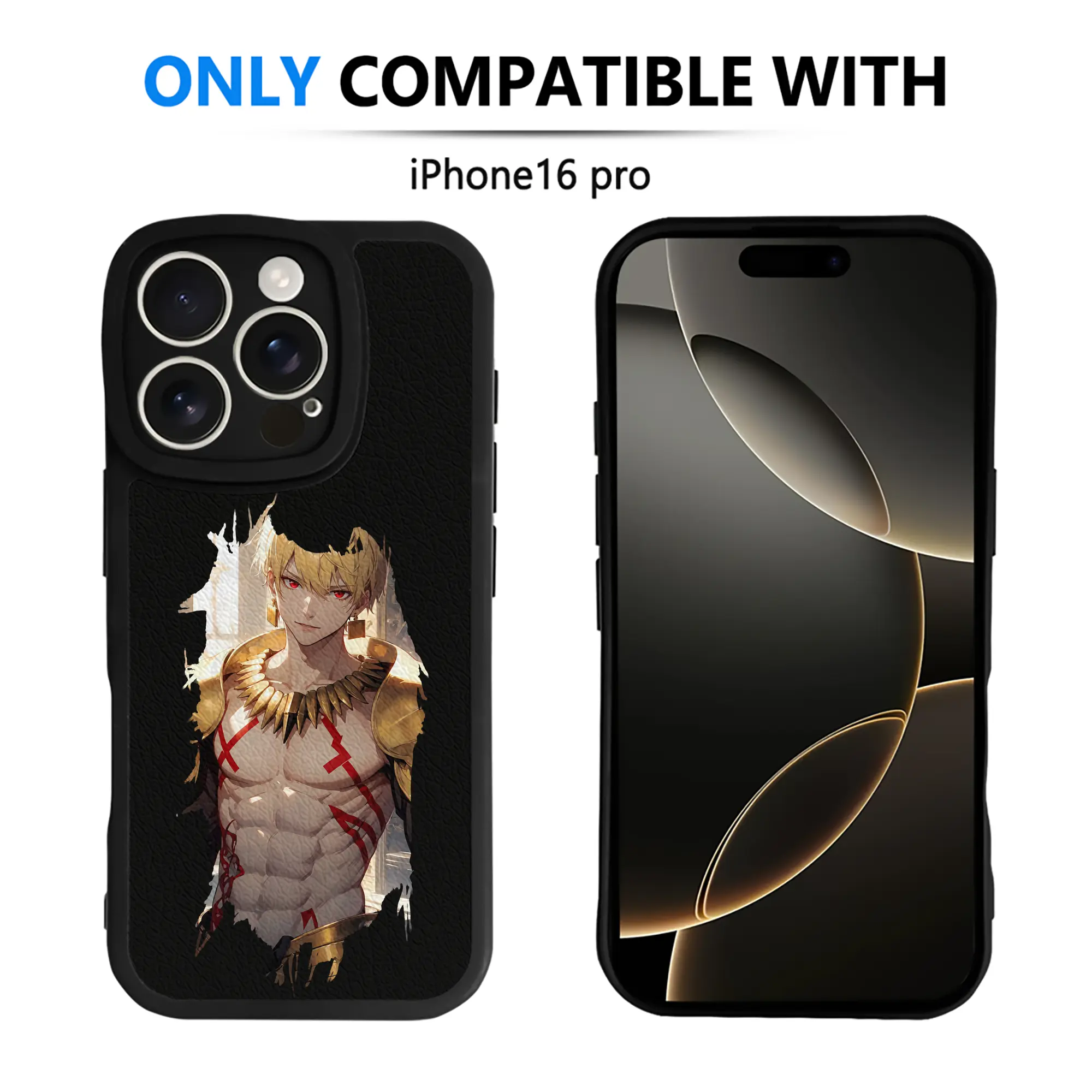 FGO グッズ,ギルガメッシュ - IPhone 16シリーズ対応 ・ シリコンスマホケース ・ レザー調 ・ 高精度フィット ・ 耐衝撃 ・ ワイヤレス充電対応 ・ 精密カット