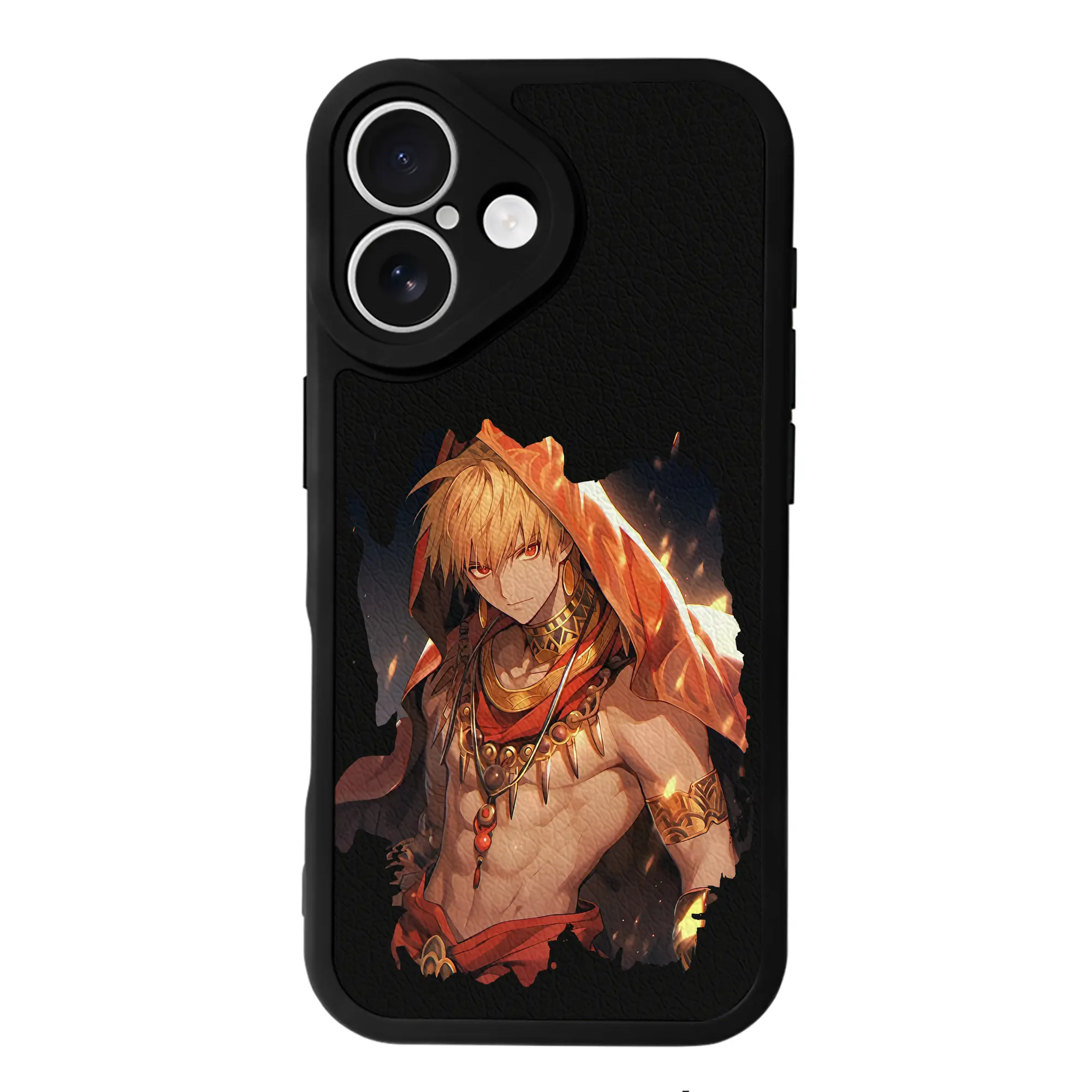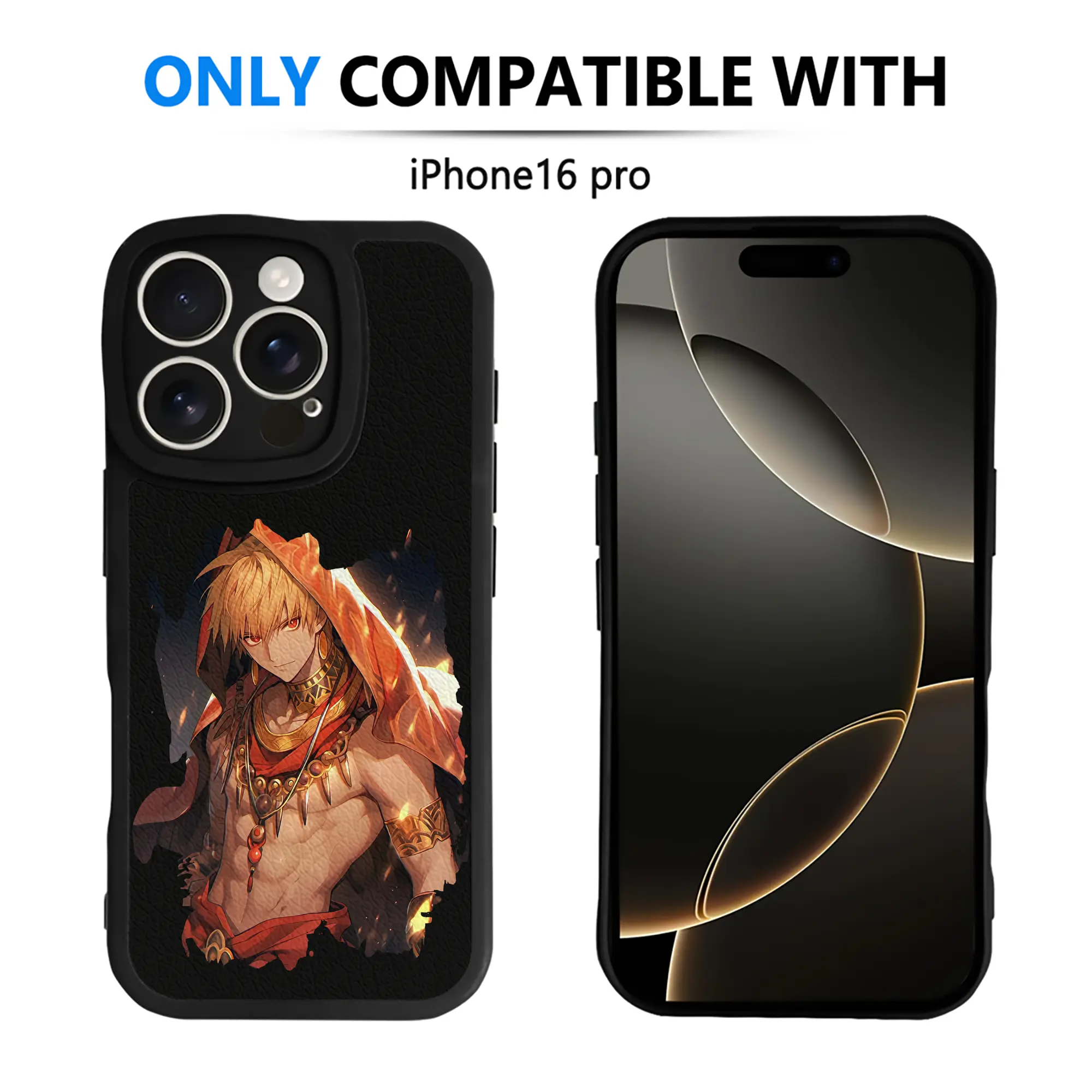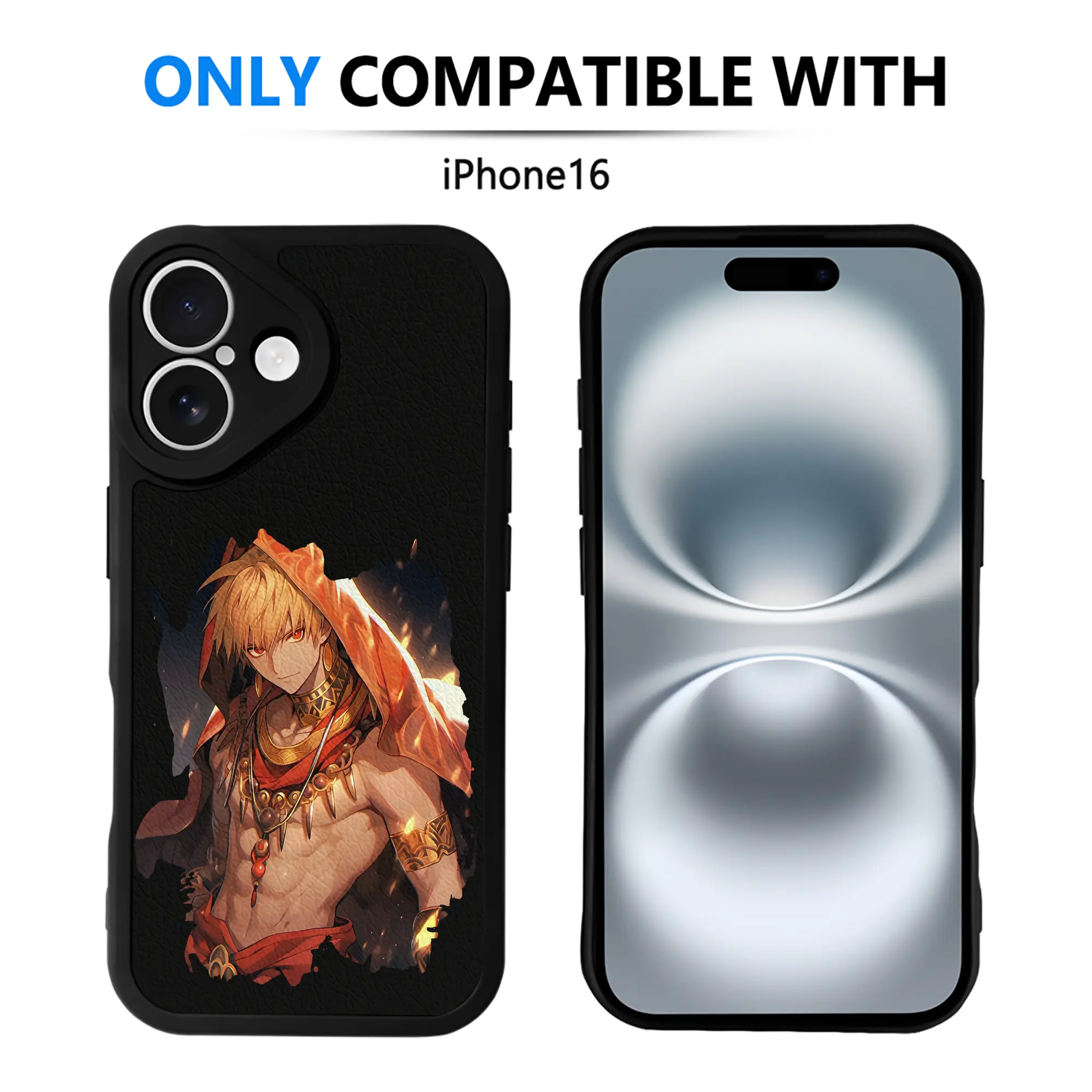 FGO グッズ,ギルガメッシュ - IPhone 16シリーズ対応 ・ シリコンスマホケース ・ レザー調 ・ 高精度フィット ・ 耐衝撃 ・ ワイヤレス充電対応 ・ 精密カット
