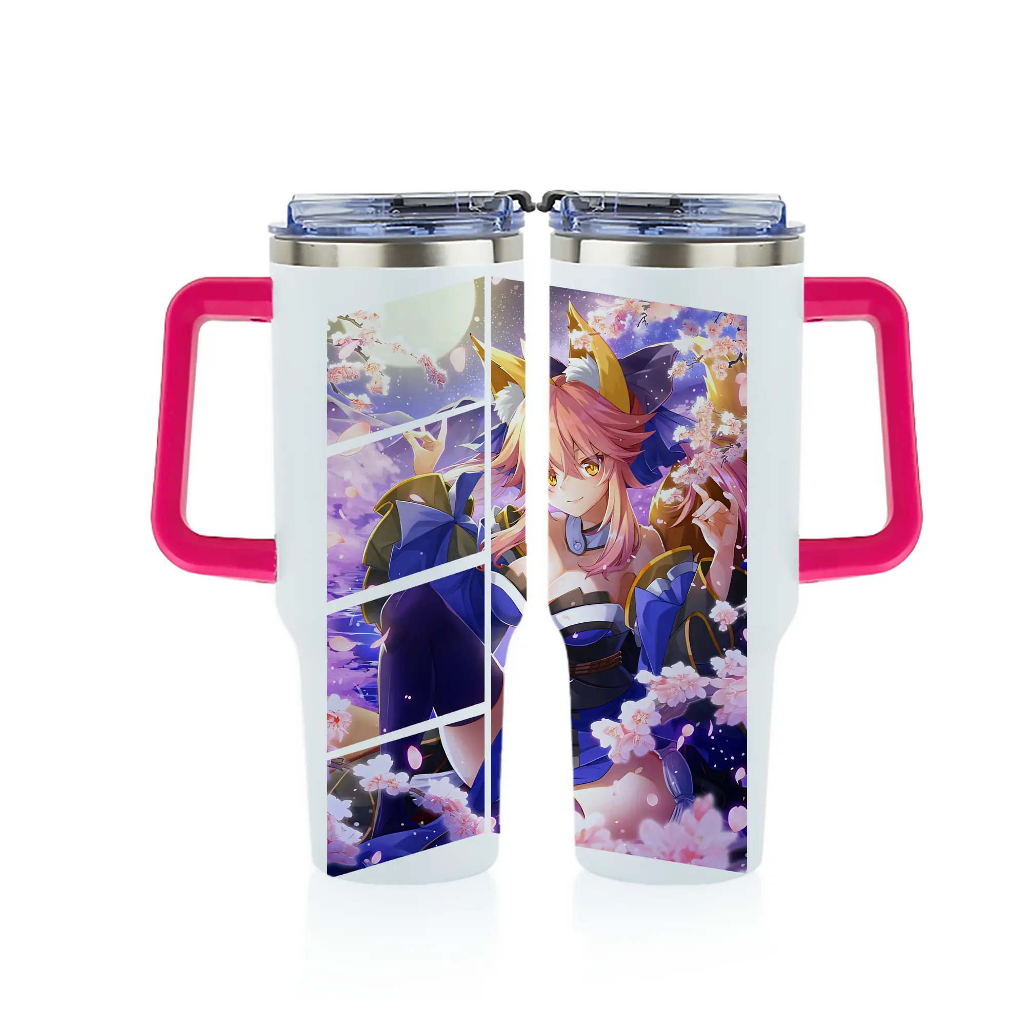 FGO グッズ,玉藻の前 - 1200mL フルプリント車用タンブラー ・ 304ステンレス 内側 ・ 201ステンレス 外側 ・ 保温 保冷 ・ 通勤 ドライブ アウトドア用