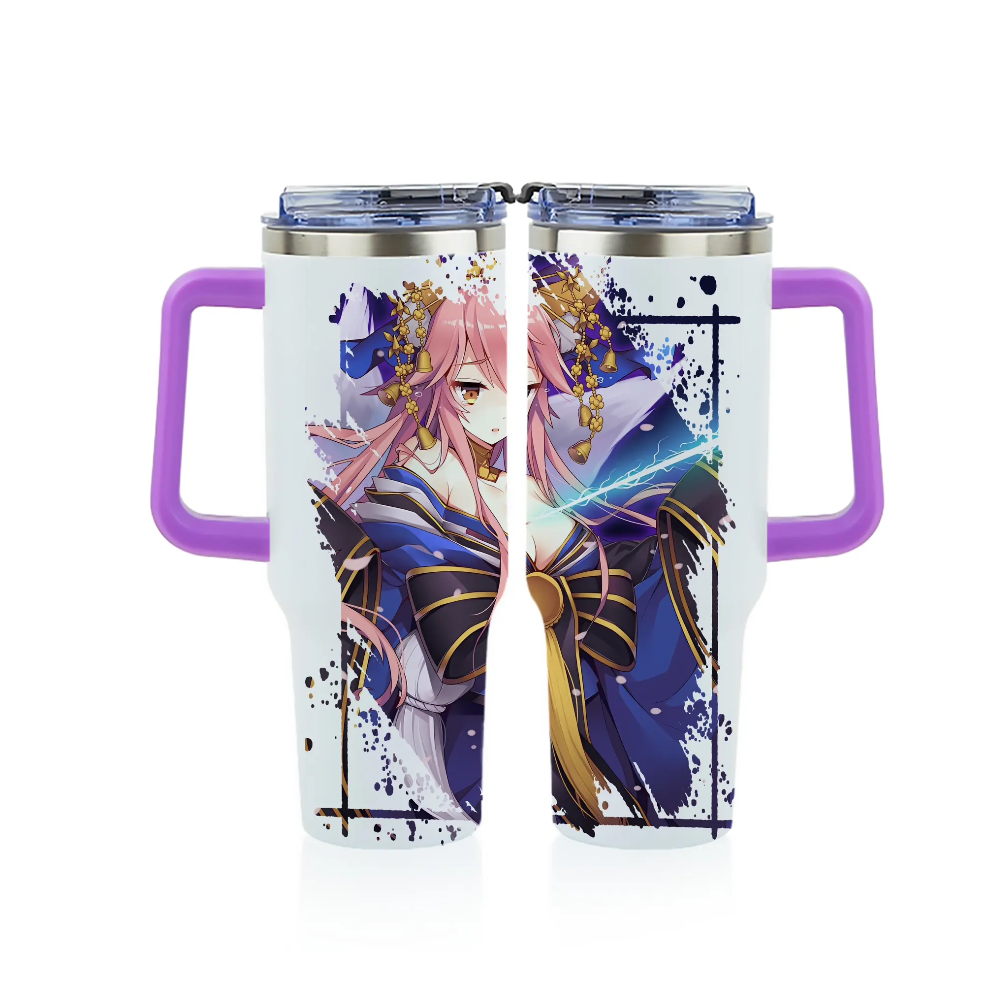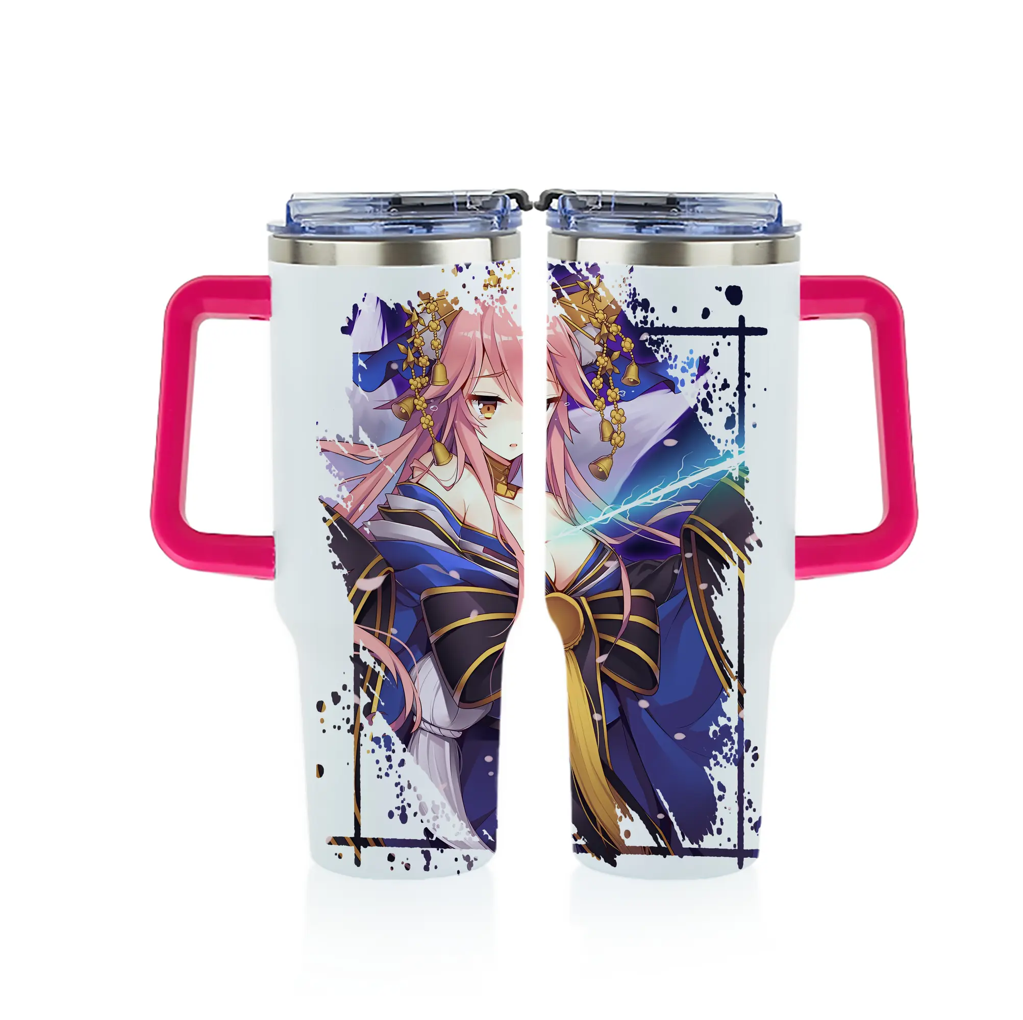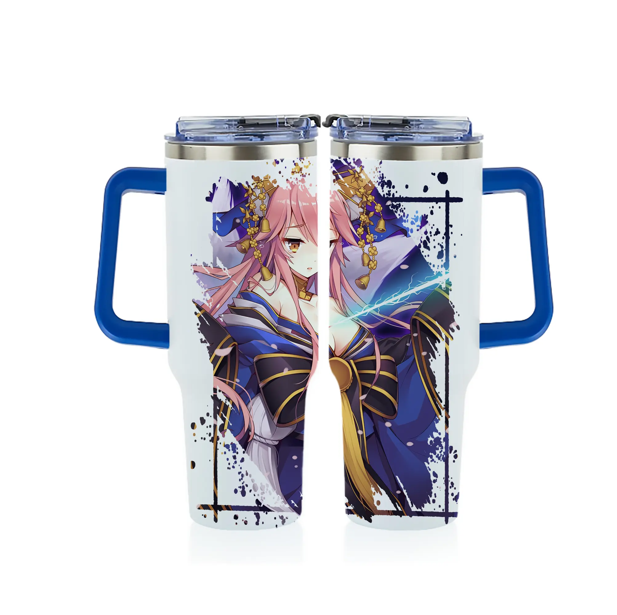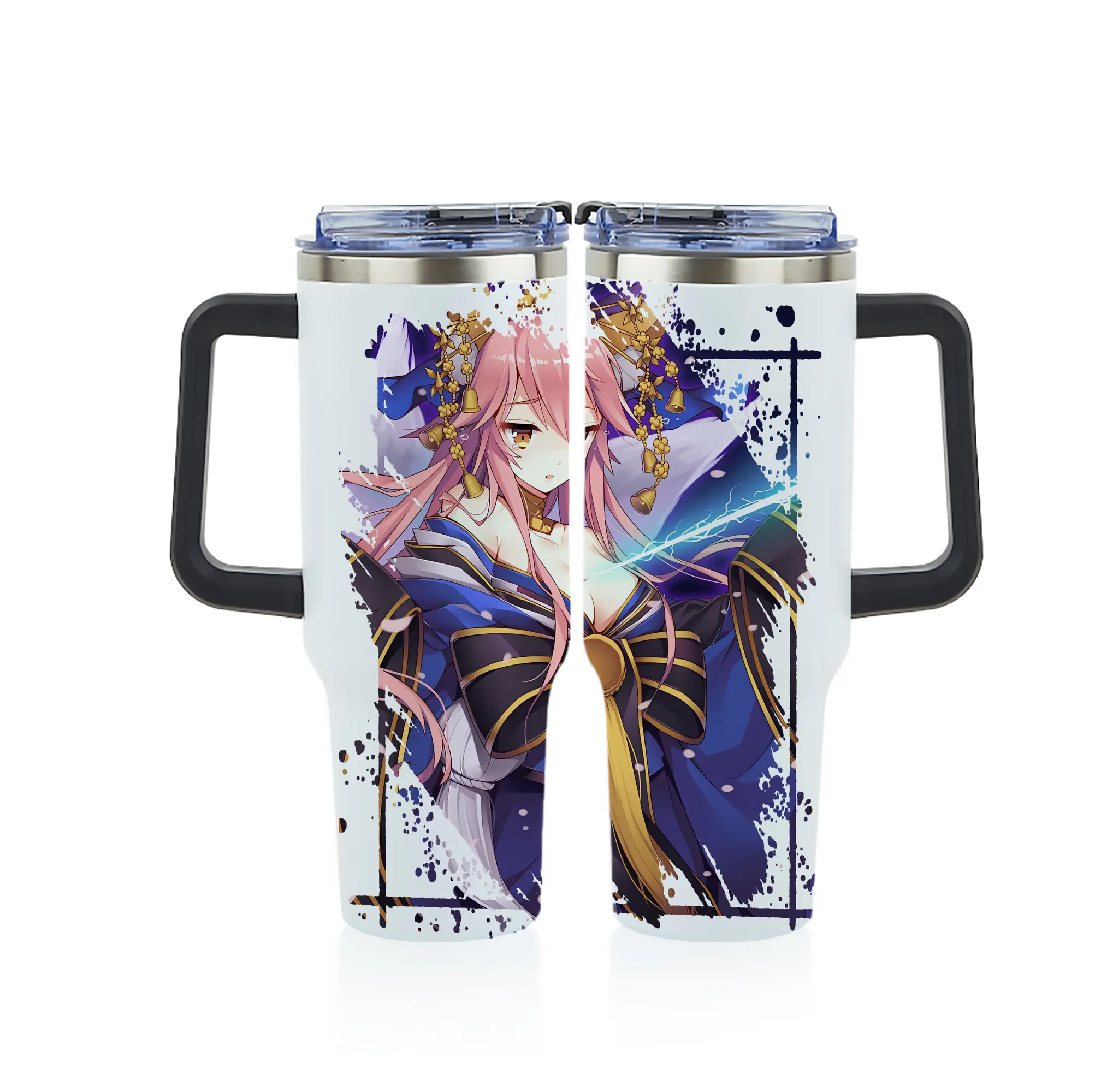 FGO グッズ,玉藻の前 - 1200mL フルプリント車用タンブラー ・ 304ステンレス 内側 ・ 201ステンレス 外側 ・ 保温 保冷 ・ 通勤 ドライブ アウトドア用