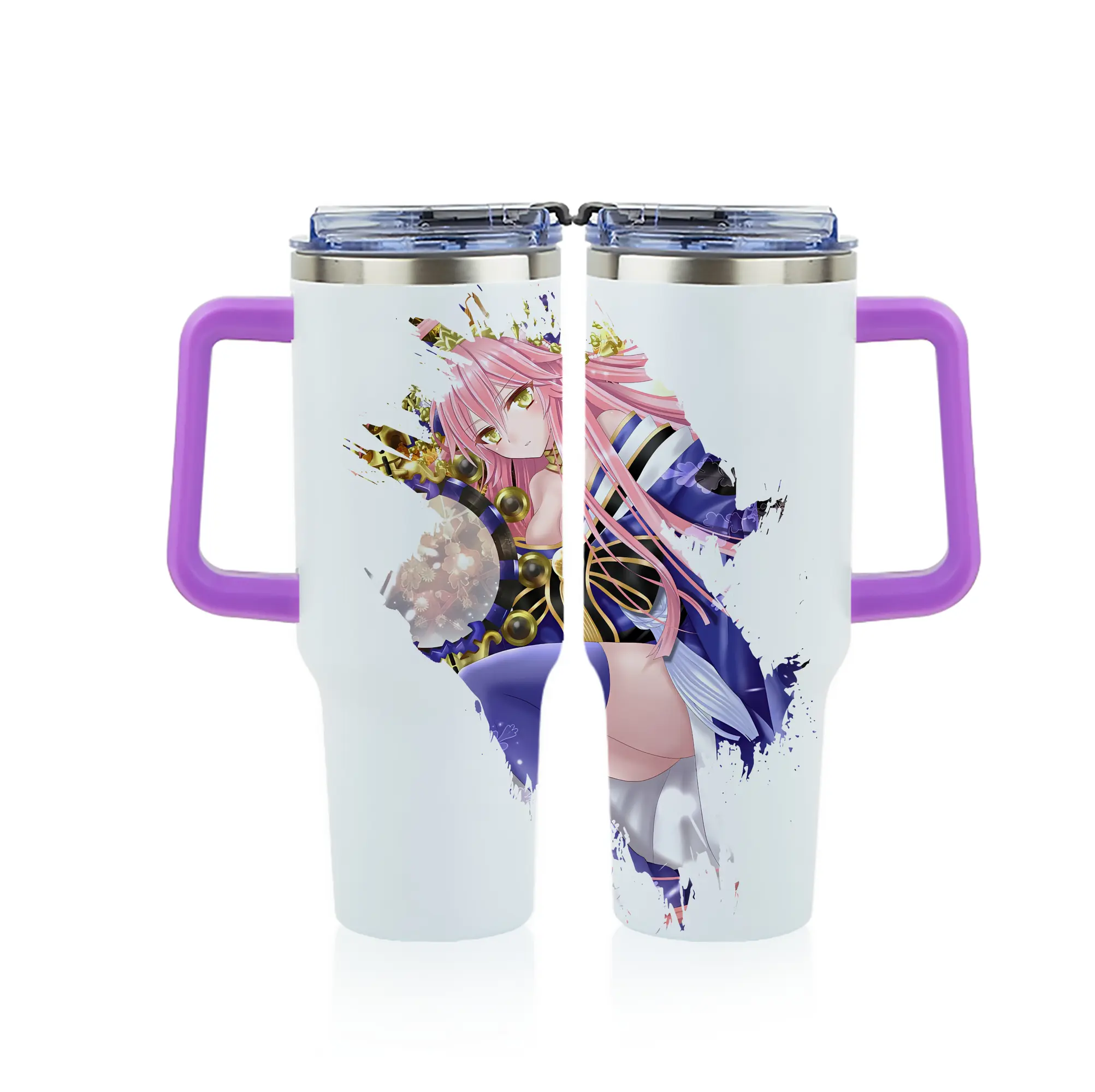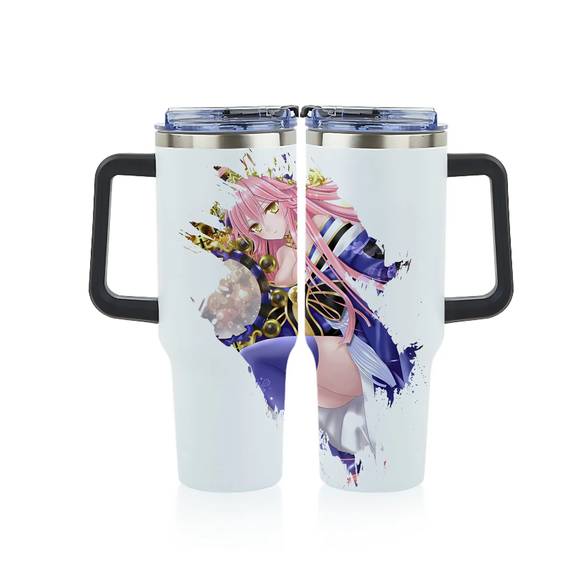 FGO グッズ,玉藻の前 - 1200mL フルプリント車用タンブラー ・ 304ステンレス 内側 ・ 201ステンレス 外側 ・ 保温 保冷 ・ 通勤 ドライブ アウトドア用
