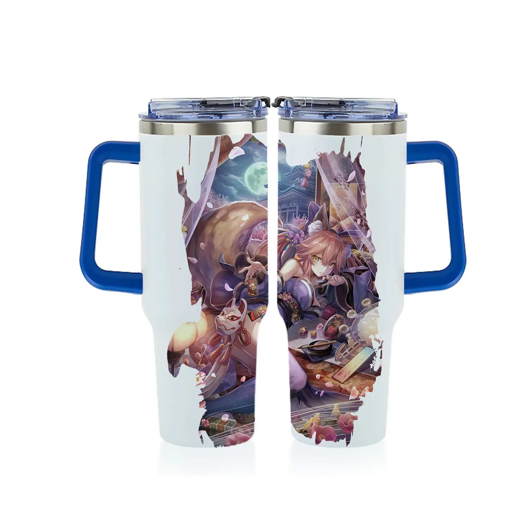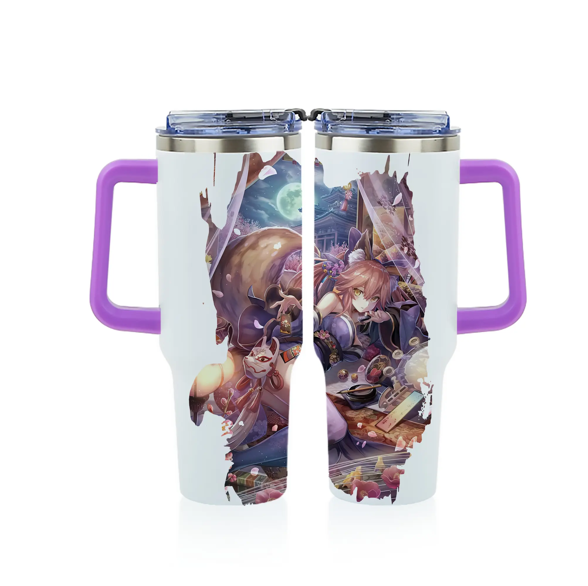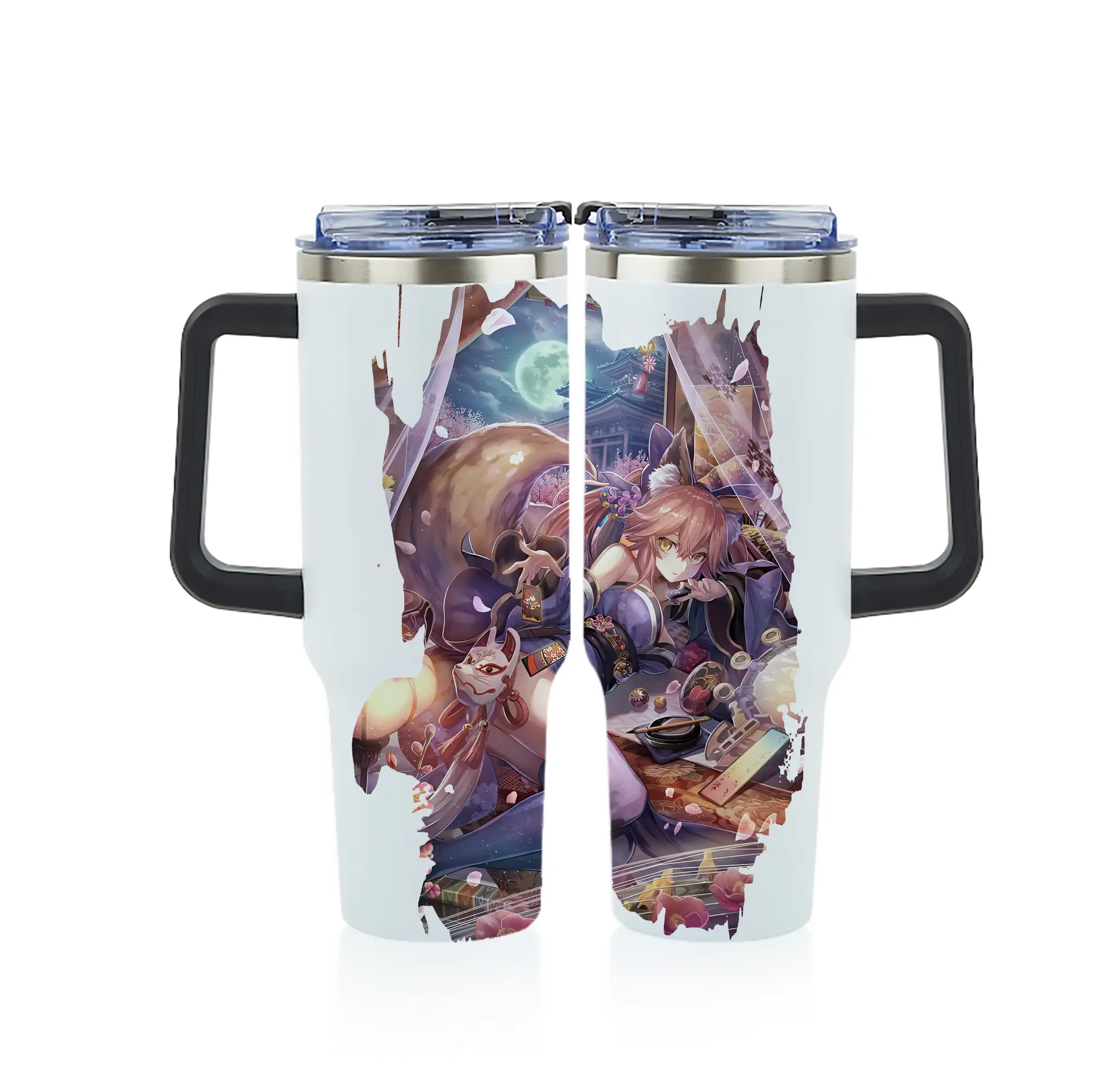 FGO グッズ,玉藻の前 - 1200mL フルプリント車用タンブラー ・ 304ステンレス 内側 ・ 201ステンレス 外側 ・ 保温 保冷 ・ 通勤 ドライブ アウトドア用