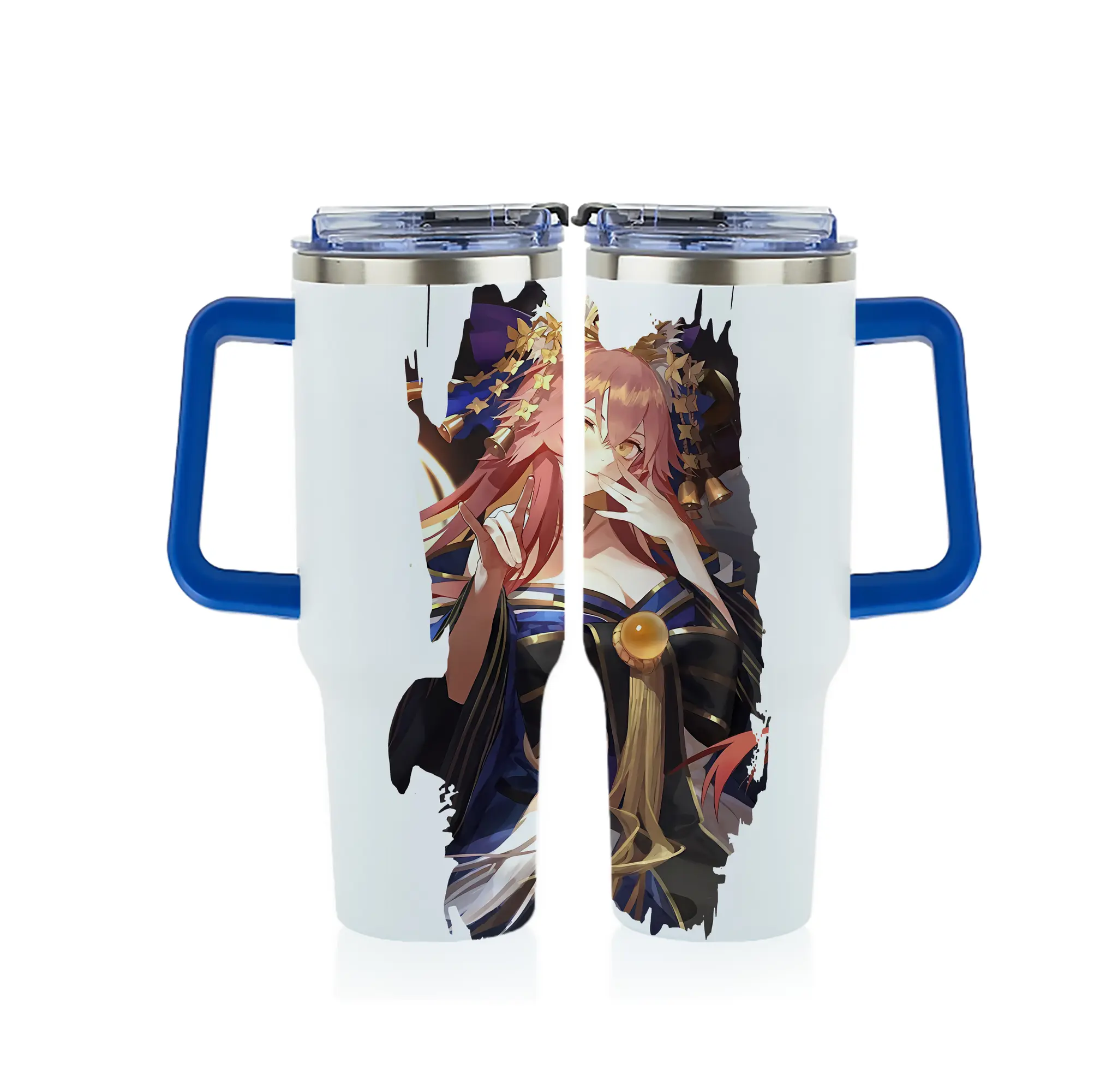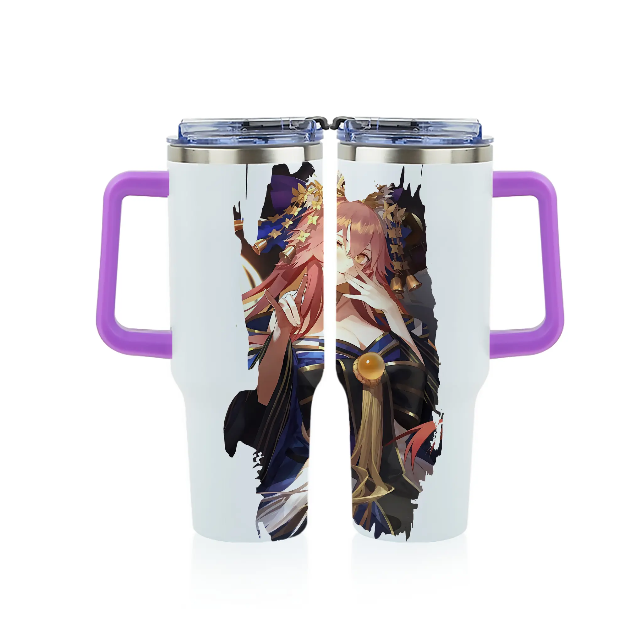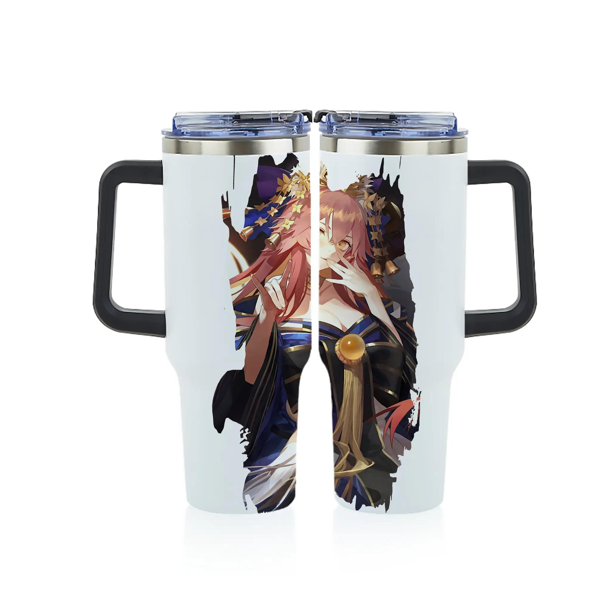 FGO グッズ,玉藻の前 - 1200mL フルプリント車用タンブラー ・ 304ステンレス 内側 ・ 201ステンレス 外側 ・ 保温 保冷 ・ 通勤 ドライブ アウトドア用