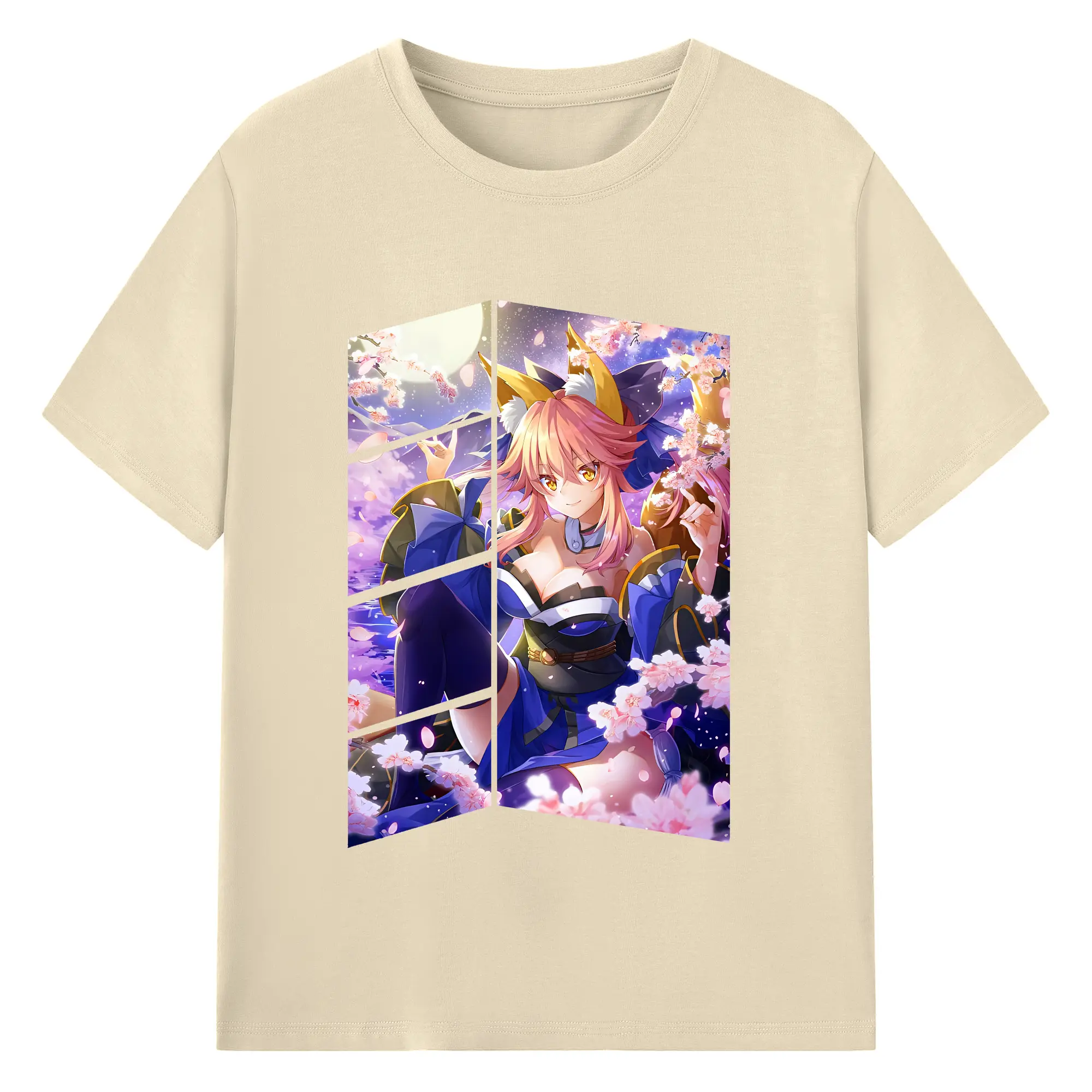 FGO グッズ,玉藻の前 - 綿100% 半袖Tシャツ ・ バックプリント ・ 快適 通気性 ・ 日常使い 散歩 スポーツ用