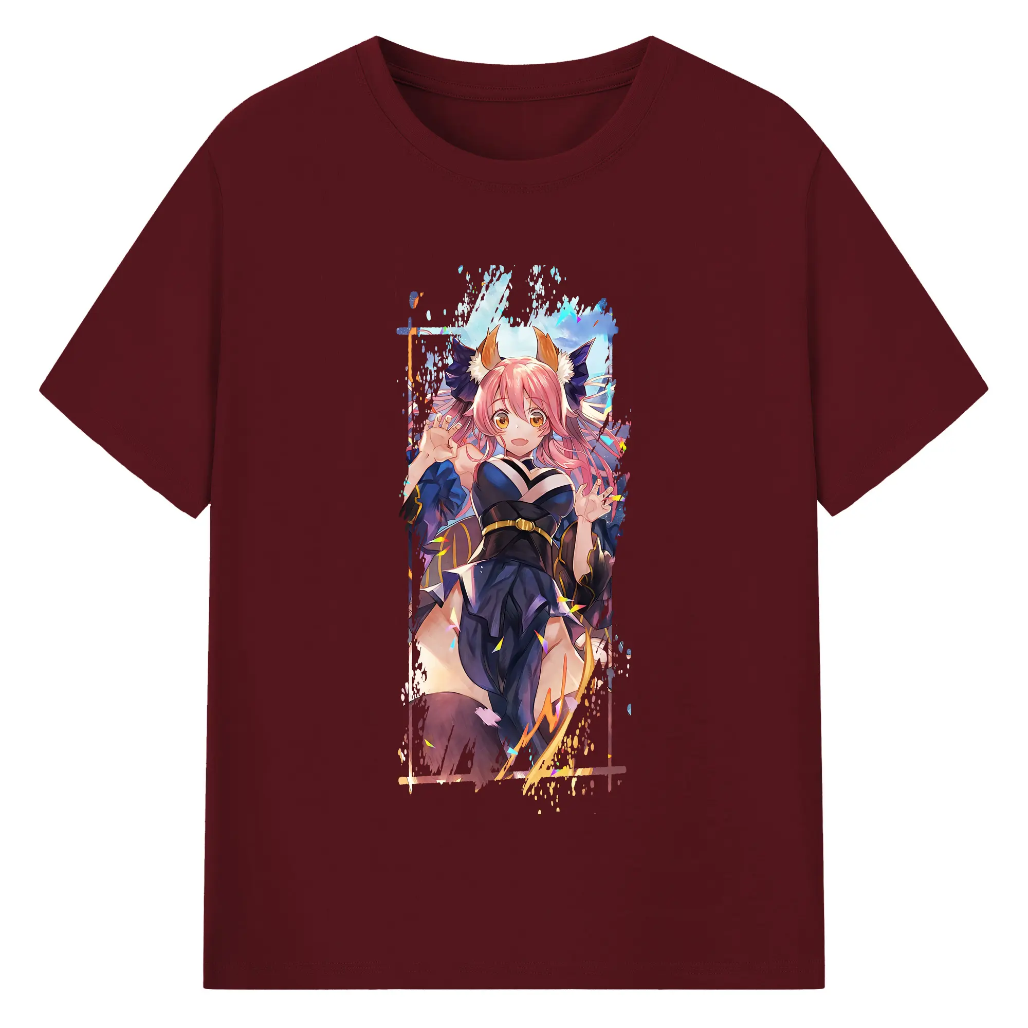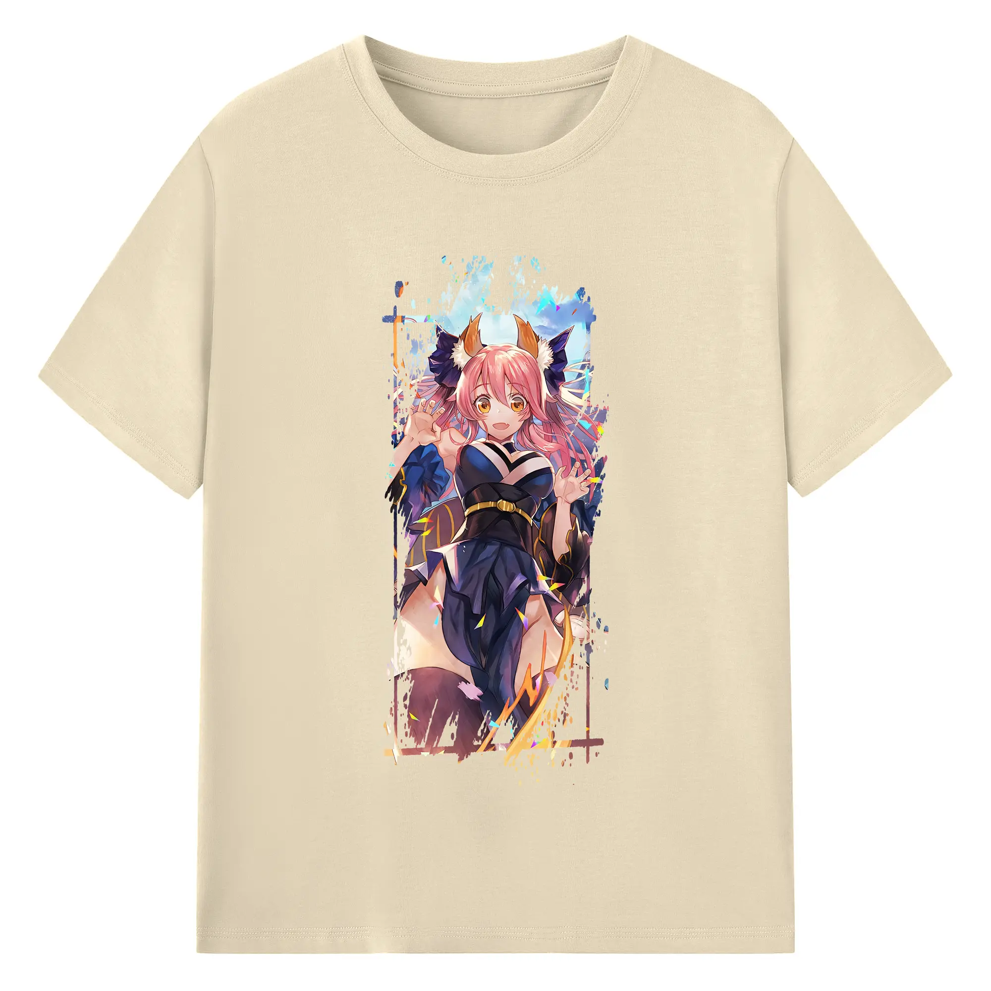 FGO グッズ,玉藻の前 - 綿100% 半袖Tシャツ ・ バックプリント ・ 快適 通気性 ・ 日常使い 散歩 スポーツ用