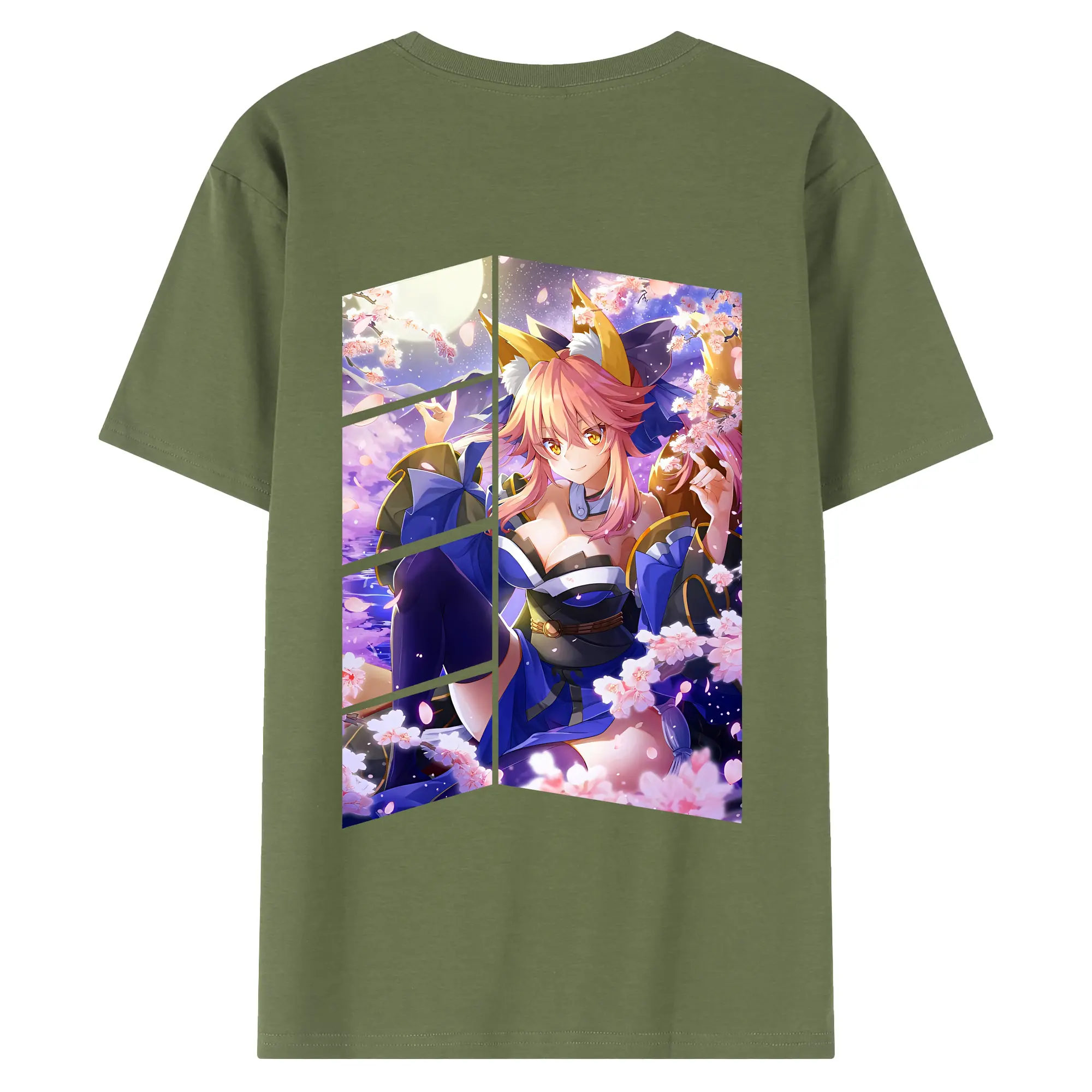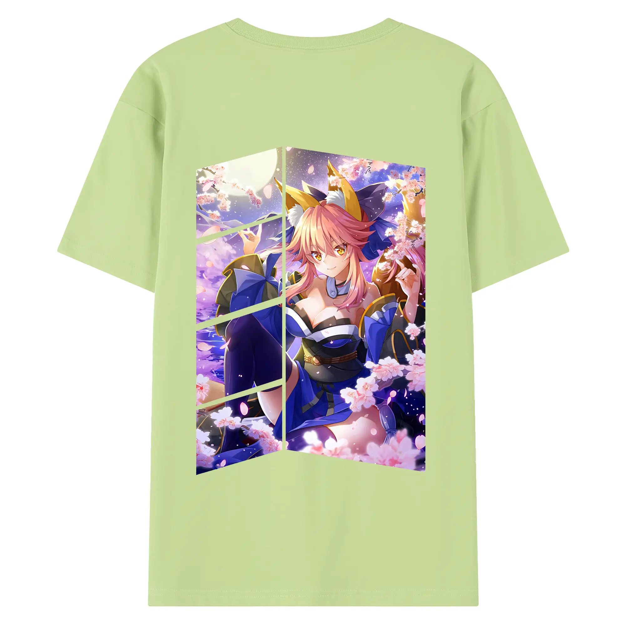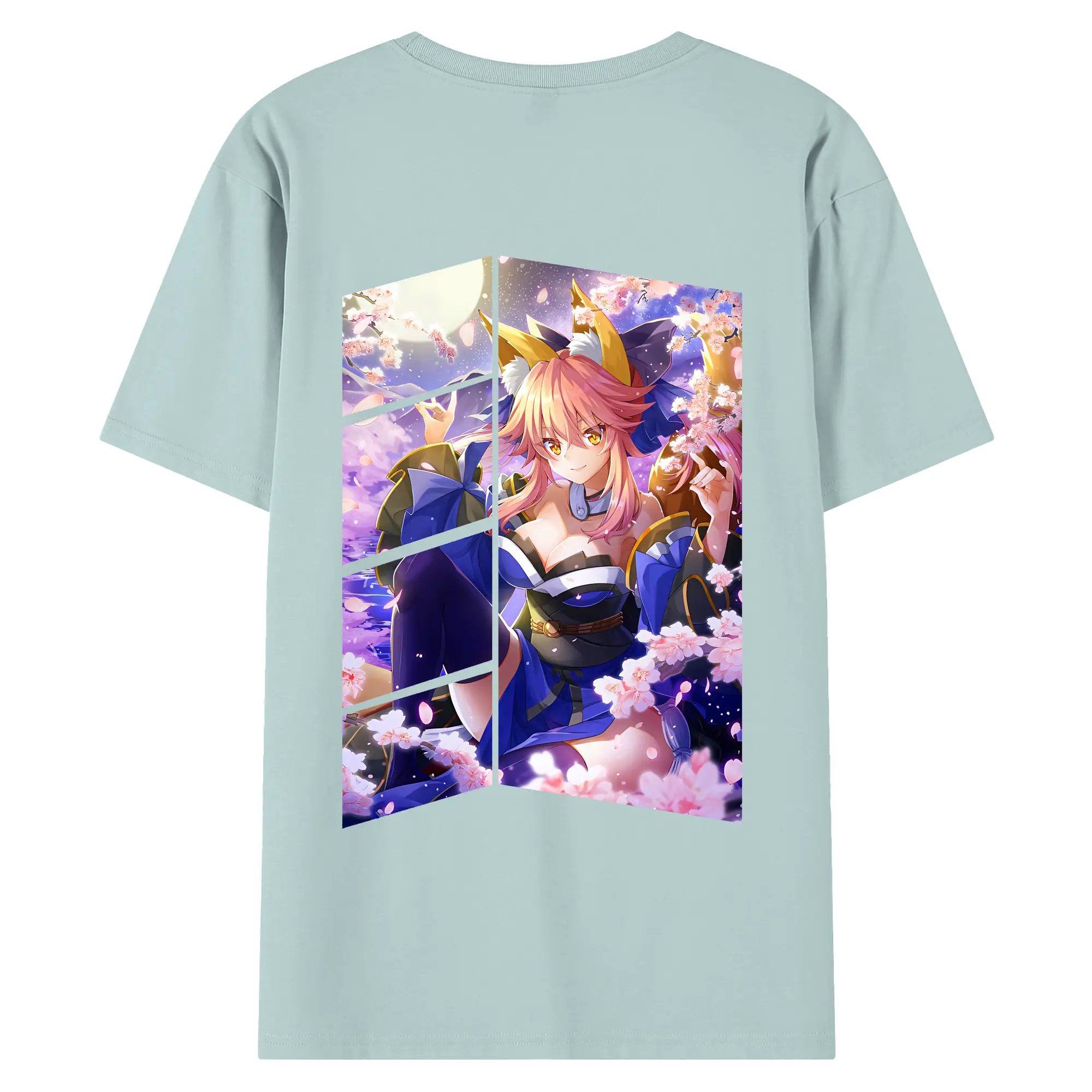 FGO グッズ,玉藻の前 - 綿100% 半袖Tシャツ ・ フロントプリント ・ 快適 通気性 ・ 日常使い 散歩 スポーツ用
