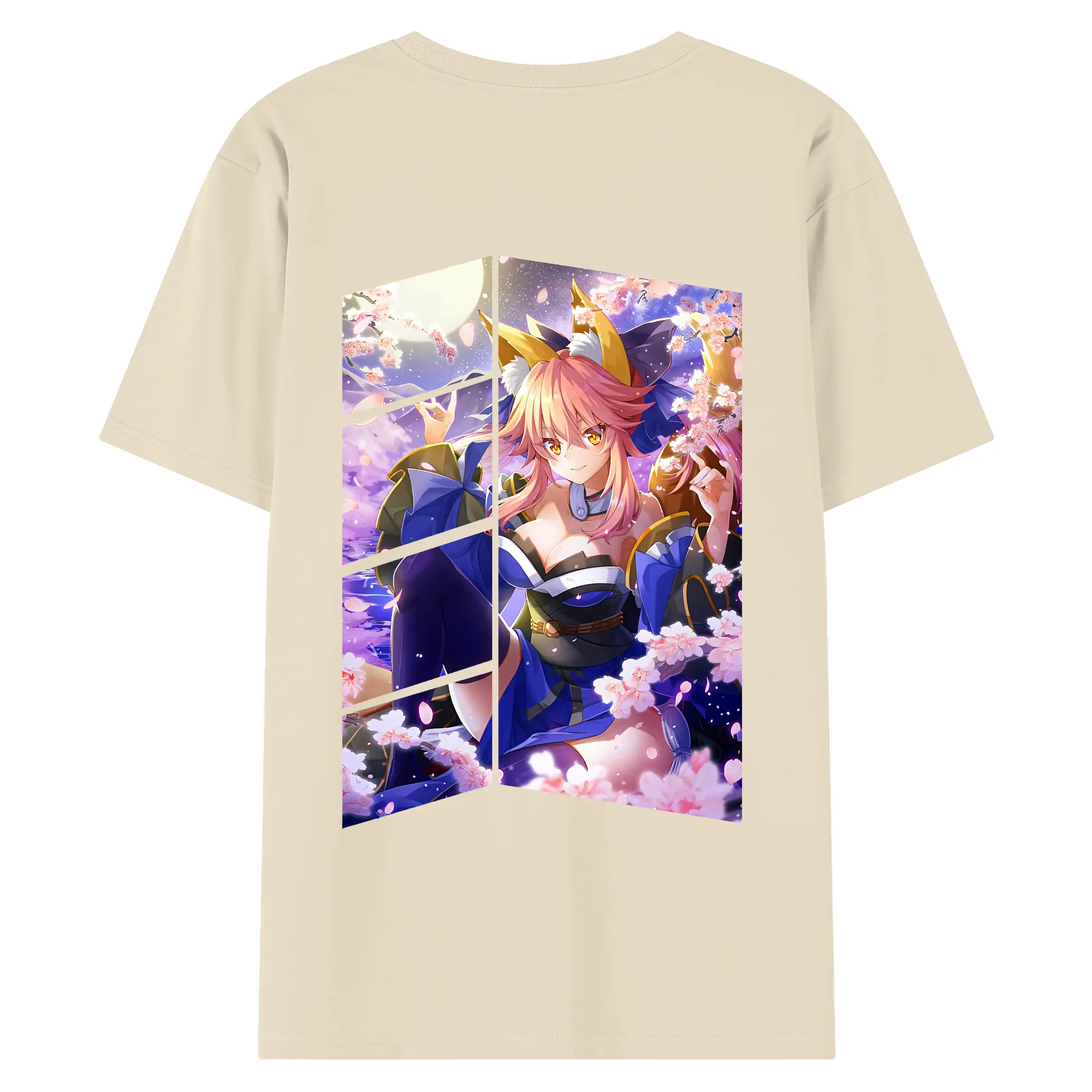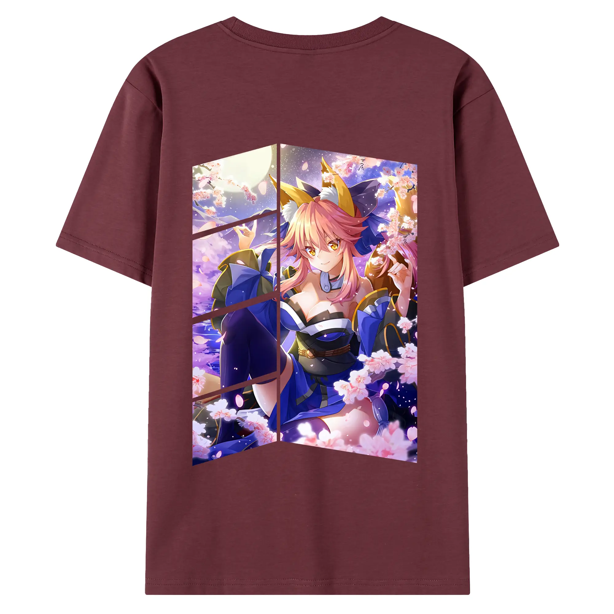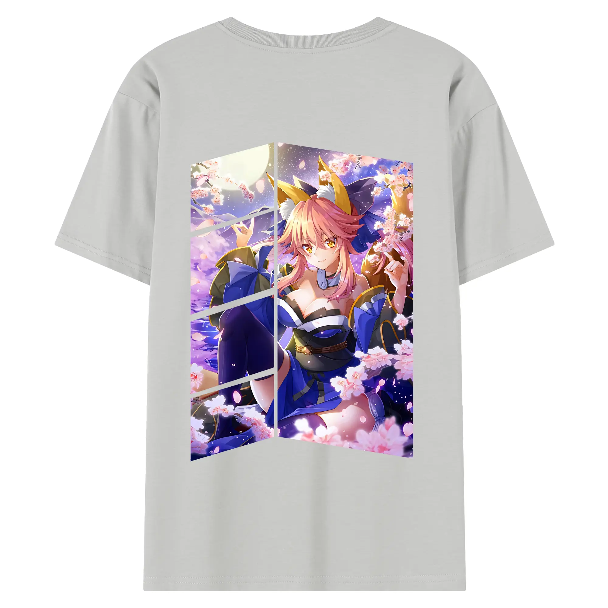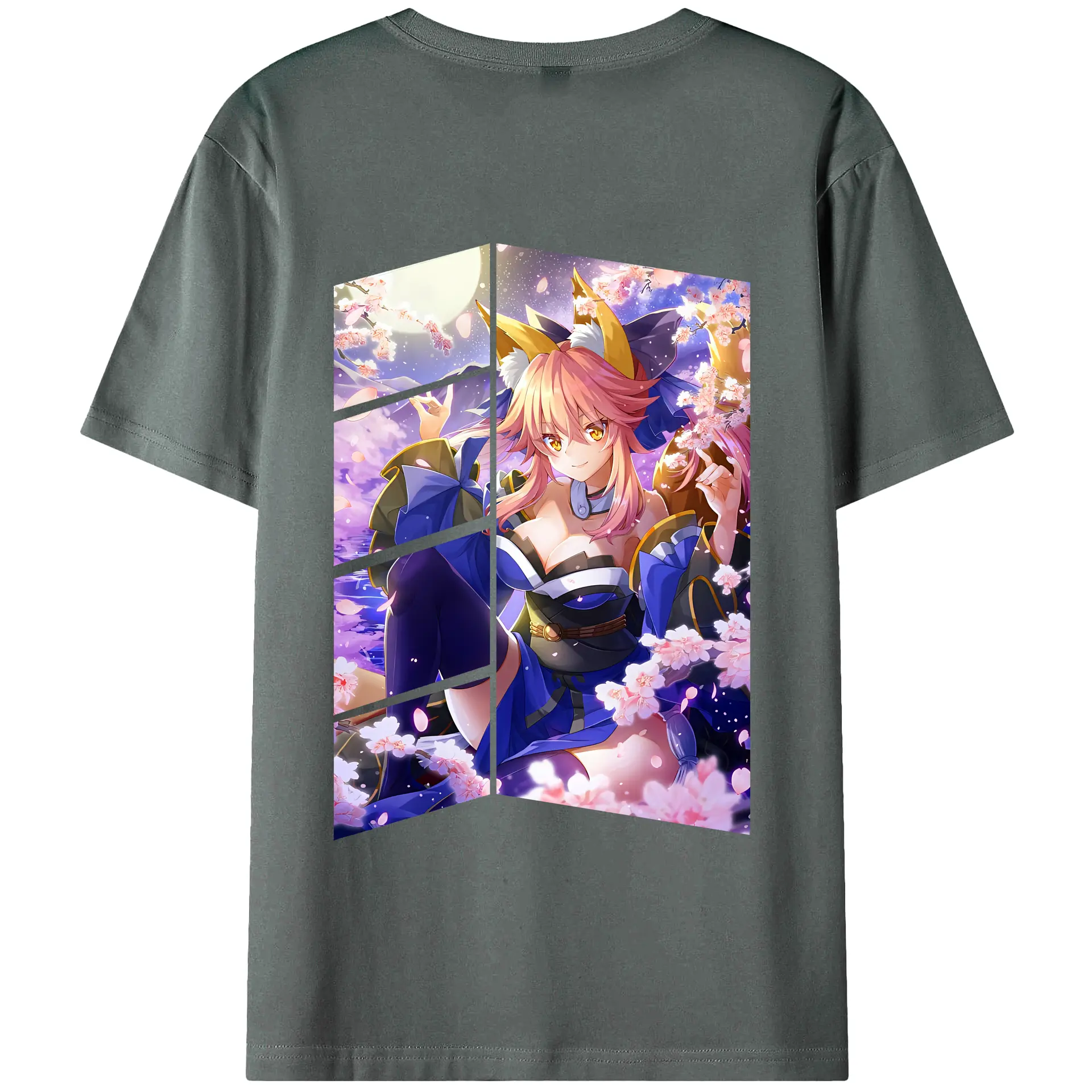 FGO グッズ,玉藻の前 - 綿100% 半袖Tシャツ ・ フロントプリント ・ 快適 通気性 ・ 日常使い 散歩 スポーツ用