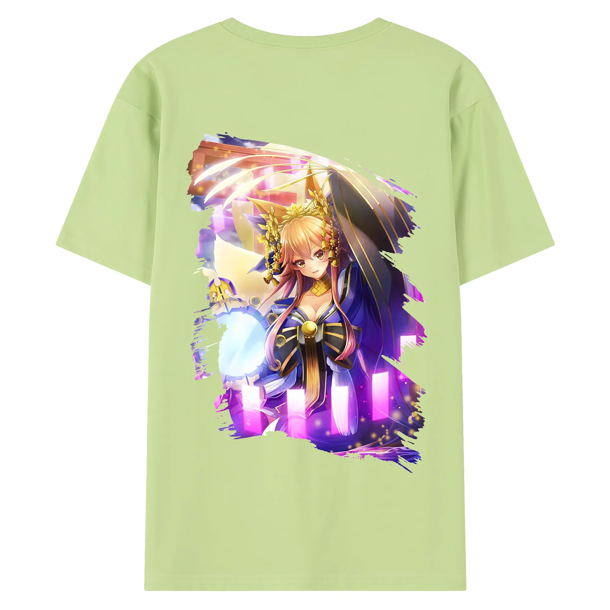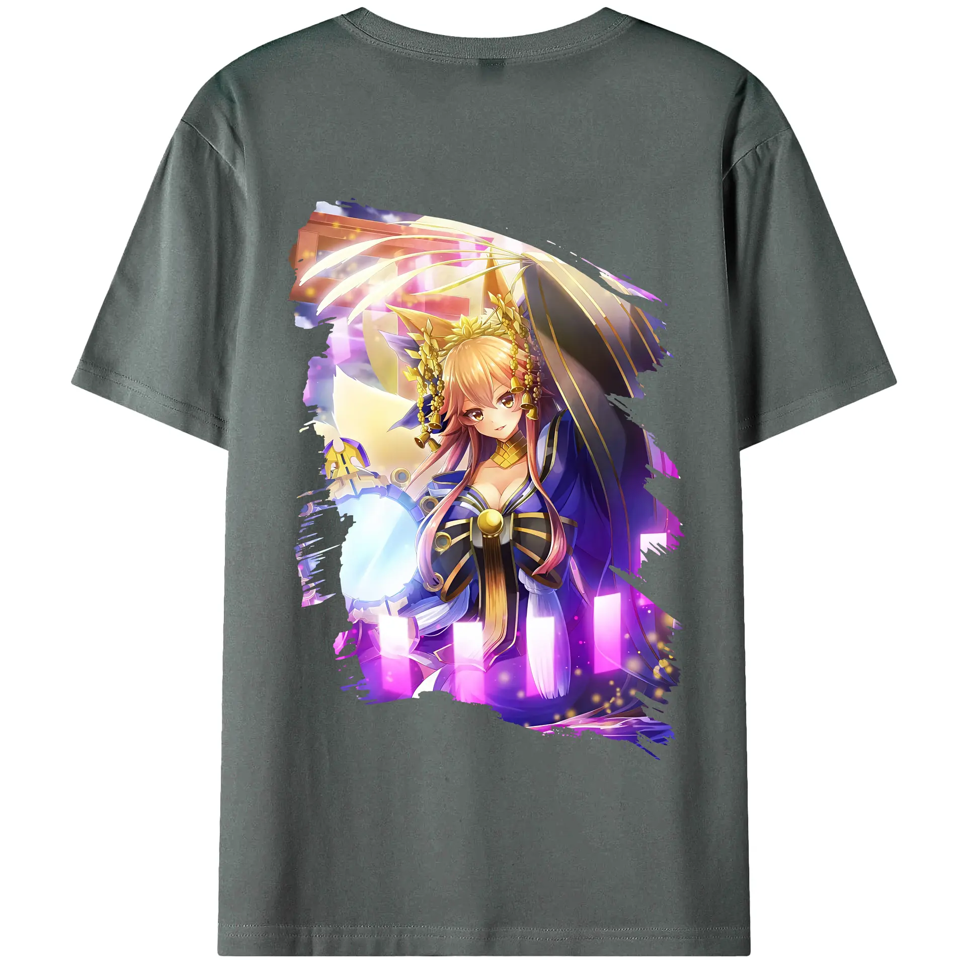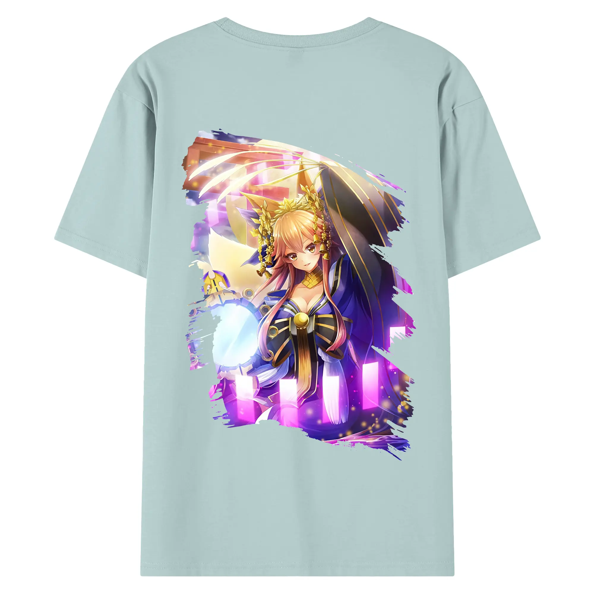 FGO グッズ,玉藻の前 - 綿100% 半袖Tシャツ ・ フロントプリント ・ 快適 通気性 ・ 日常使い 散歩 スポーツ用