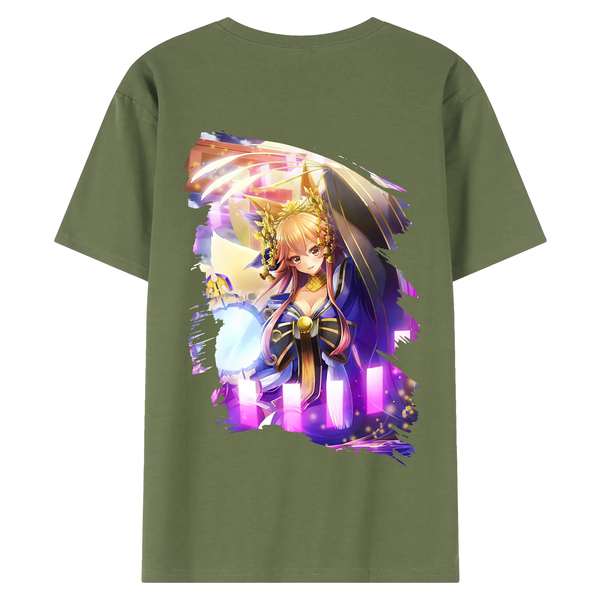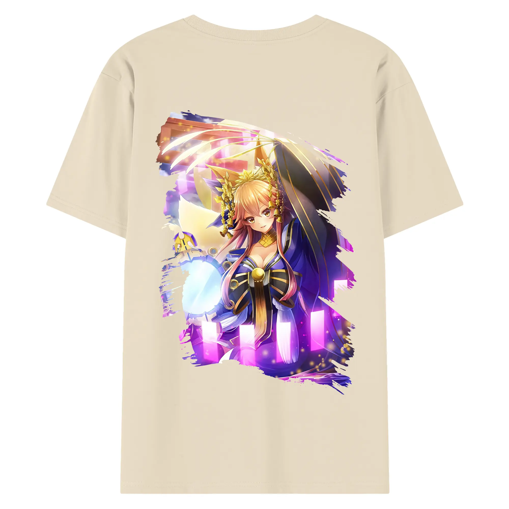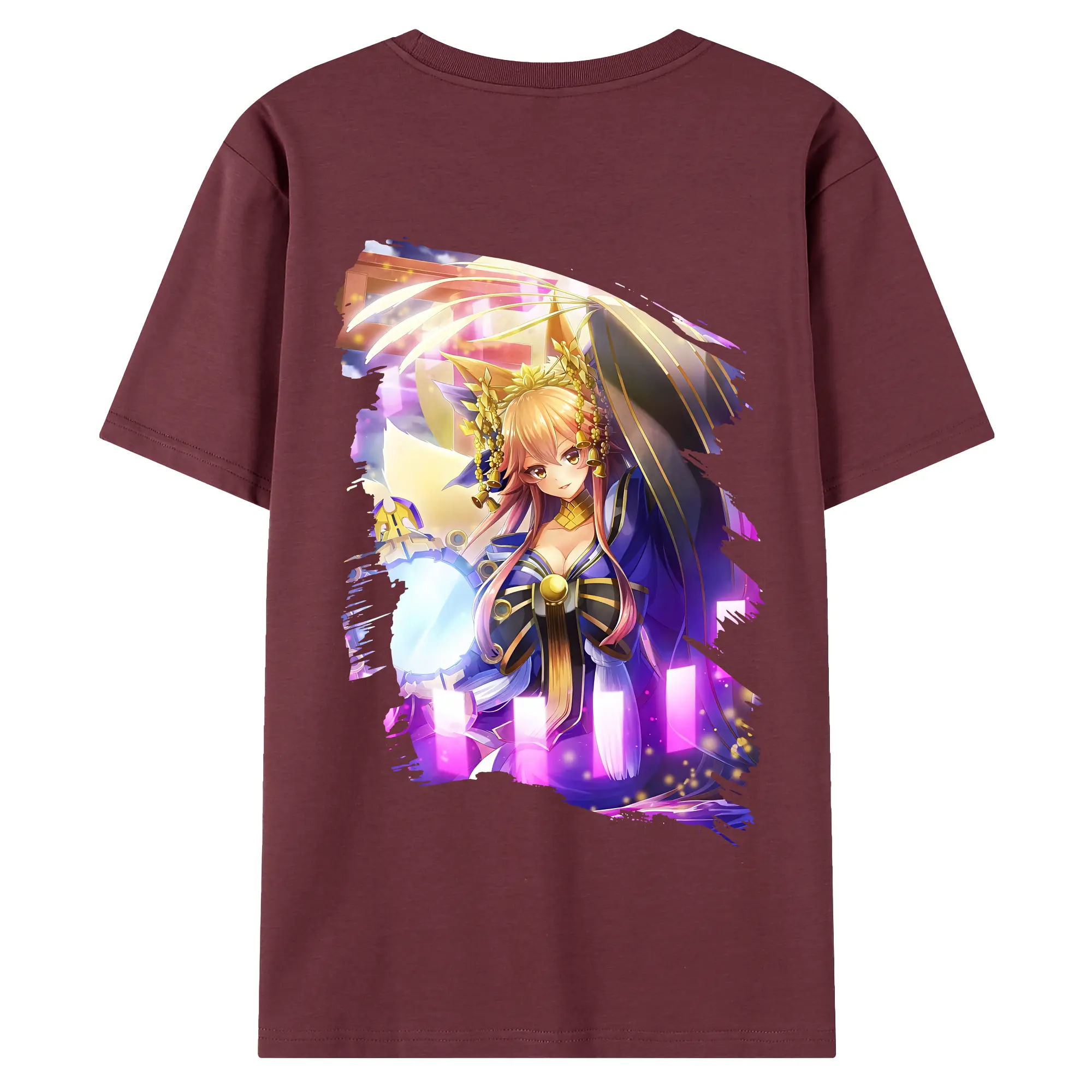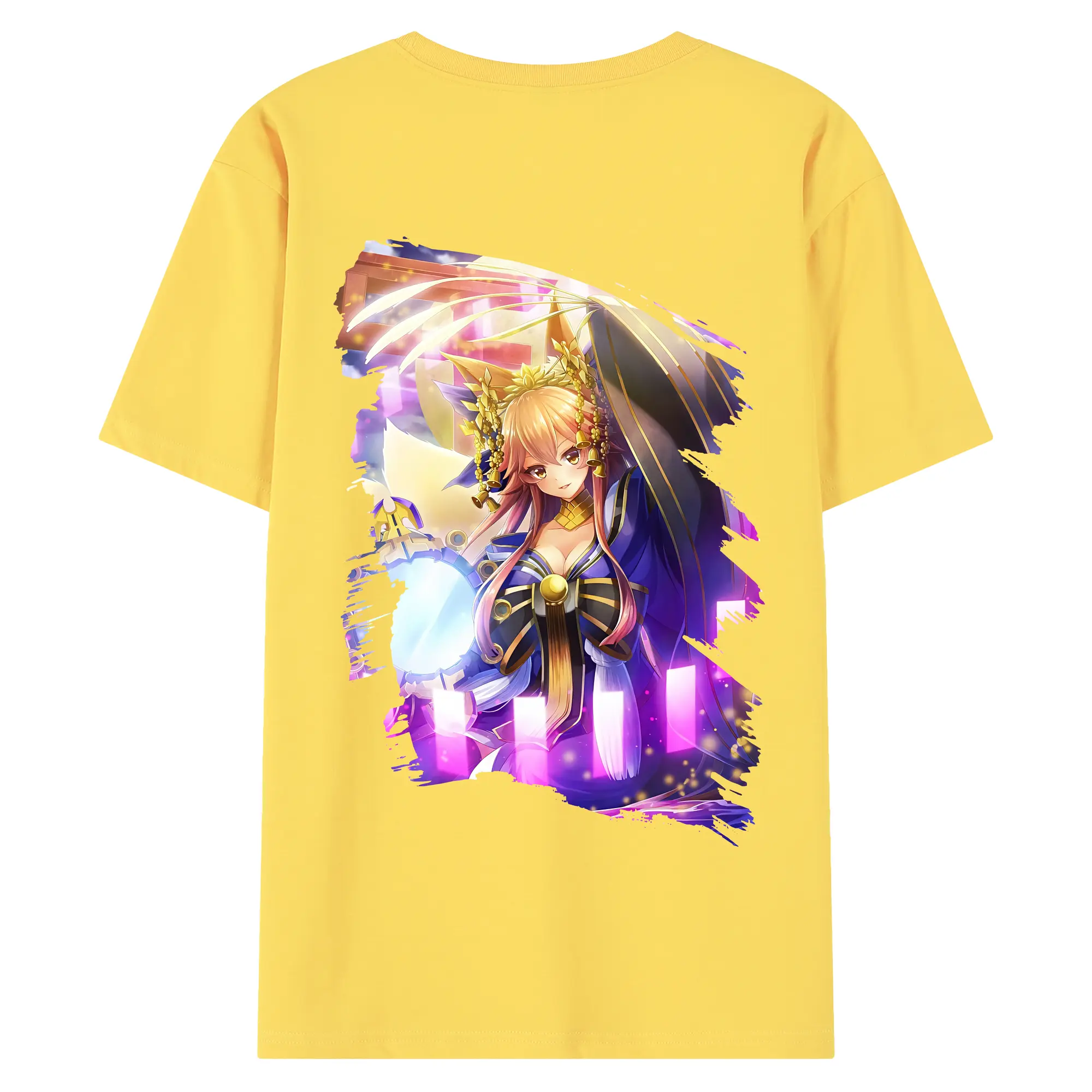 FGO グッズ,玉藻の前 - 綿100% 半袖Tシャツ ・ フロントプリント ・ 快適 通気性 ・ 日常使い 散歩 スポーツ用
