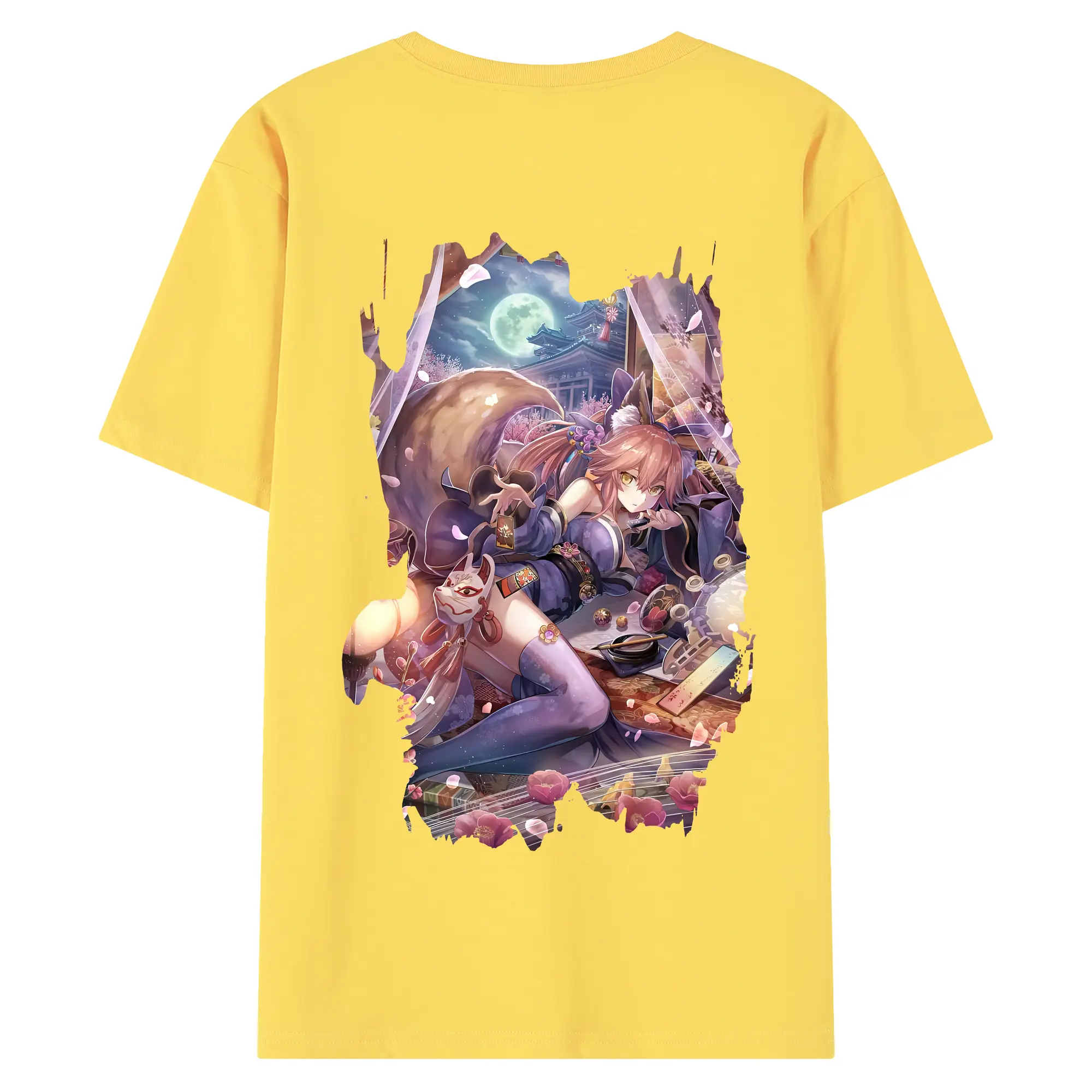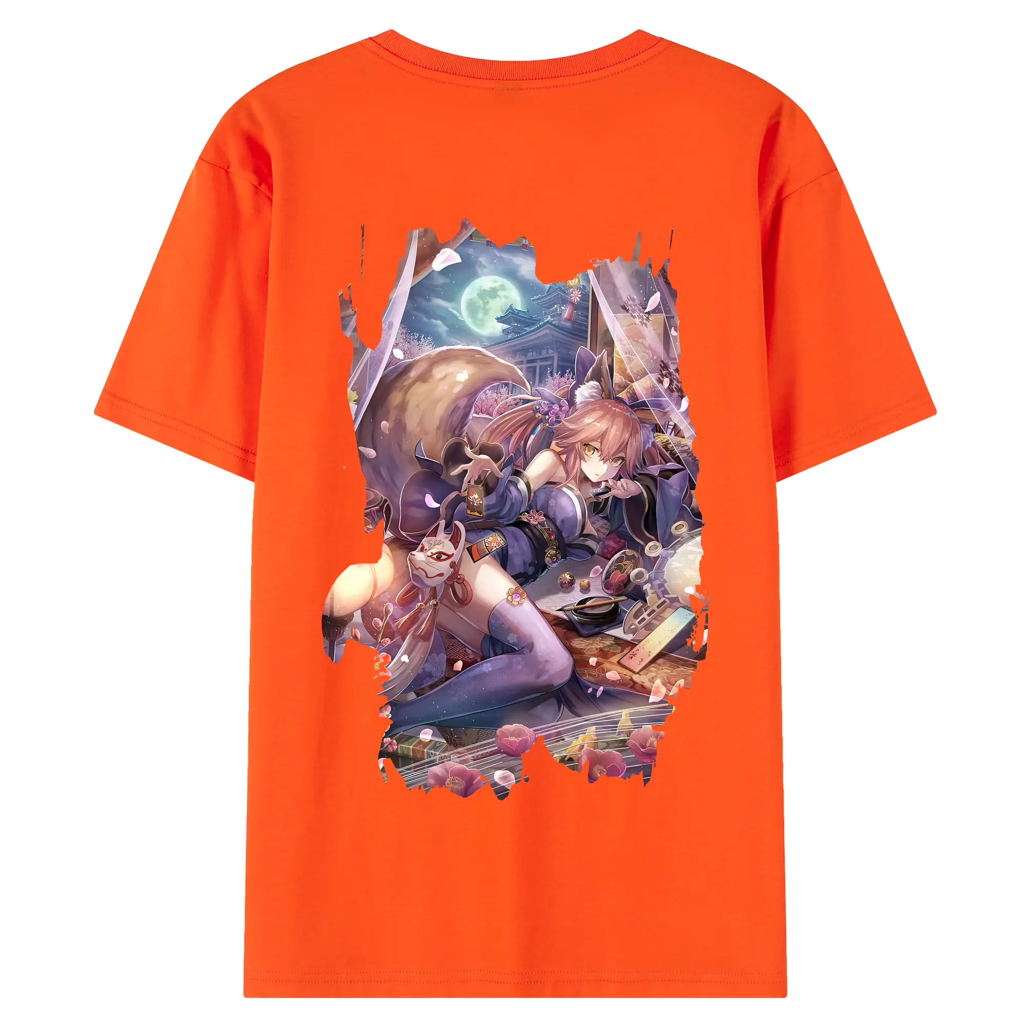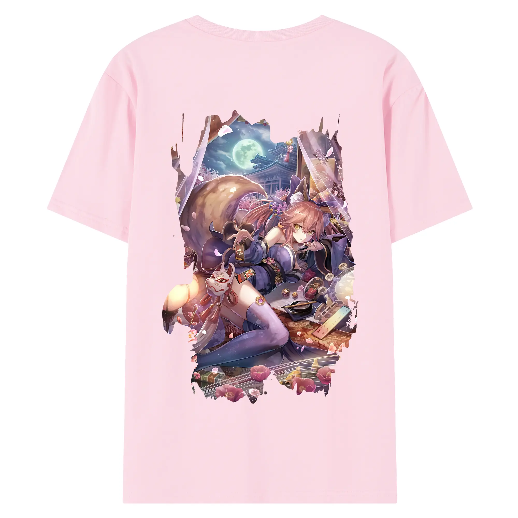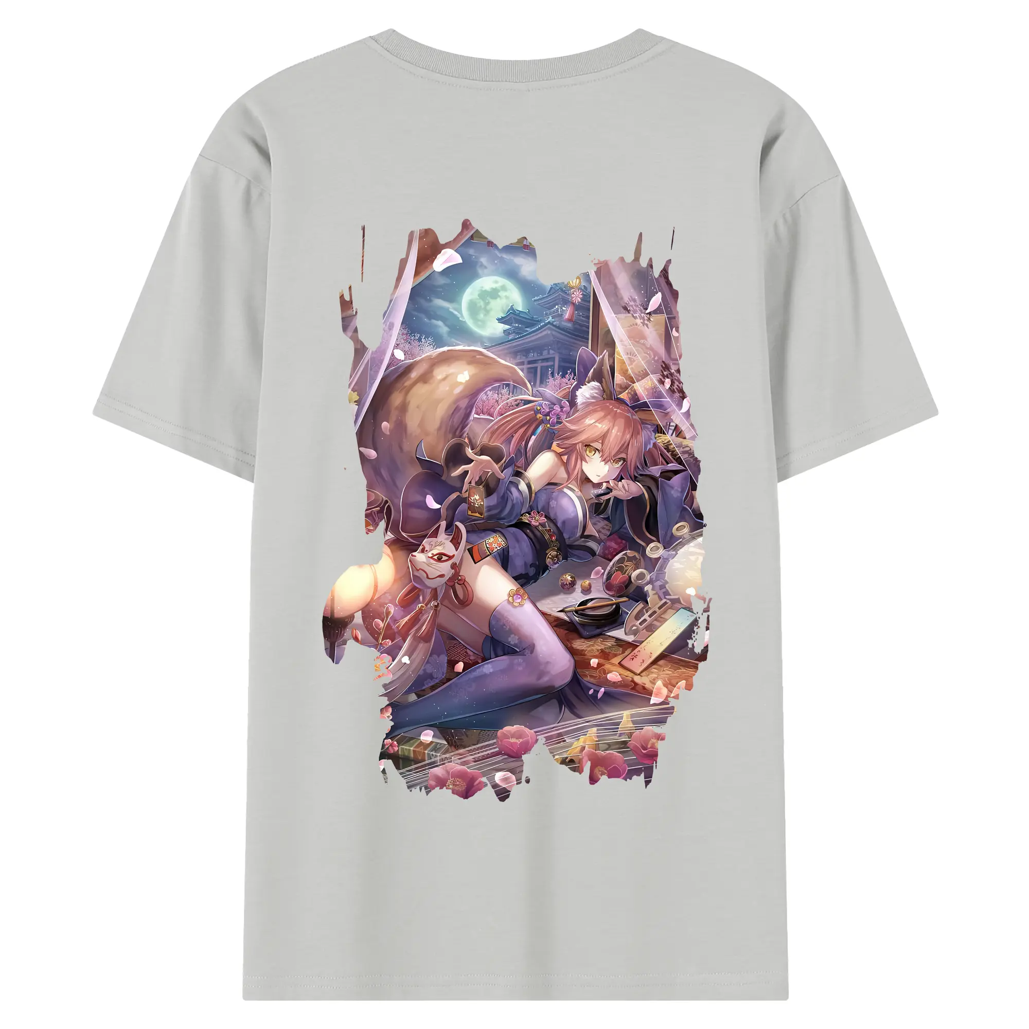 FGO グッズ,玉藻の前 - 綿100% ヴィンテージ風 半袖Tシャツ ・ 背面プリント ・ 柔らか肌触り ・ 通気性 快適 ・ スポーツ カジュアル 外出用