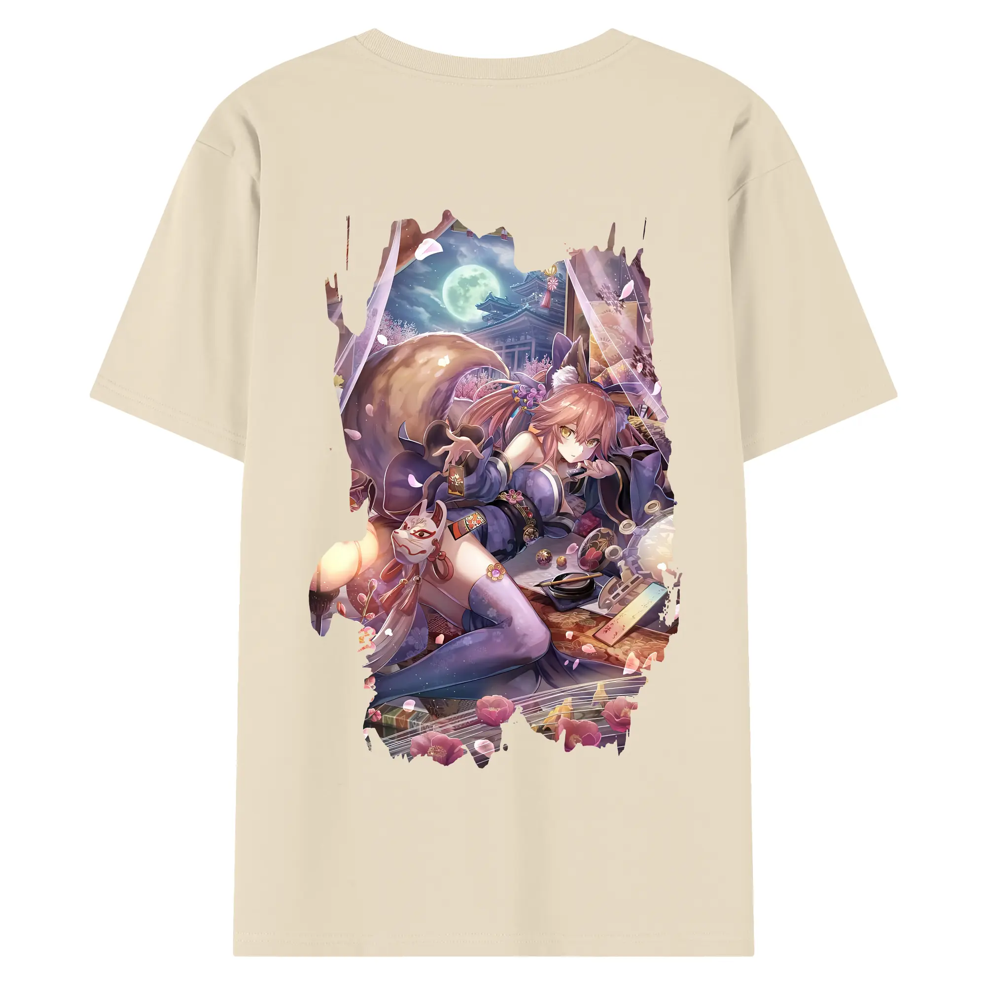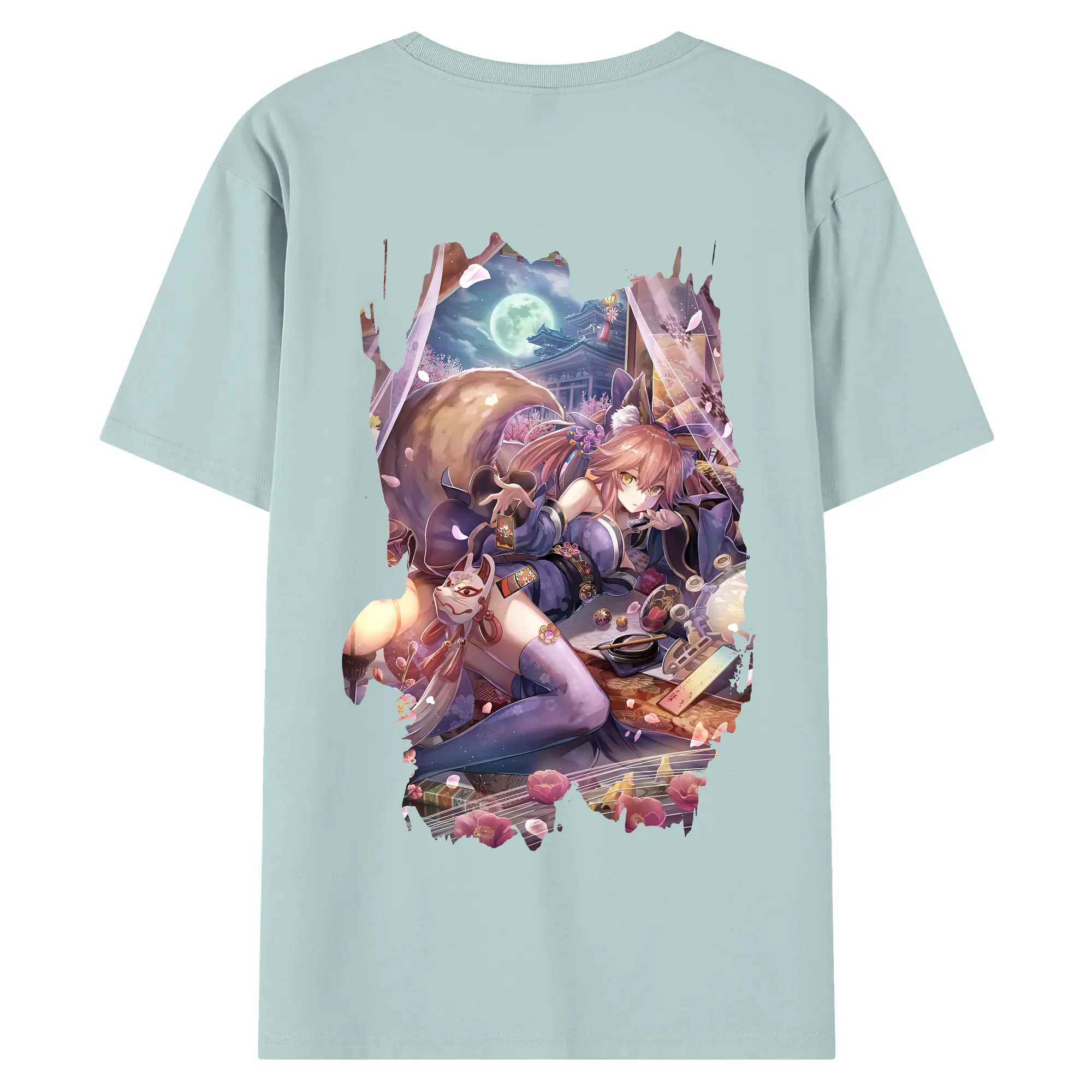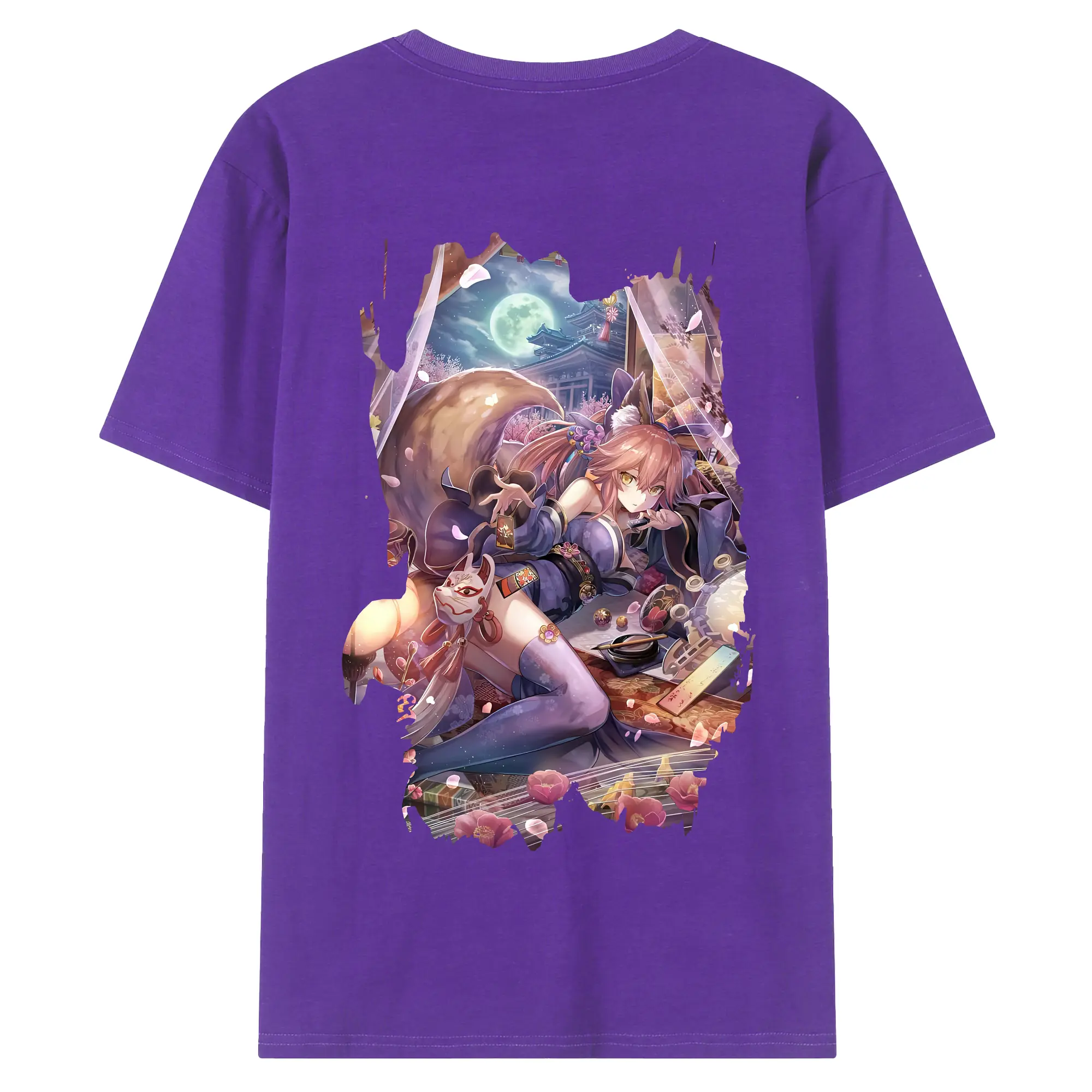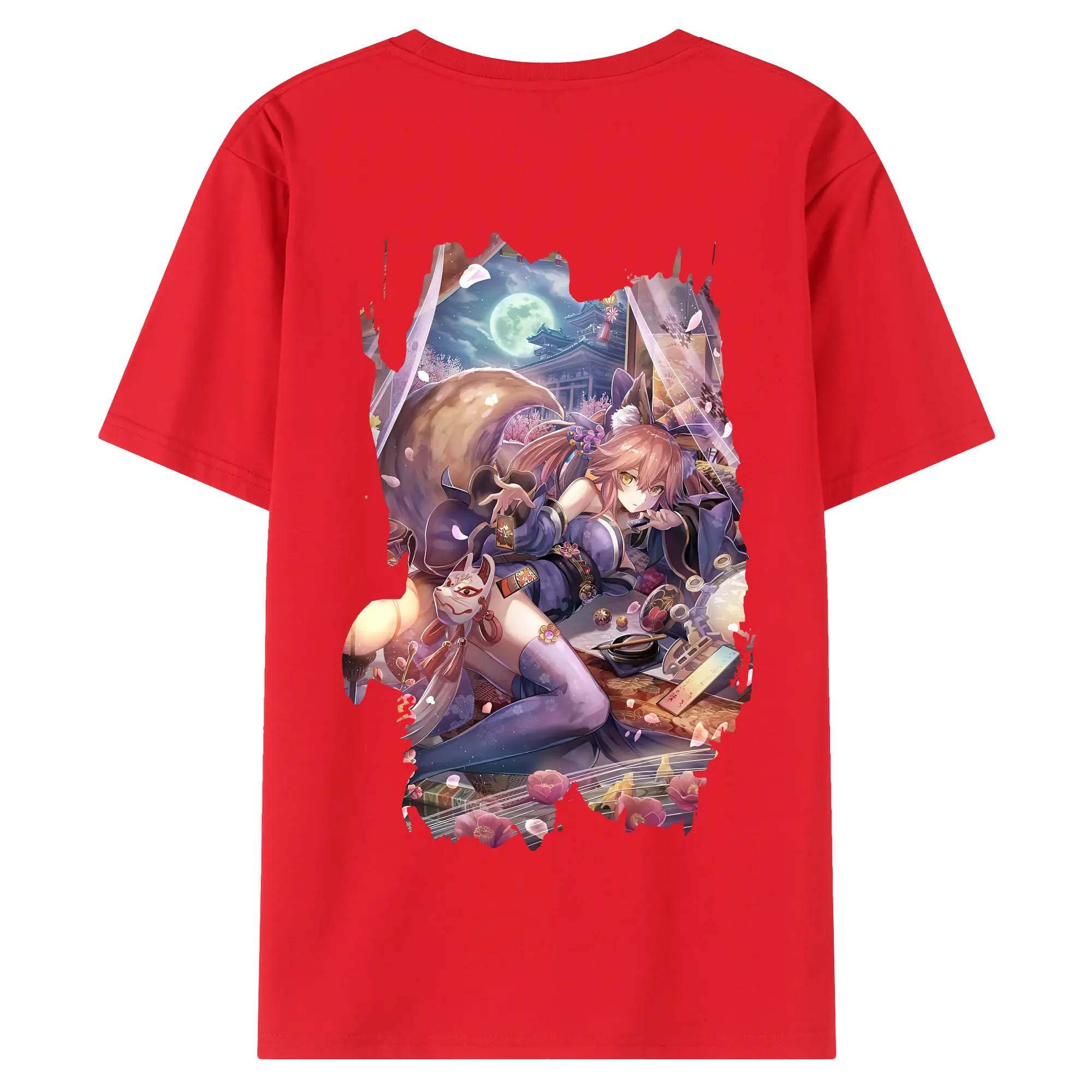 FGO グッズ,玉藻の前 - 綿100% ヴィンテージ風 半袖Tシャツ ・ 背面プリント ・ 柔らか肌触り ・ 通気性 快適 ・ スポーツ カジュアル 外出用