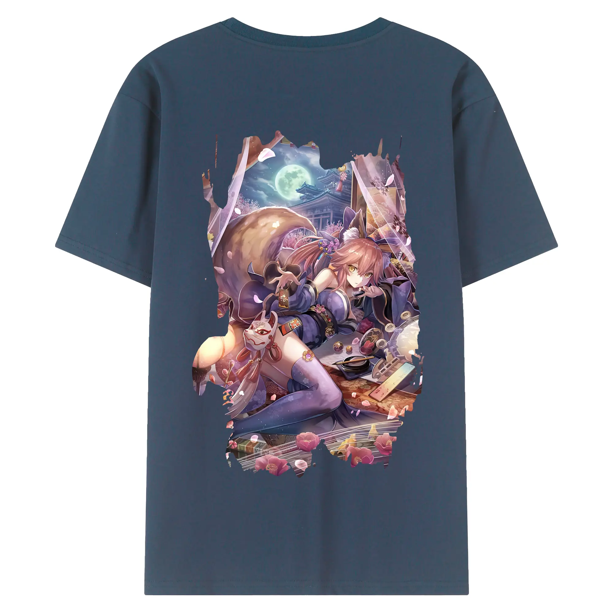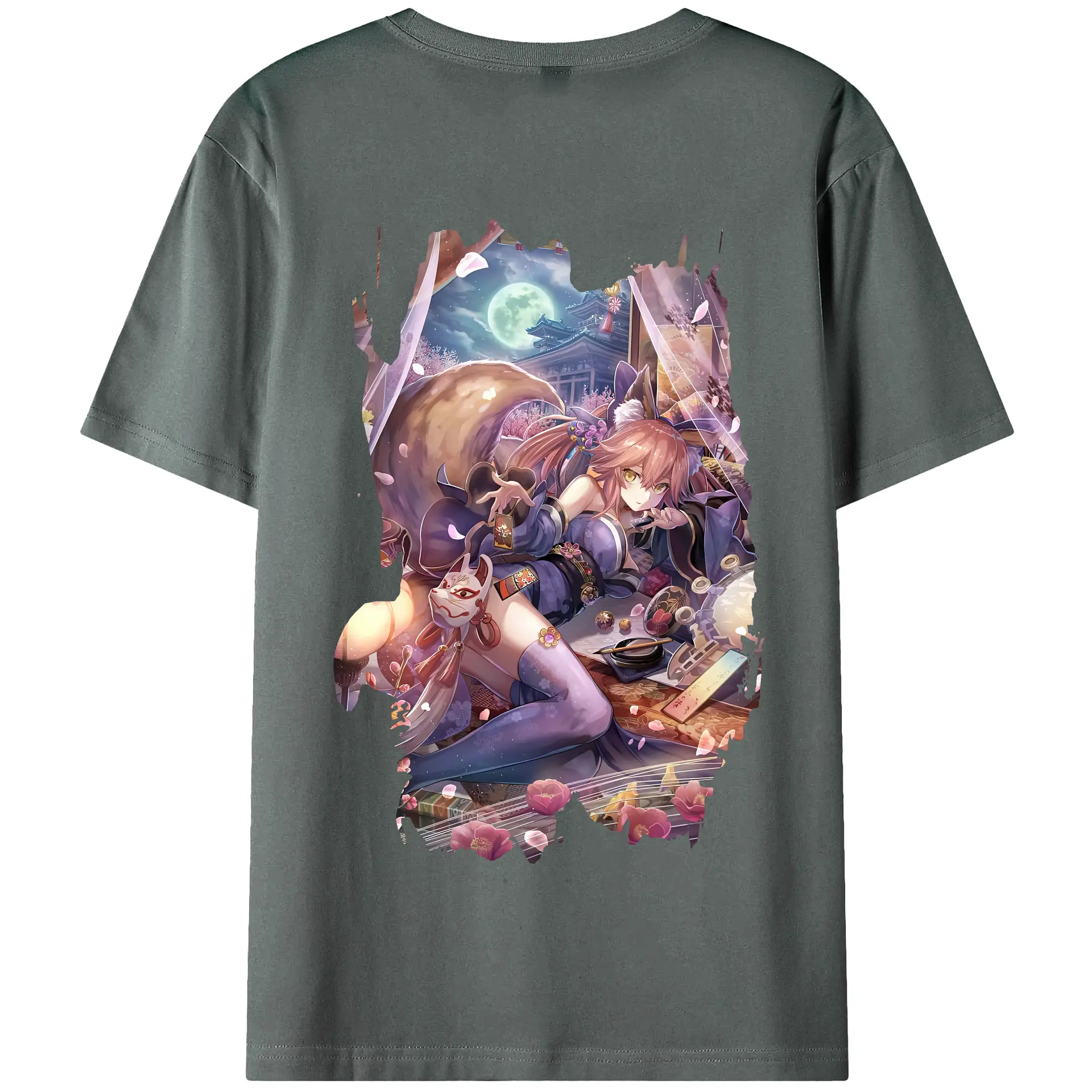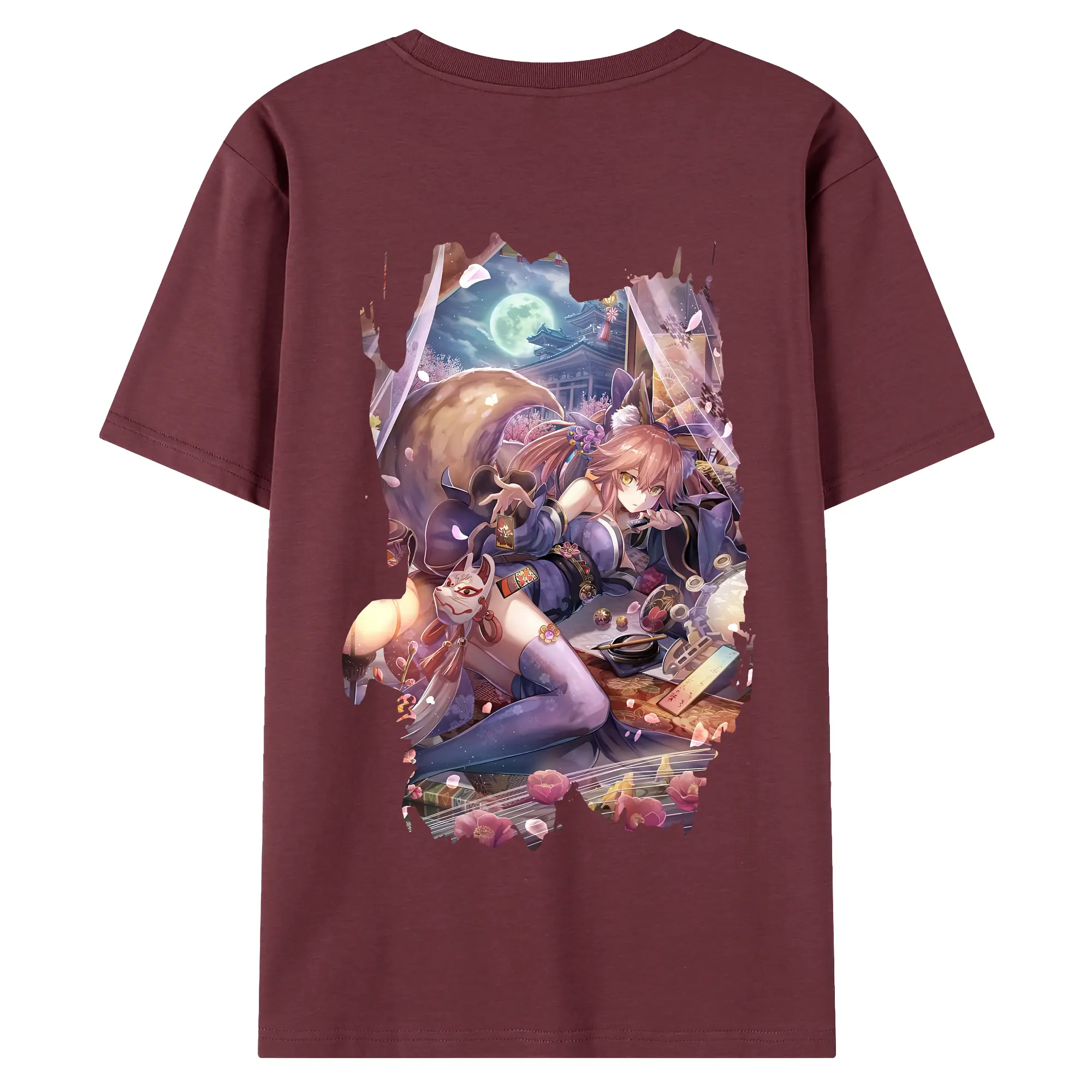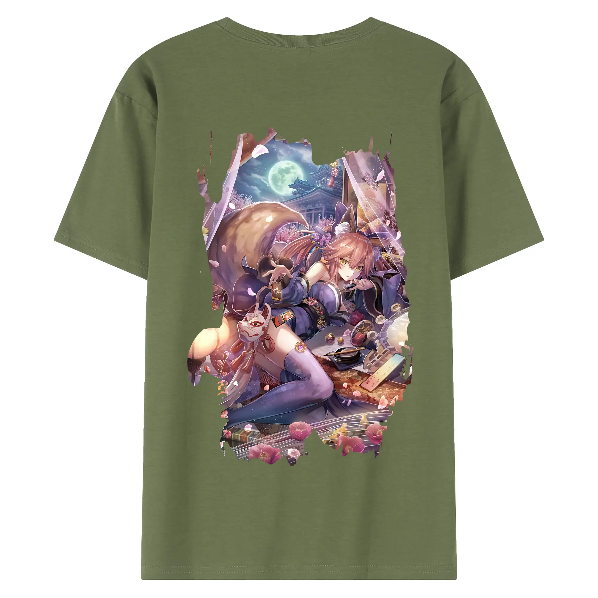 FGO グッズ,玉藻の前 - 綿100% ヴィンテージ風 半袖Tシャツ ・ 背面プリント ・ 柔らか肌触り ・ 通気性 快適 ・ スポーツ カジュアル 外出用