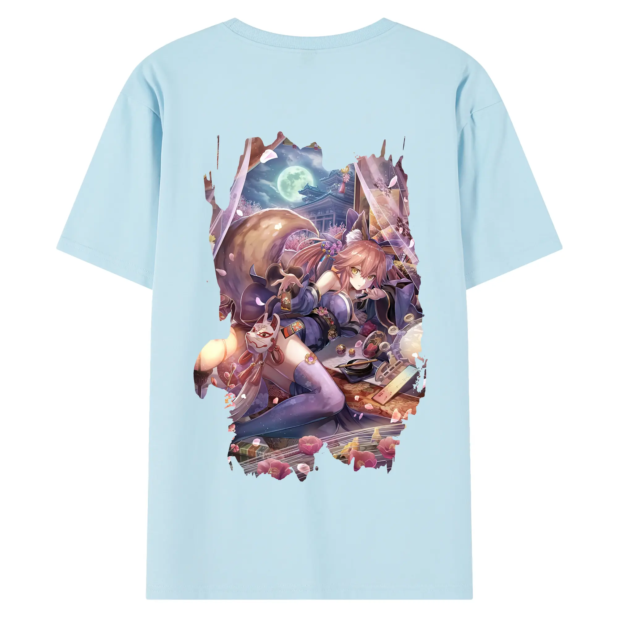 FGO グッズ,玉藻の前 - 綿100% 半袖Tシャツ ・ フロントプリント ・ 快適 通気性 ・ 日常使い 散歩 スポーツ用