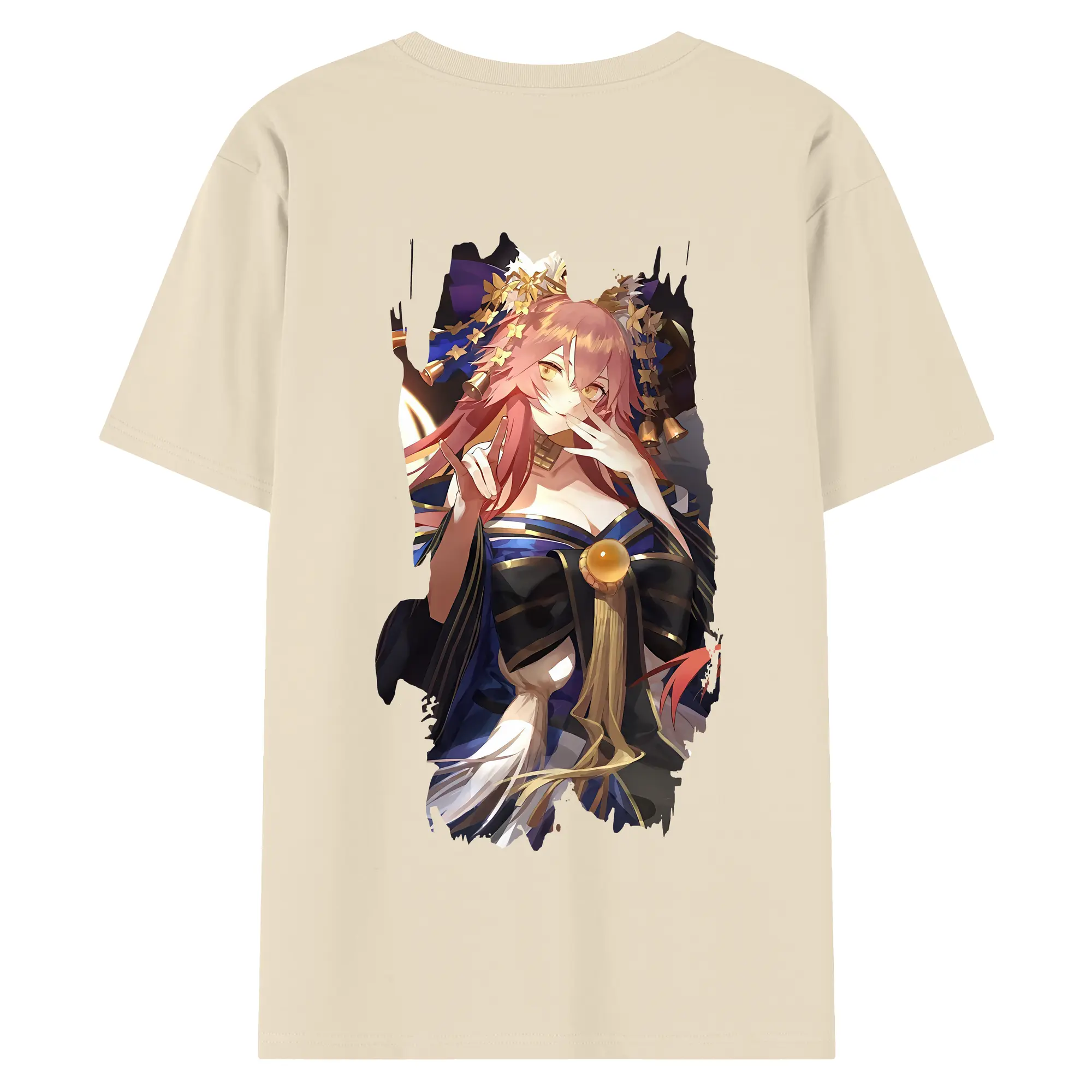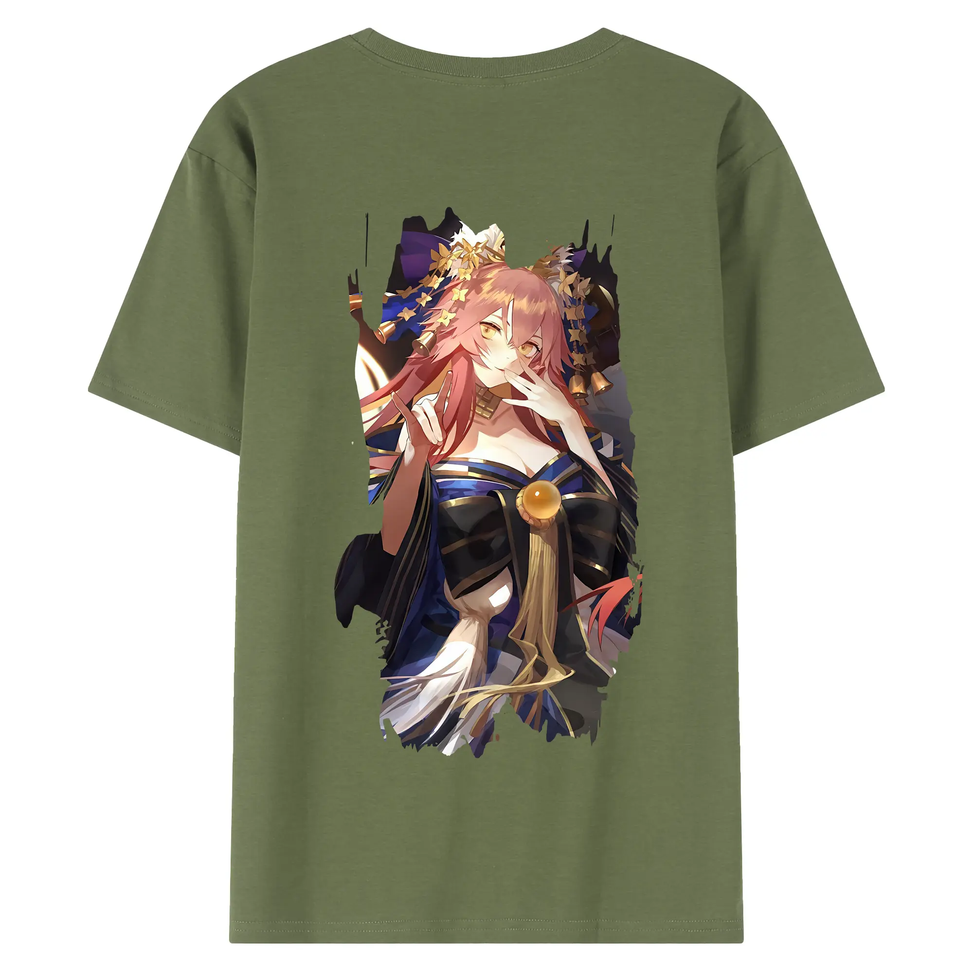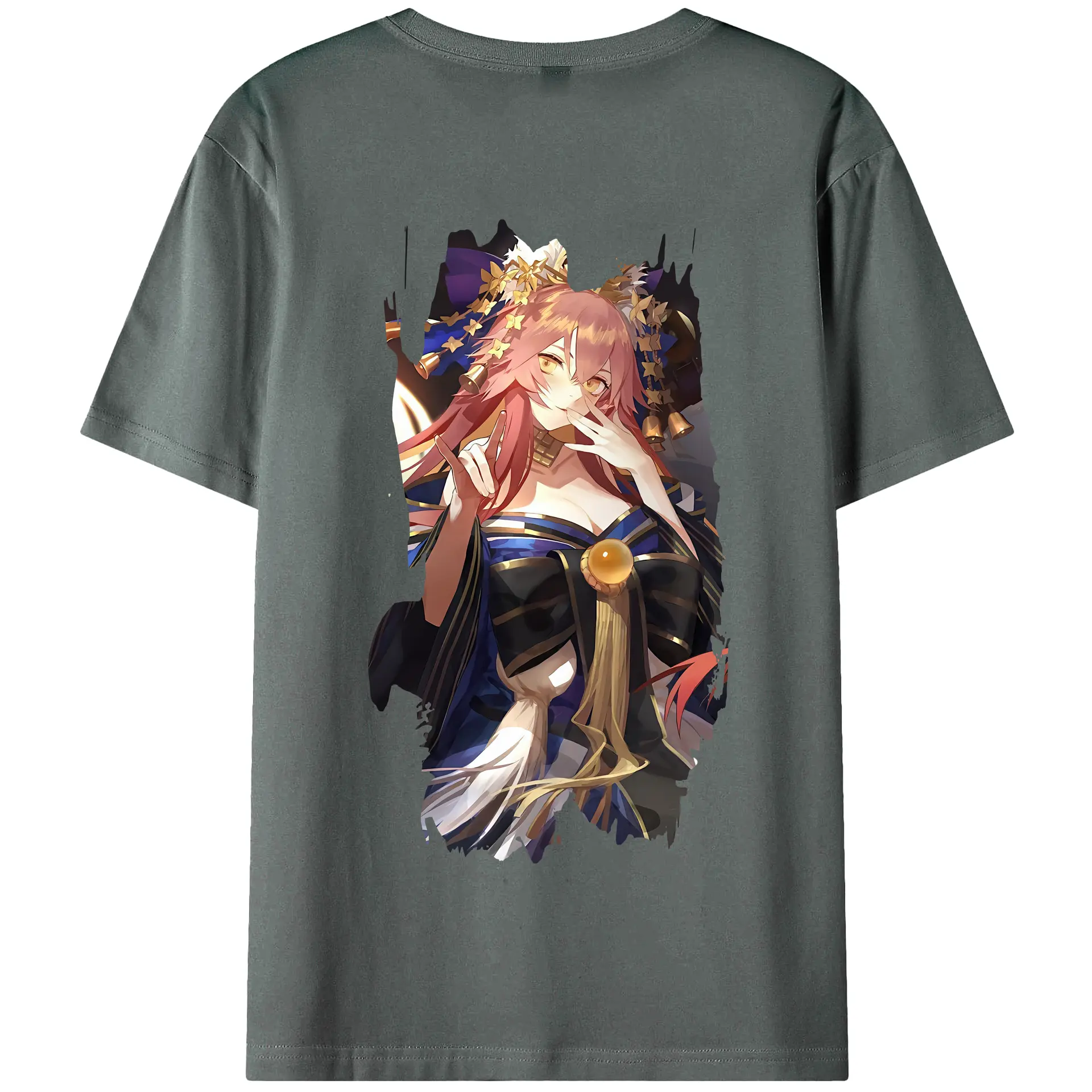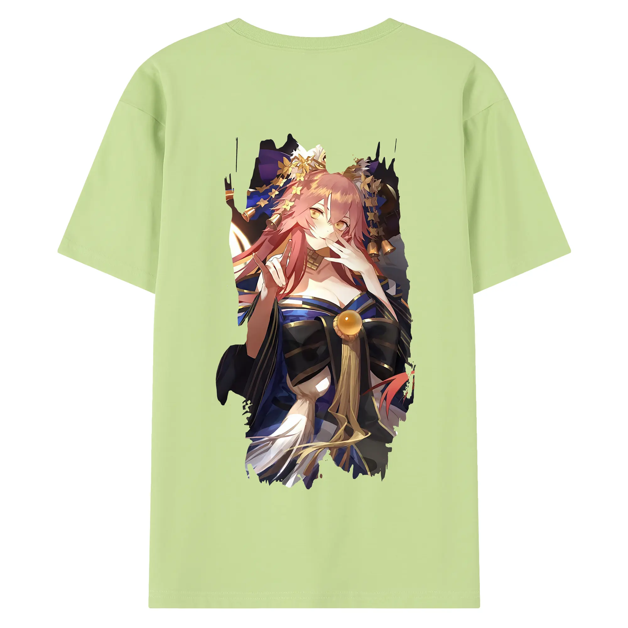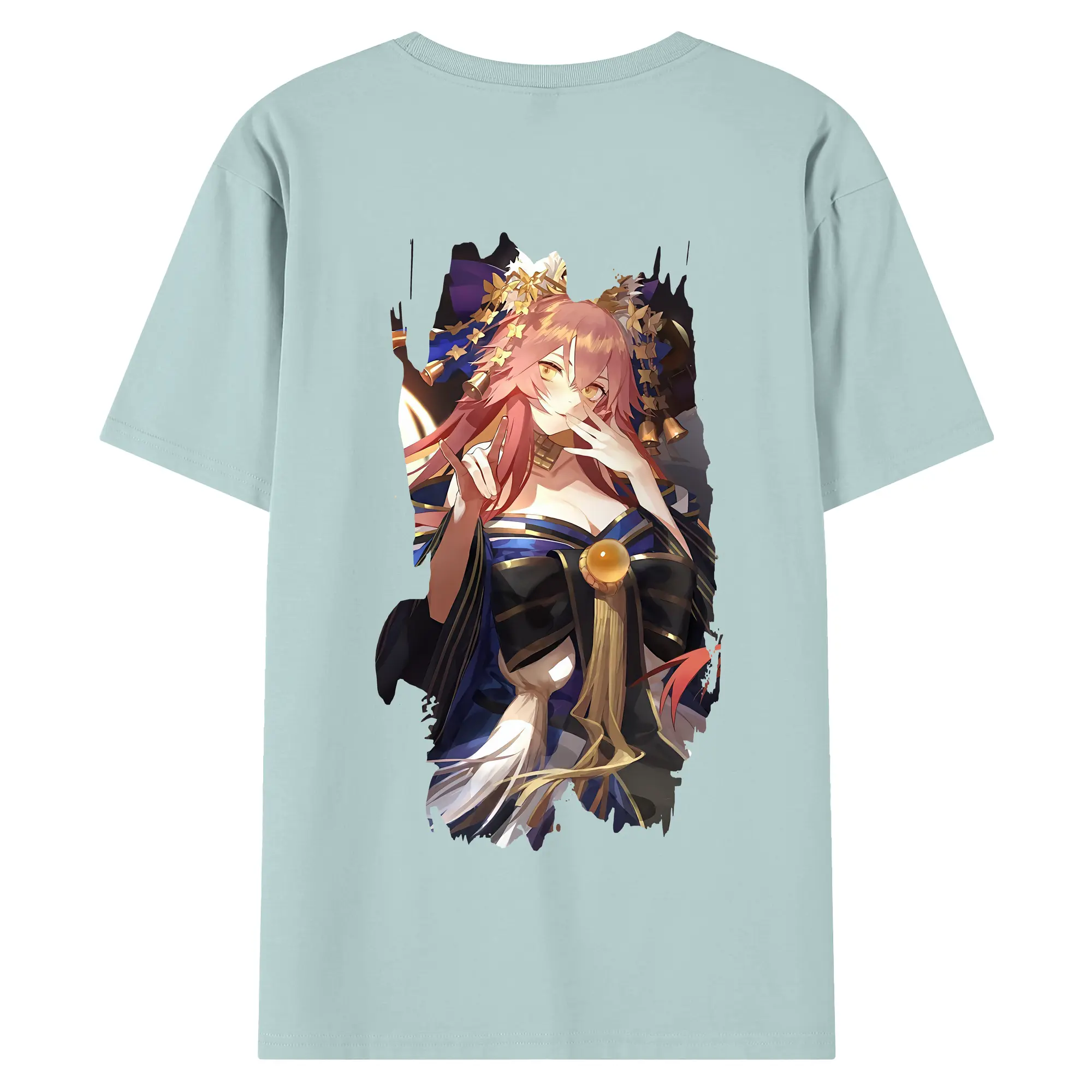 FGO グッズ,玉藻の前 - 綿100% 半袖Tシャツ ・ フロントプリント ・ 快適 通気性 ・ 日常使い 散歩 スポーツ用