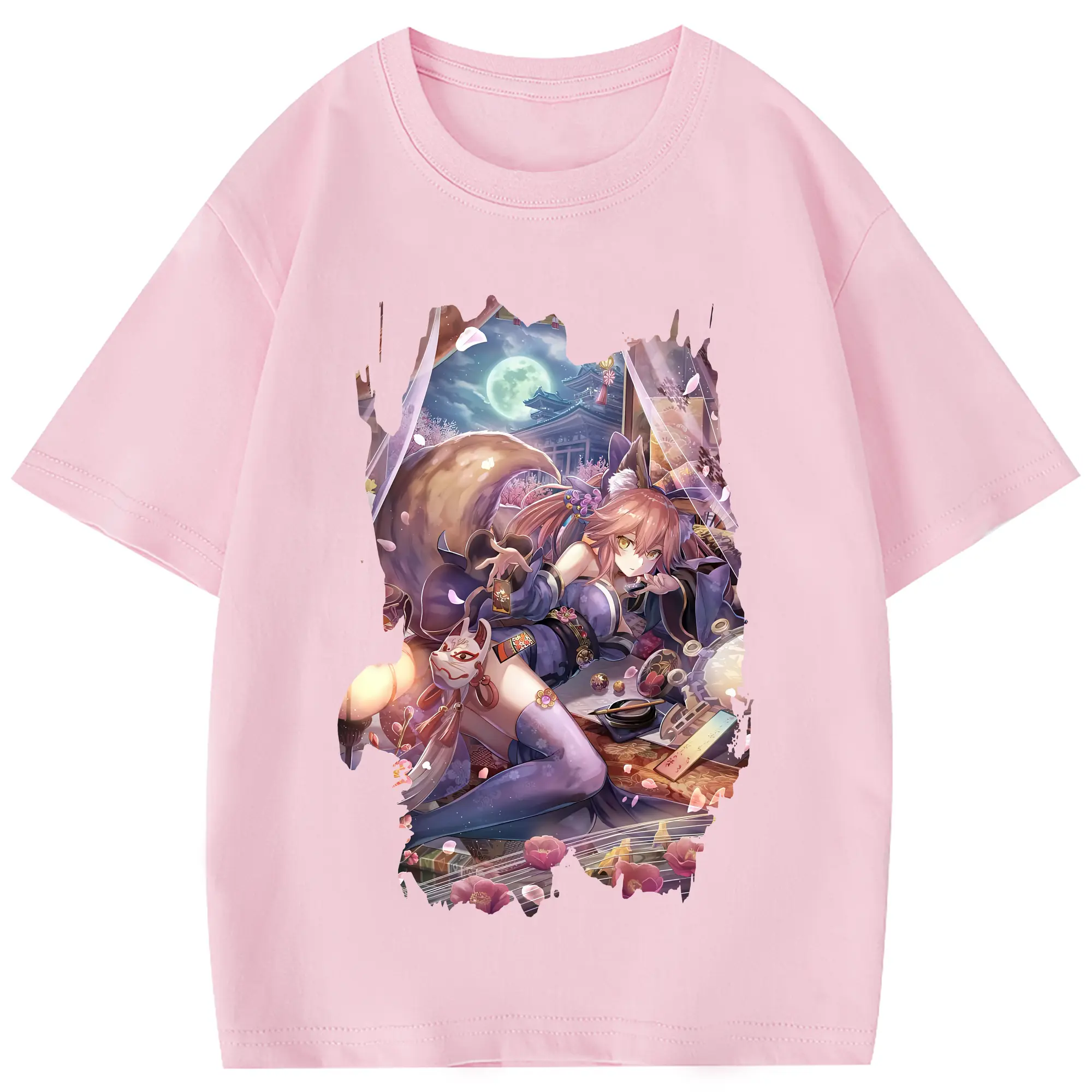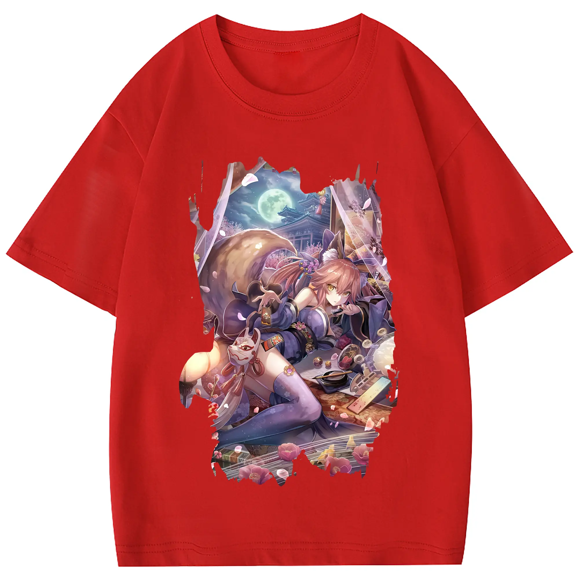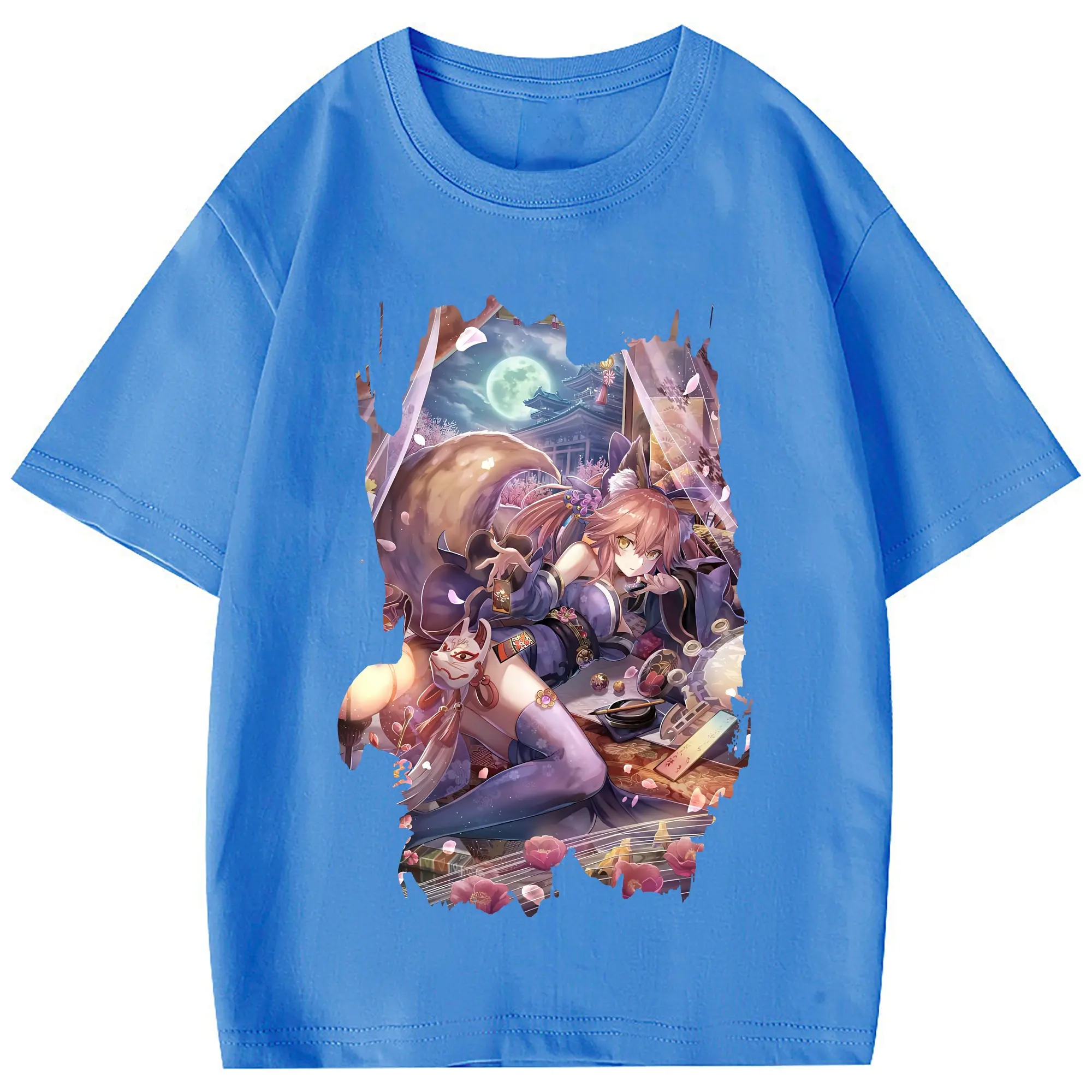 FGO グッズ,玉藻の前 - 綿100% 半袖Tシャツ ・ フロントプリント ・ 快適 通気性 ・ 日常使い 散歩 スポーツ用