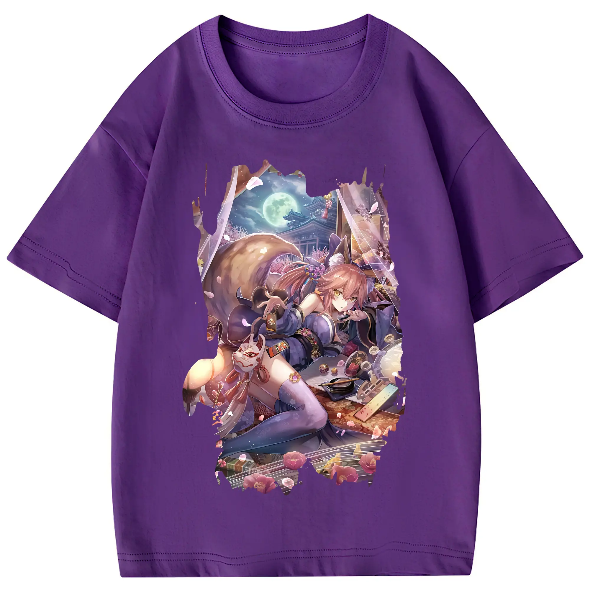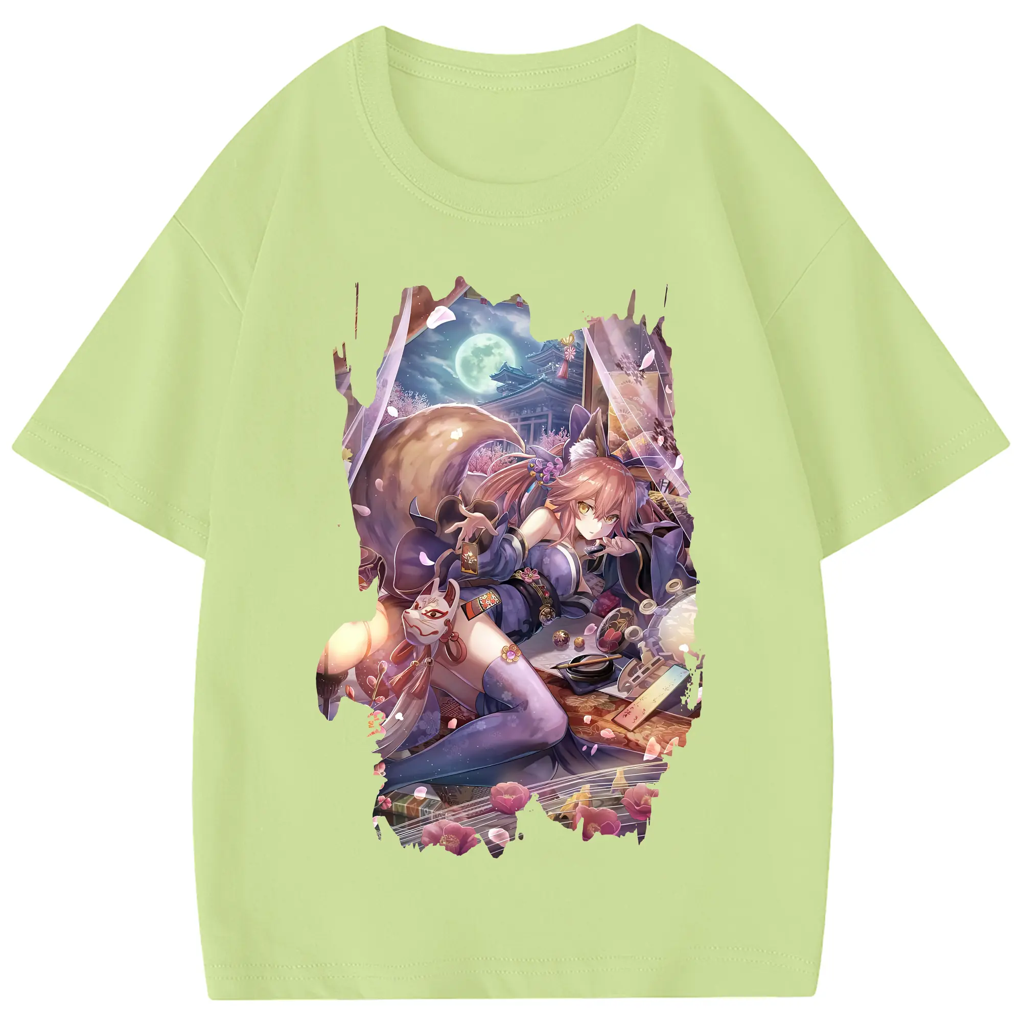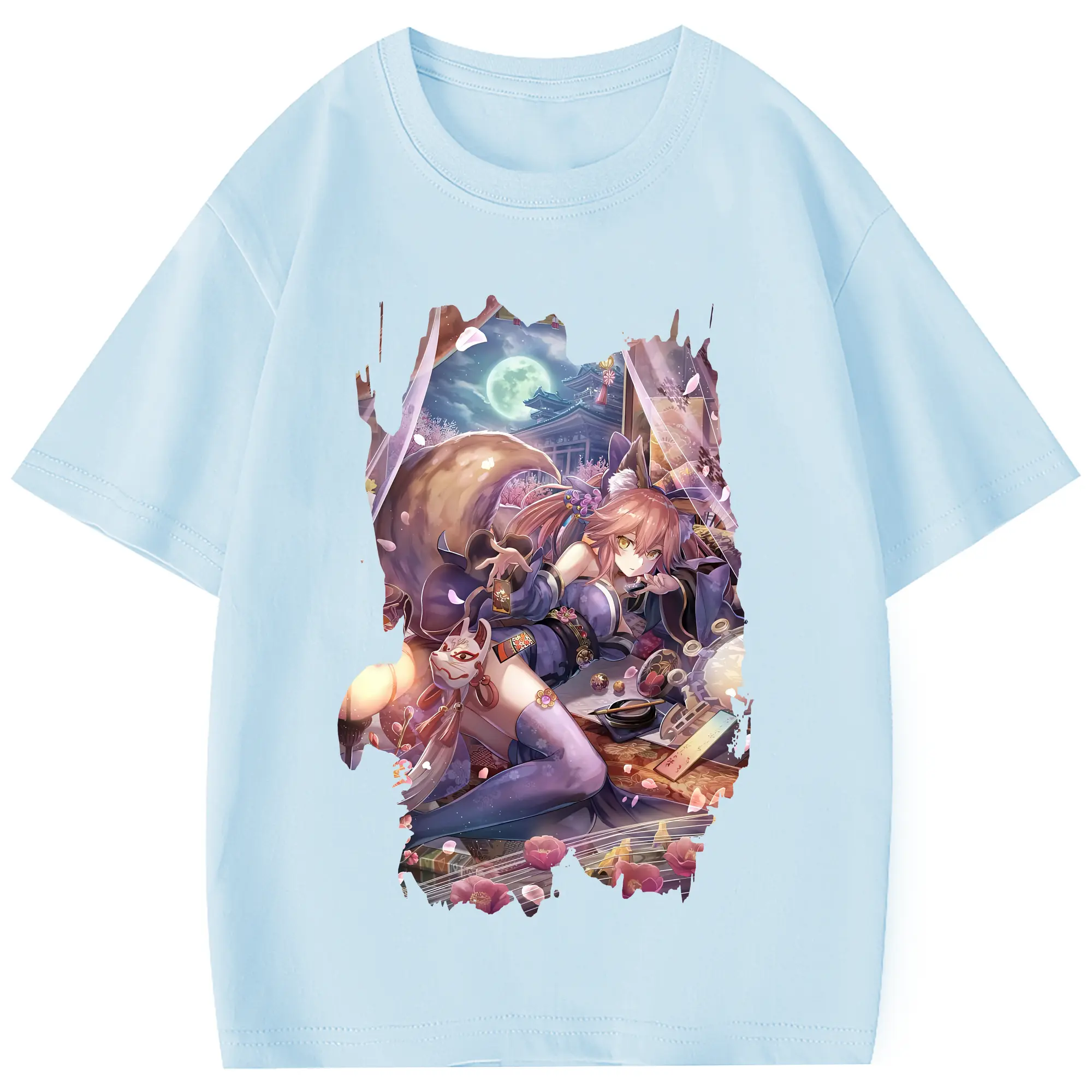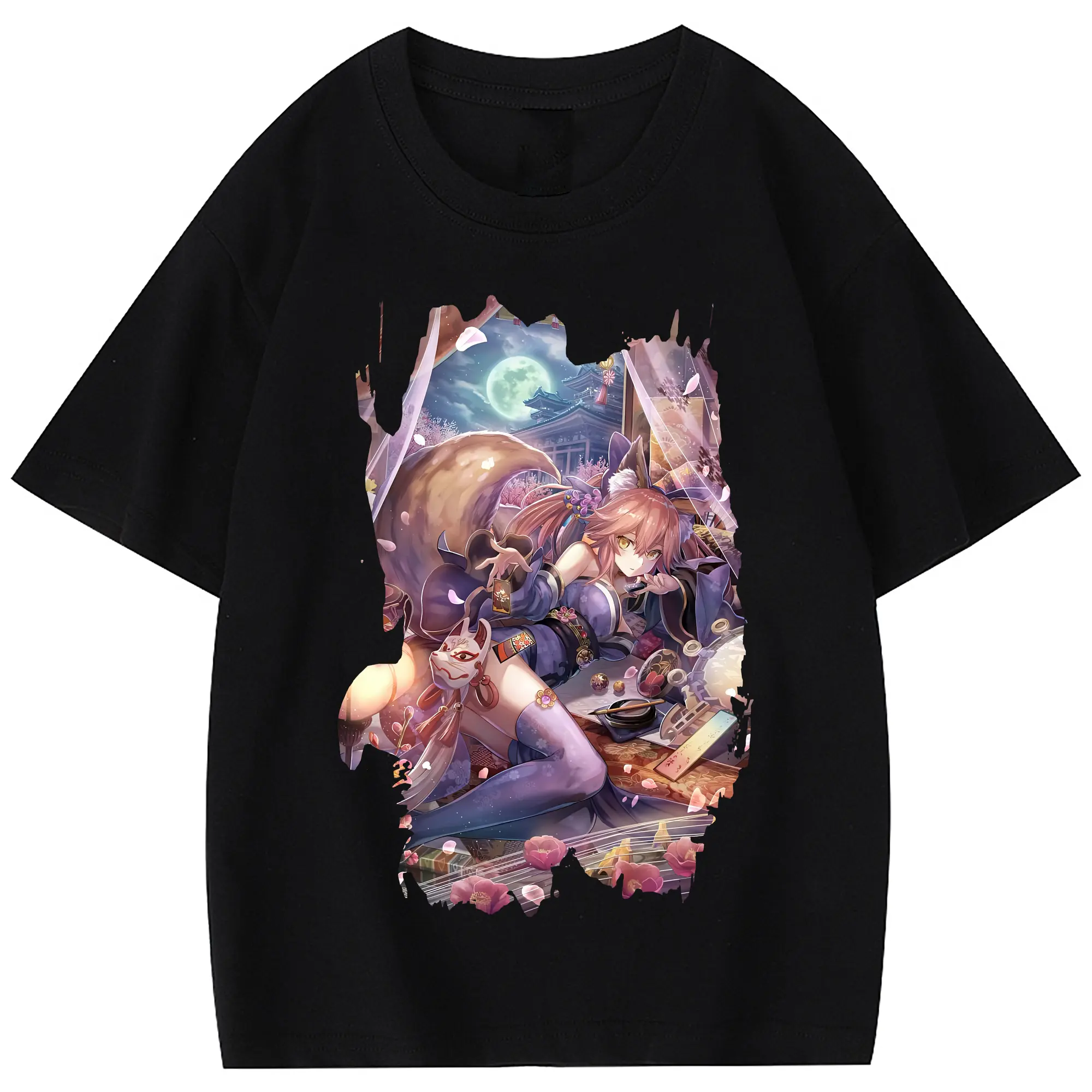 FGO グッズ,玉藻の前 - 綿100% 半袖Tシャツ ・ フロントプリント ・ 快適 通気性 ・ 日常使い 散歩 スポーツ用