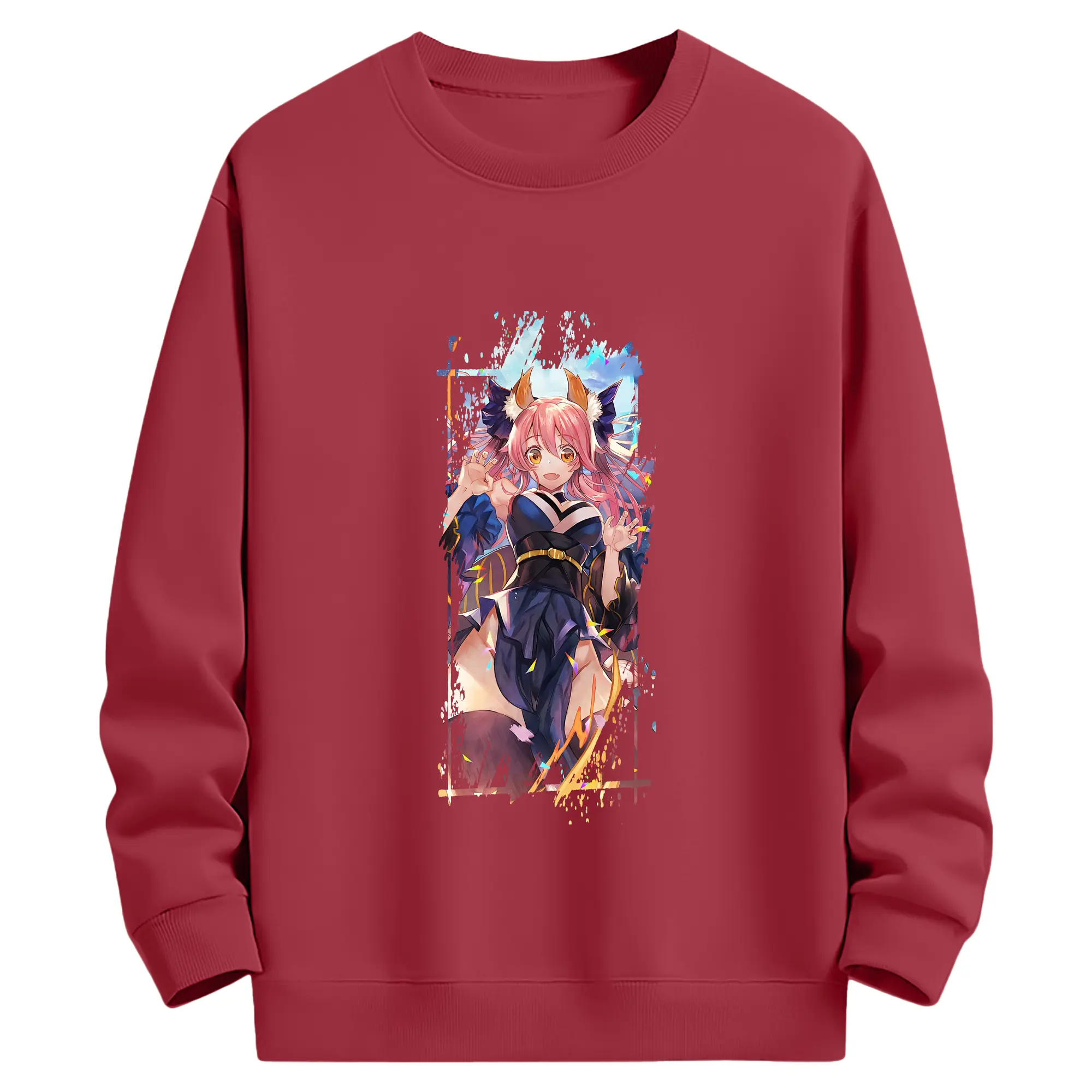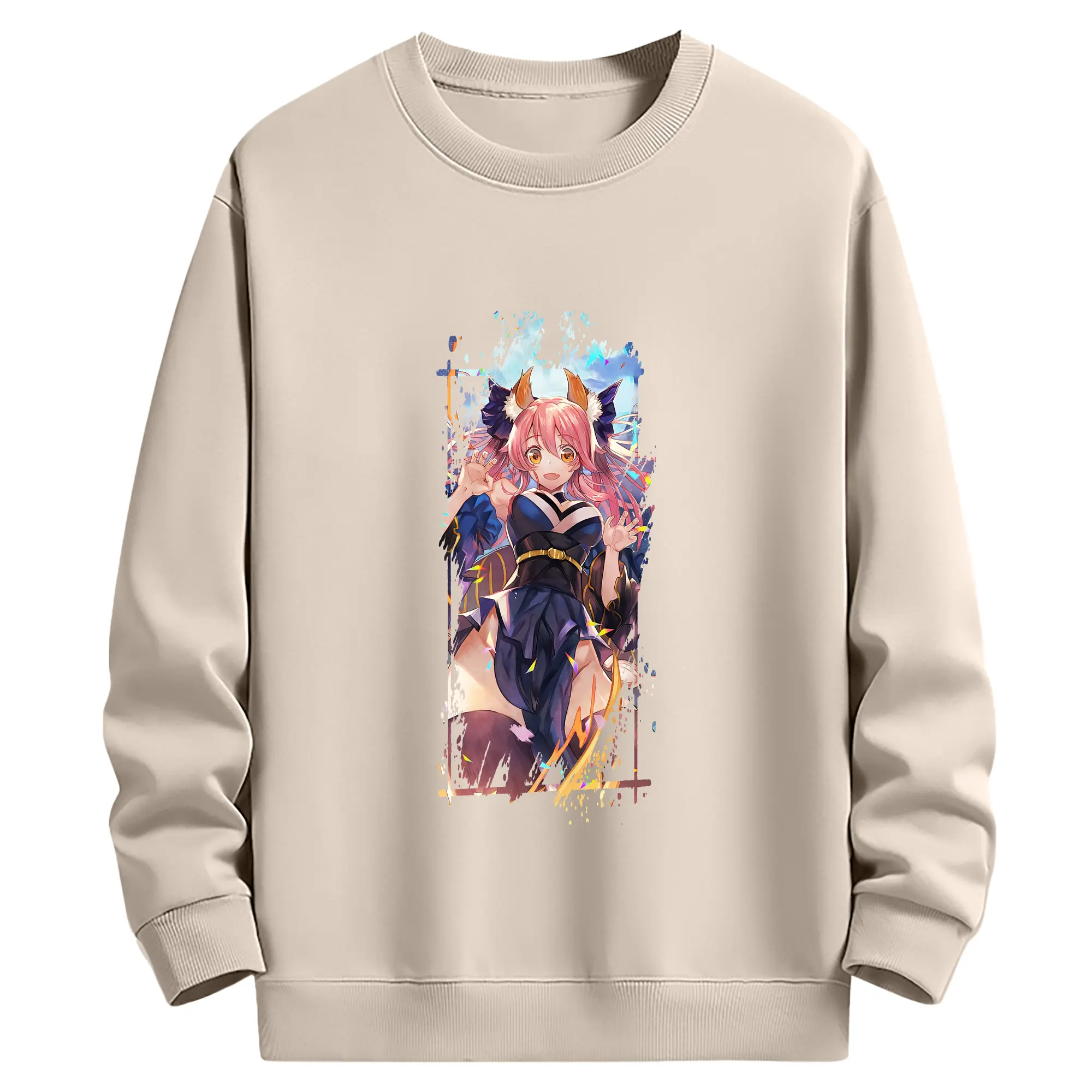 FGO グッズ,玉藻の前 - 薄手 クルーネック スウェット 裏毛260g · ポリエステル 春秋向け カジュアル 男女兼用 · トレーナー デイリー スポーツ 散歩に最適
