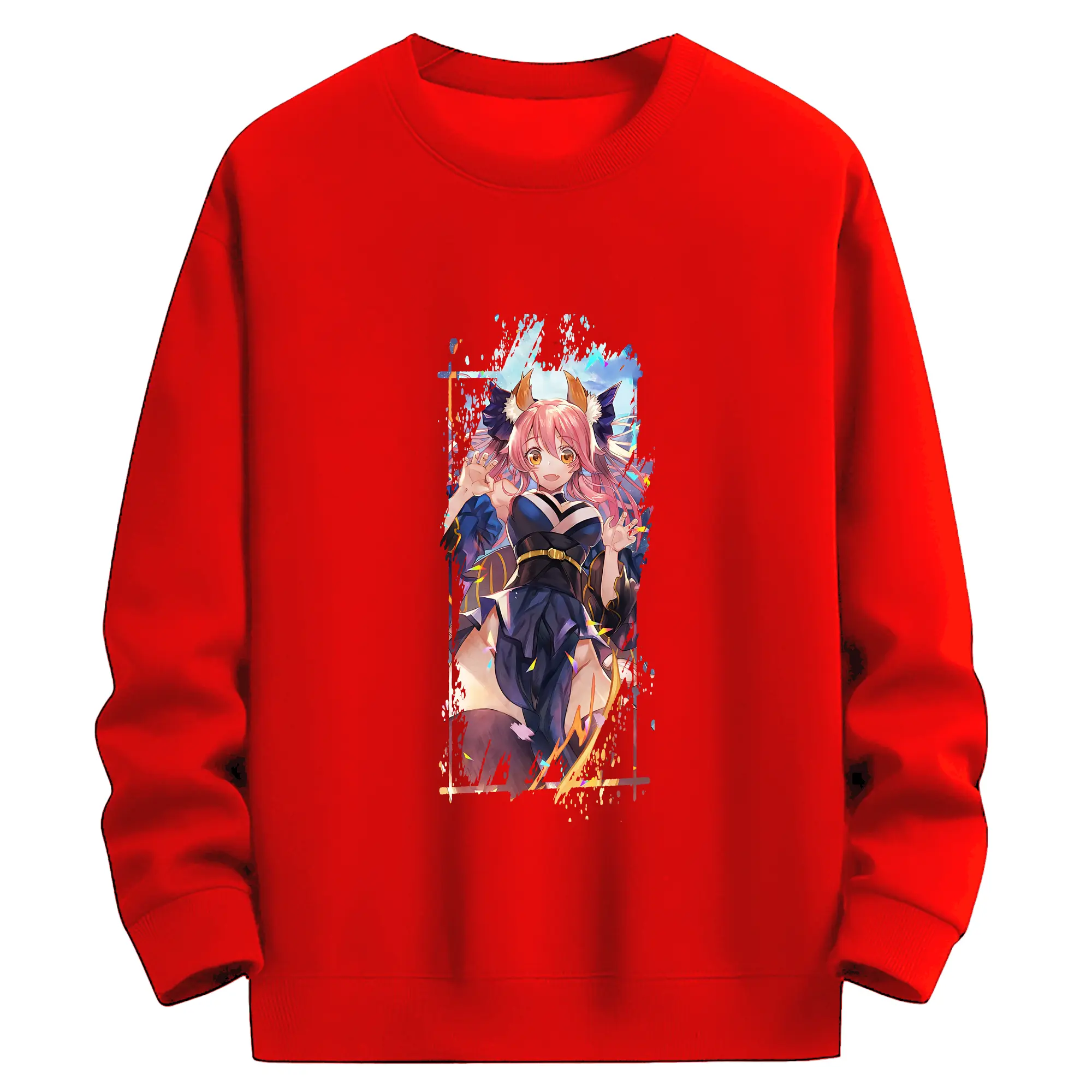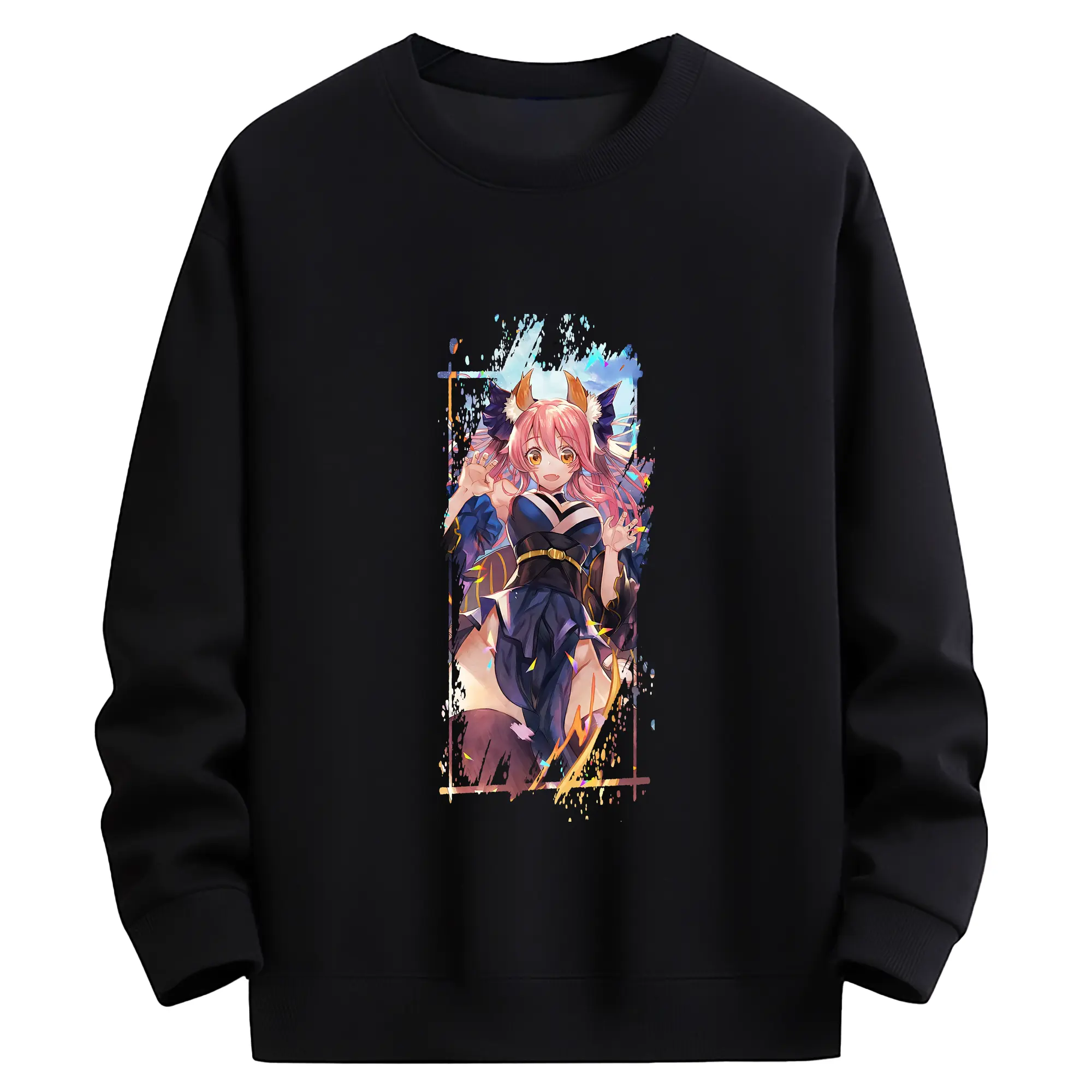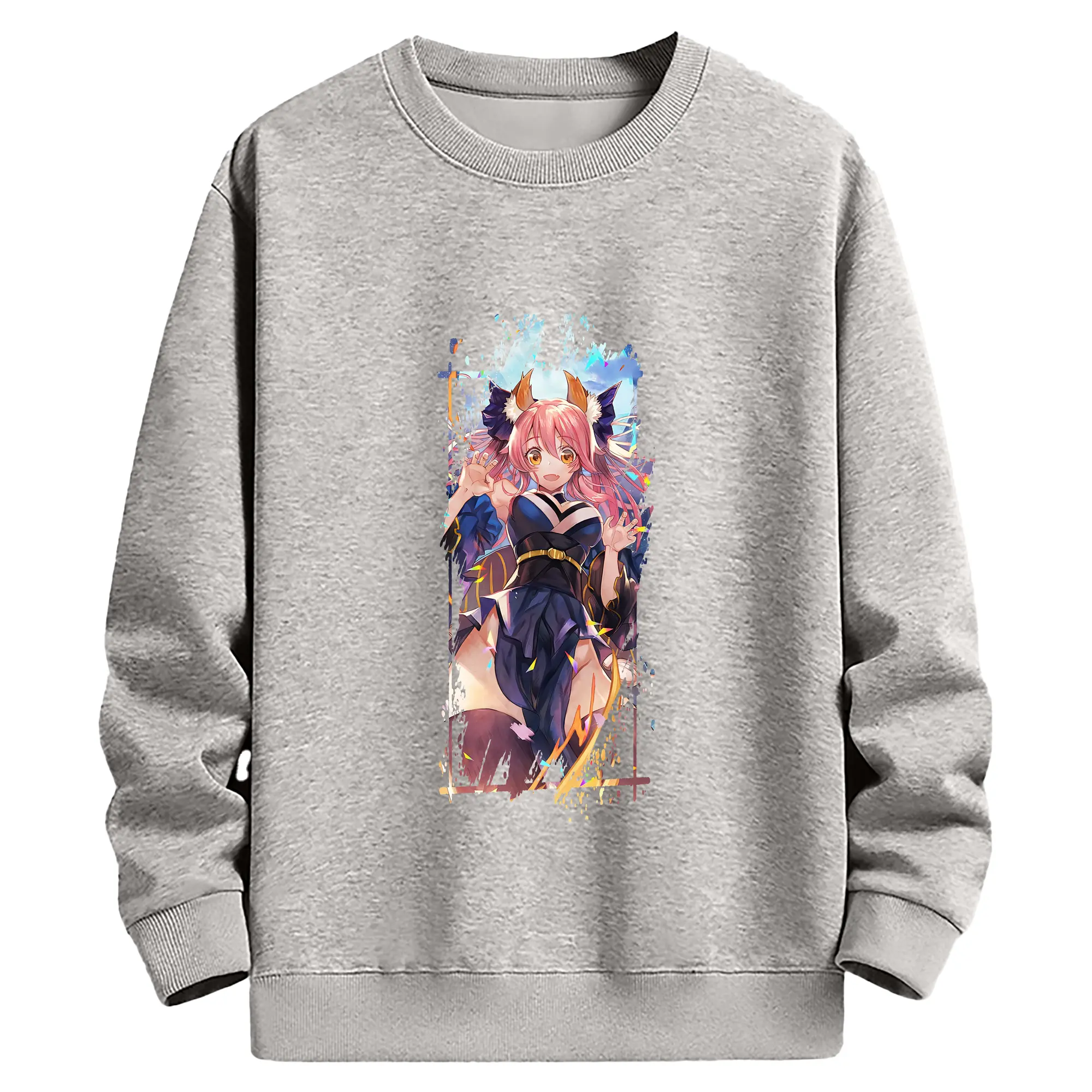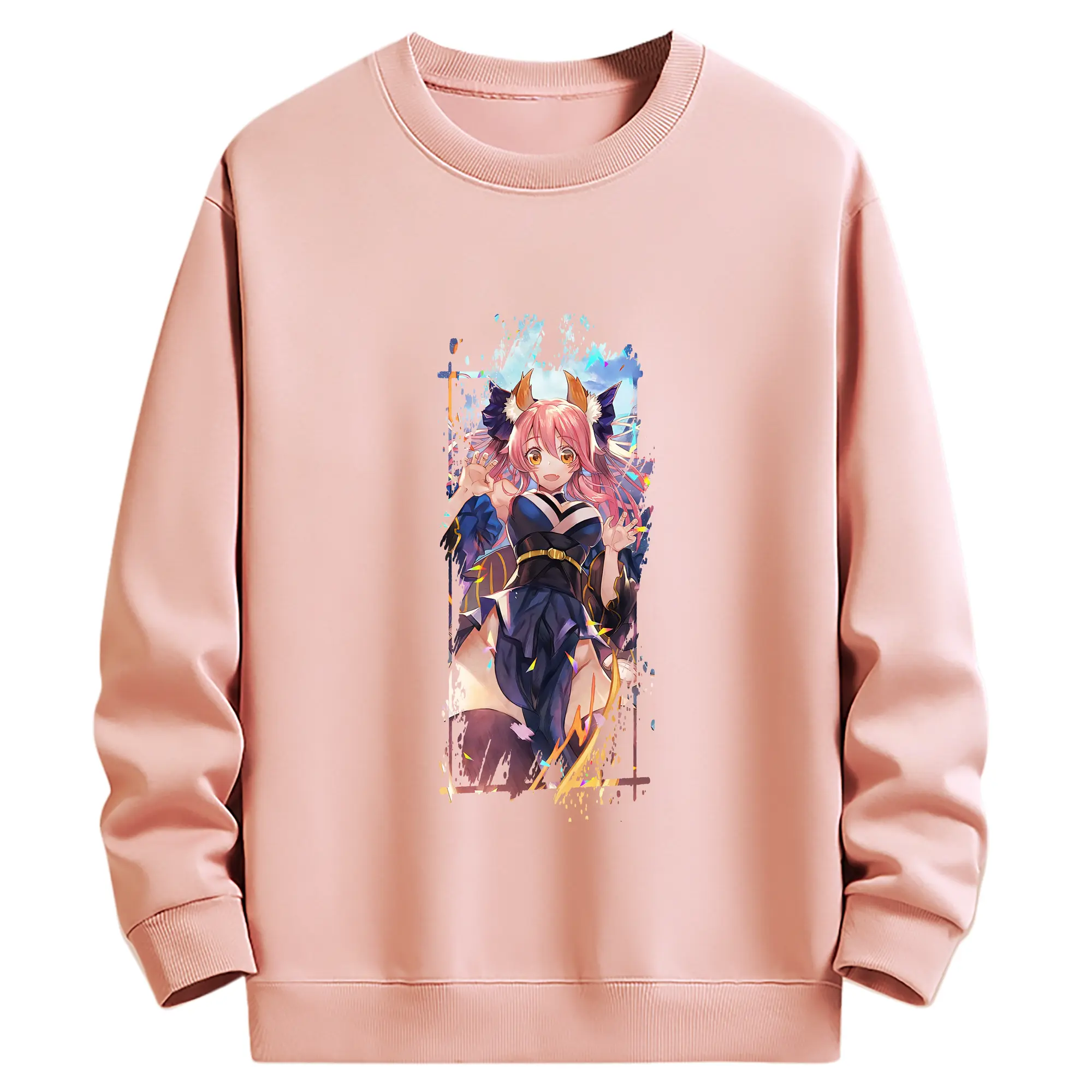 FGO グッズ,玉藻の前 - 薄手 クルーネック スウェット 裏毛260g · ポリエステル 春秋向け カジュアル 男女兼用 · トレーナー デイリー スポーツ 散歩に最適