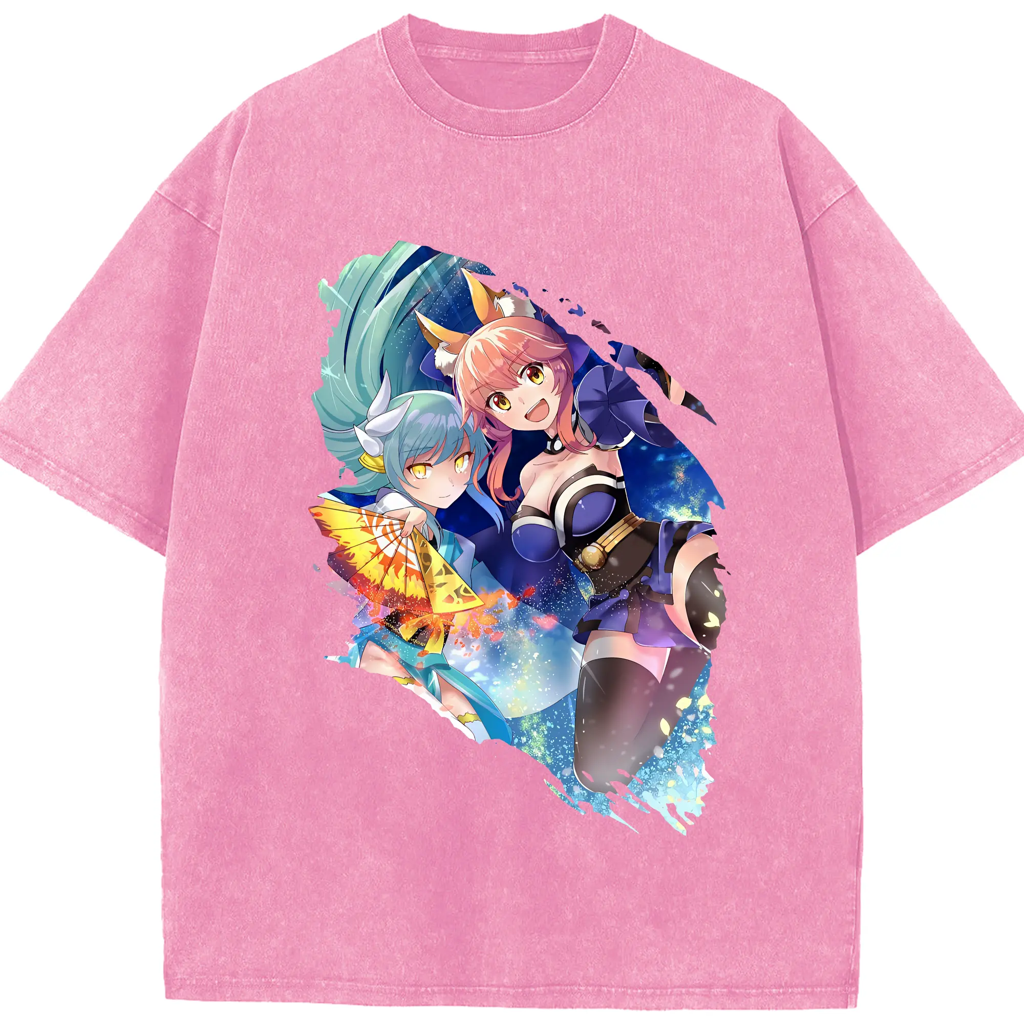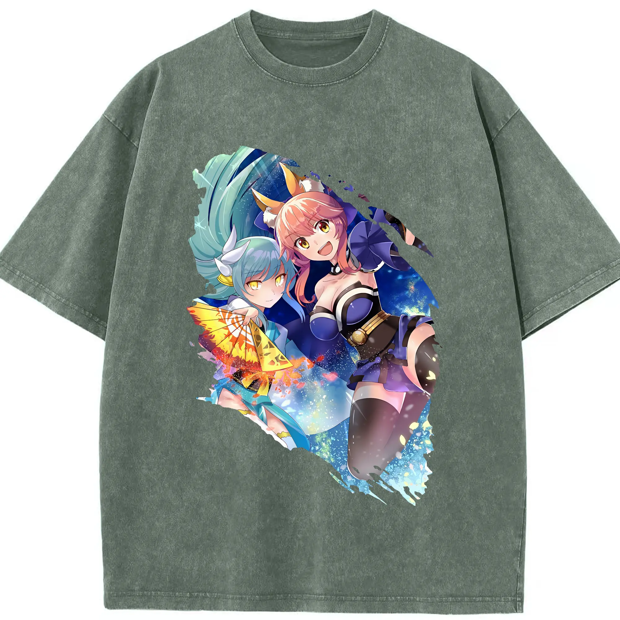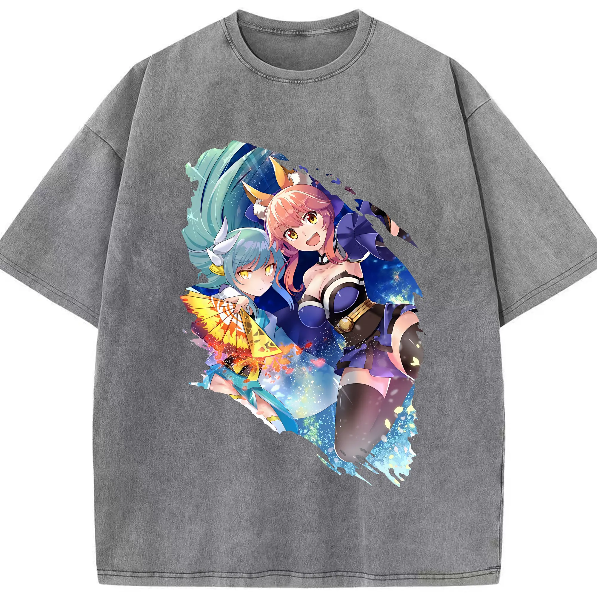 FGO グッズ,玉藻の前 - 綿100% ヴィンテージ風 半袖Tシャツ ・ 背面プリント ・ 柔らか肌触り ・ 通気性 快適 ・ スポーツ カジュアル 外出用