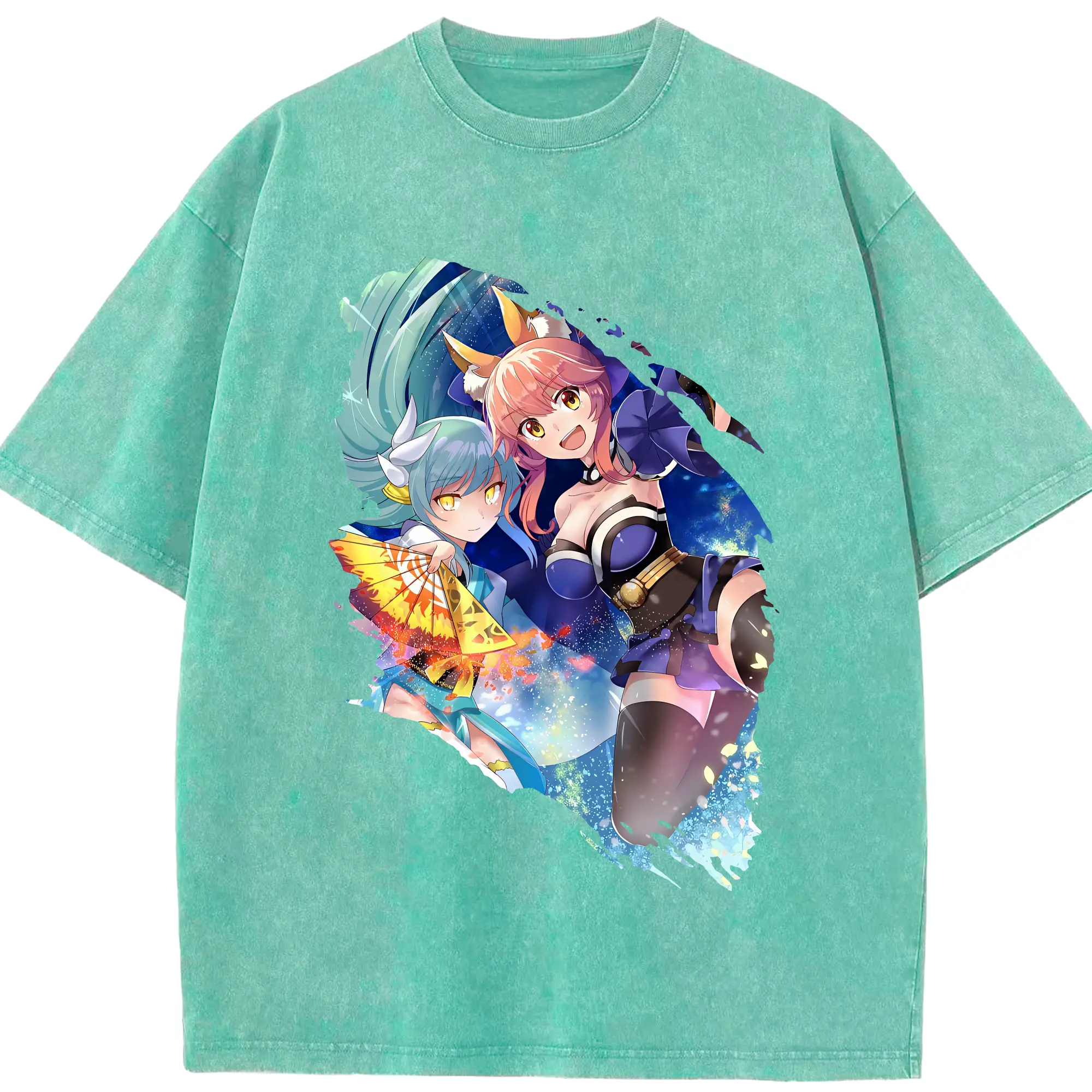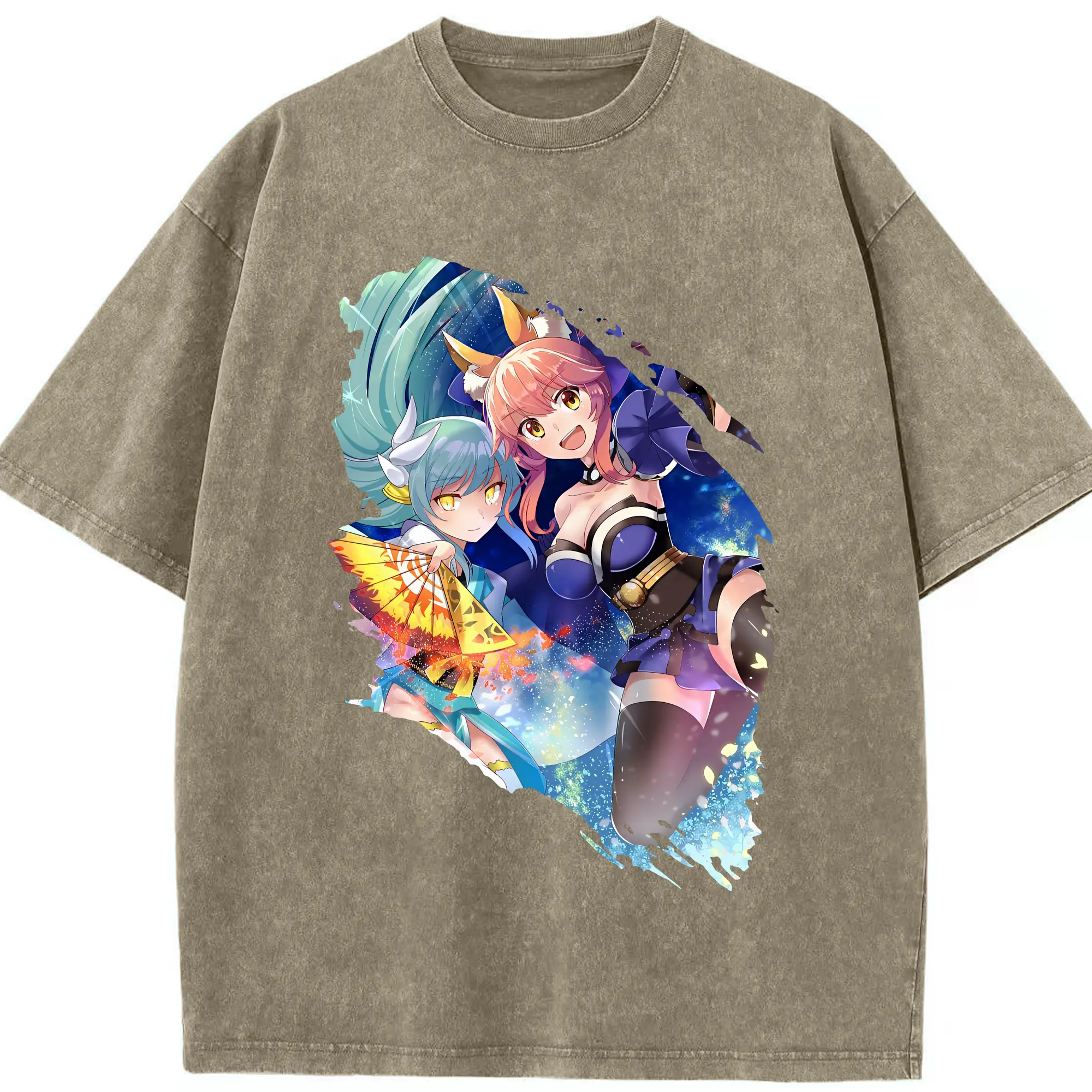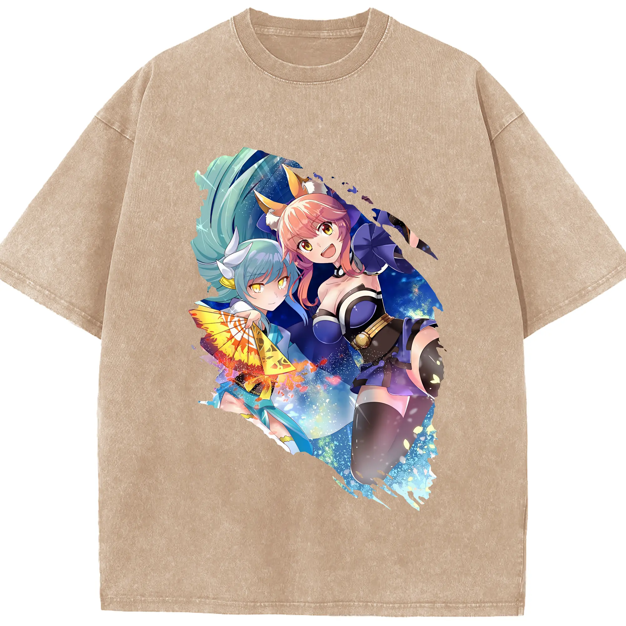 FGO グッズ,玉藻の前 - 綿100% ヴィンテージ風 半袖Tシャツ ・ 背面プリント ・ 柔らか肌触り ・ 通気性 快適 ・ スポーツ カジュアル 外出用