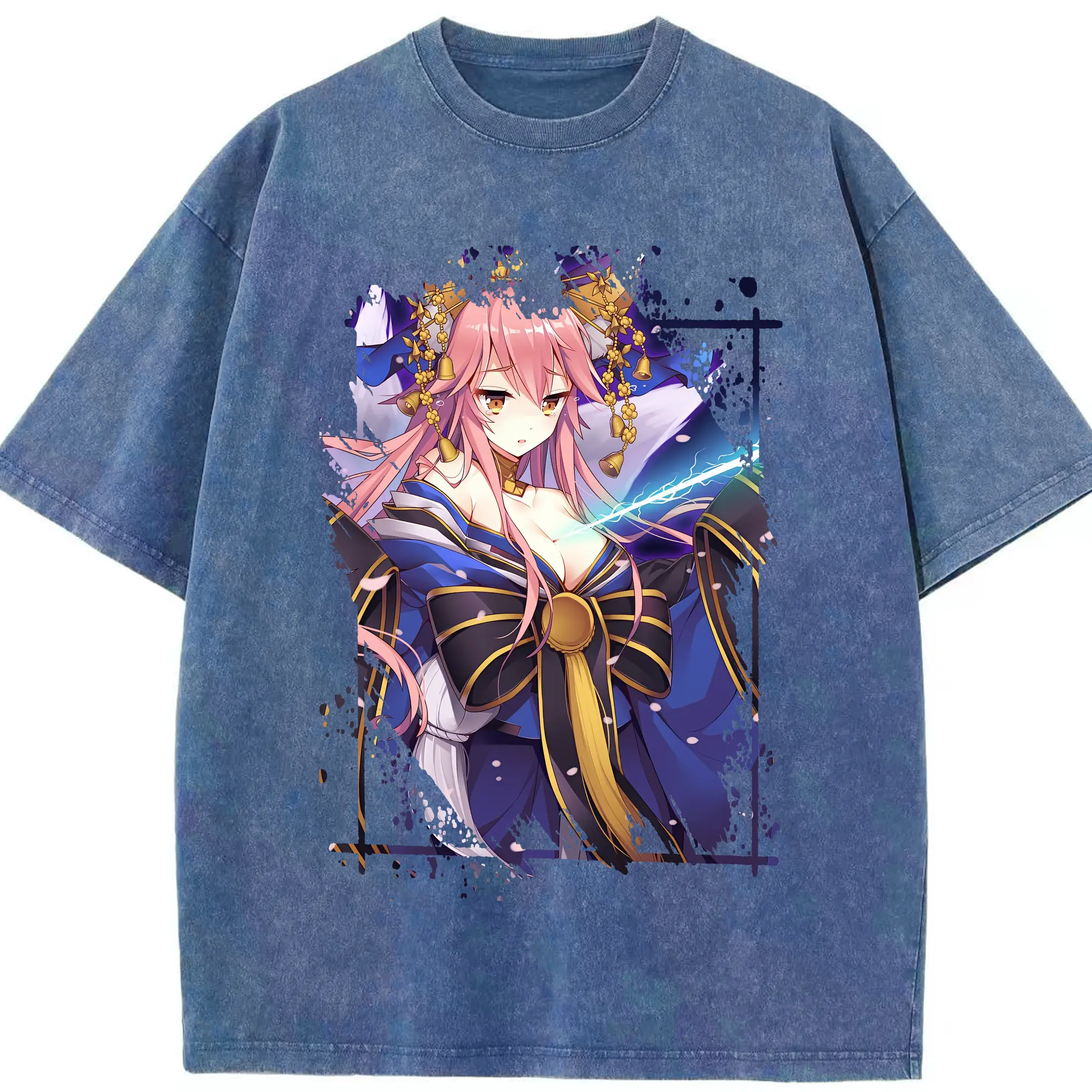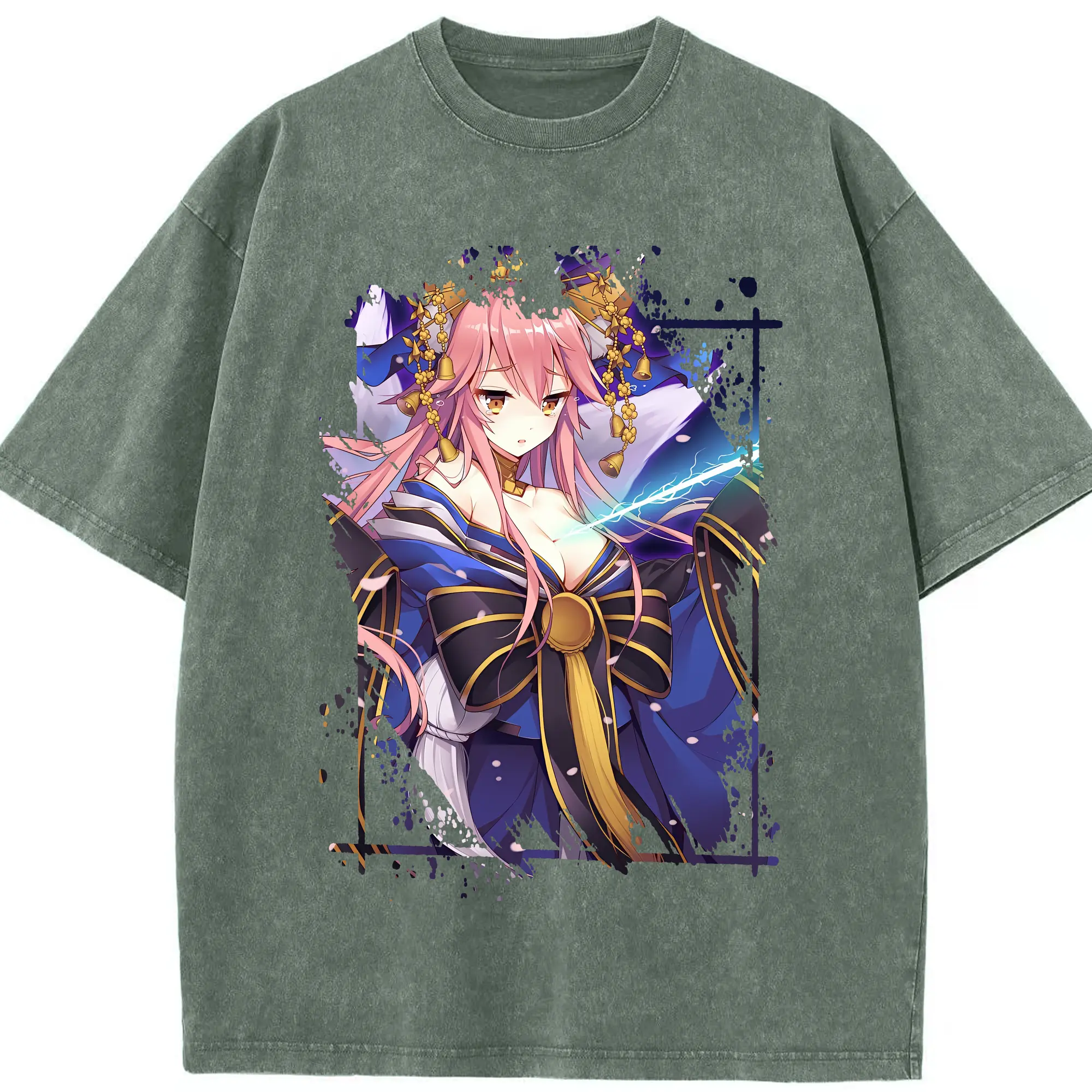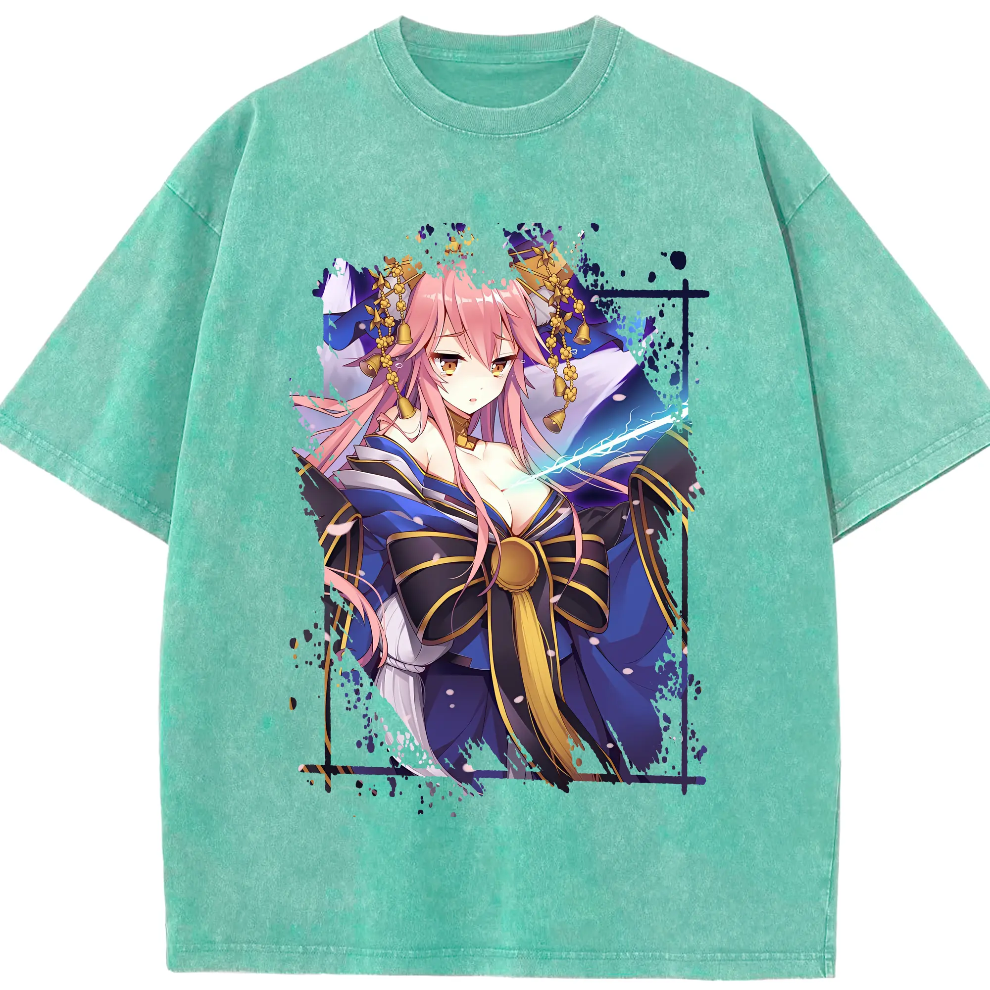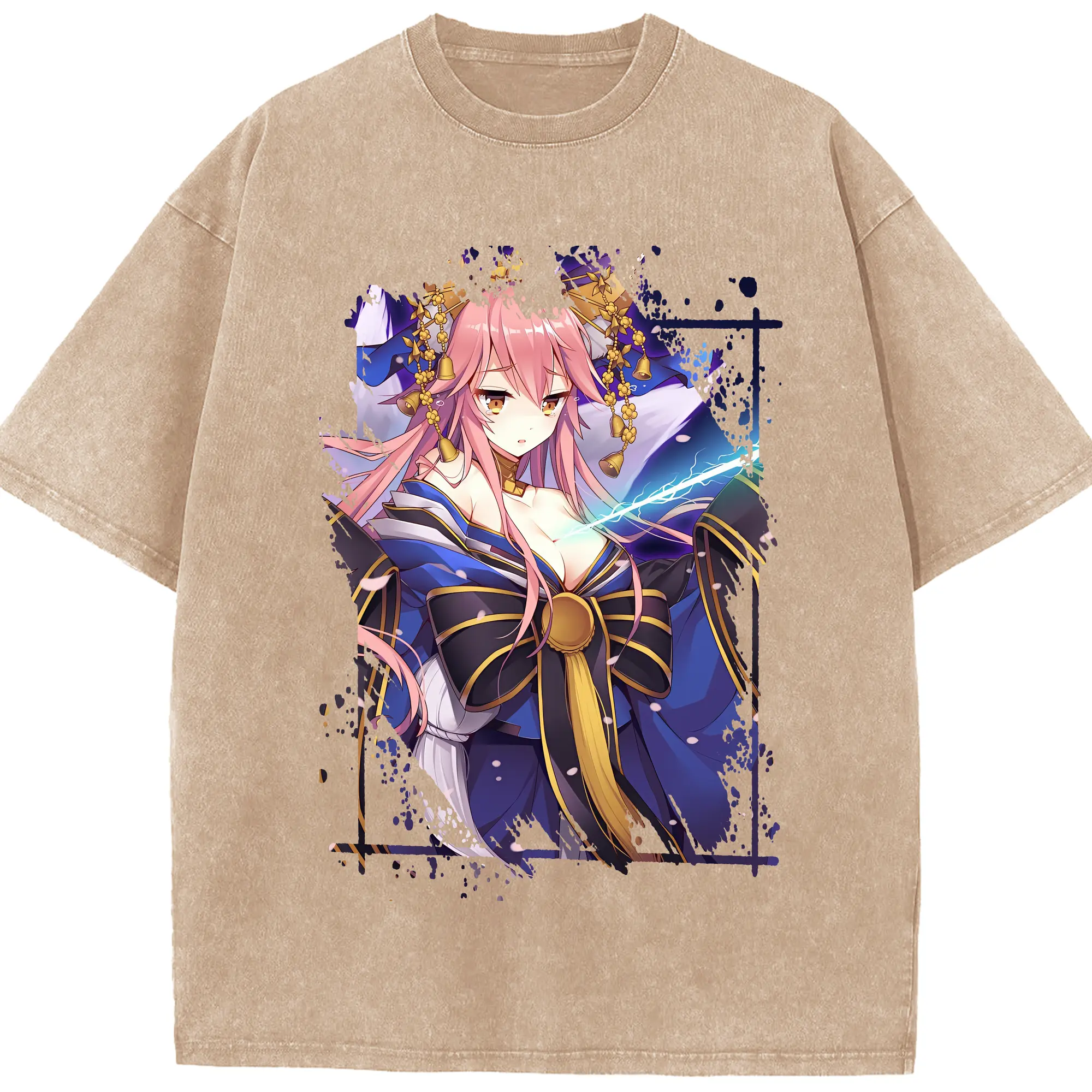 FGO グッズ,玉藻の前 - 綿100% ヴィンテージ風 半袖Tシャツ ・ 背面プリント ・ 柔らか肌触り ・ 通気性 快適 ・ スポーツ カジュアル 外出用