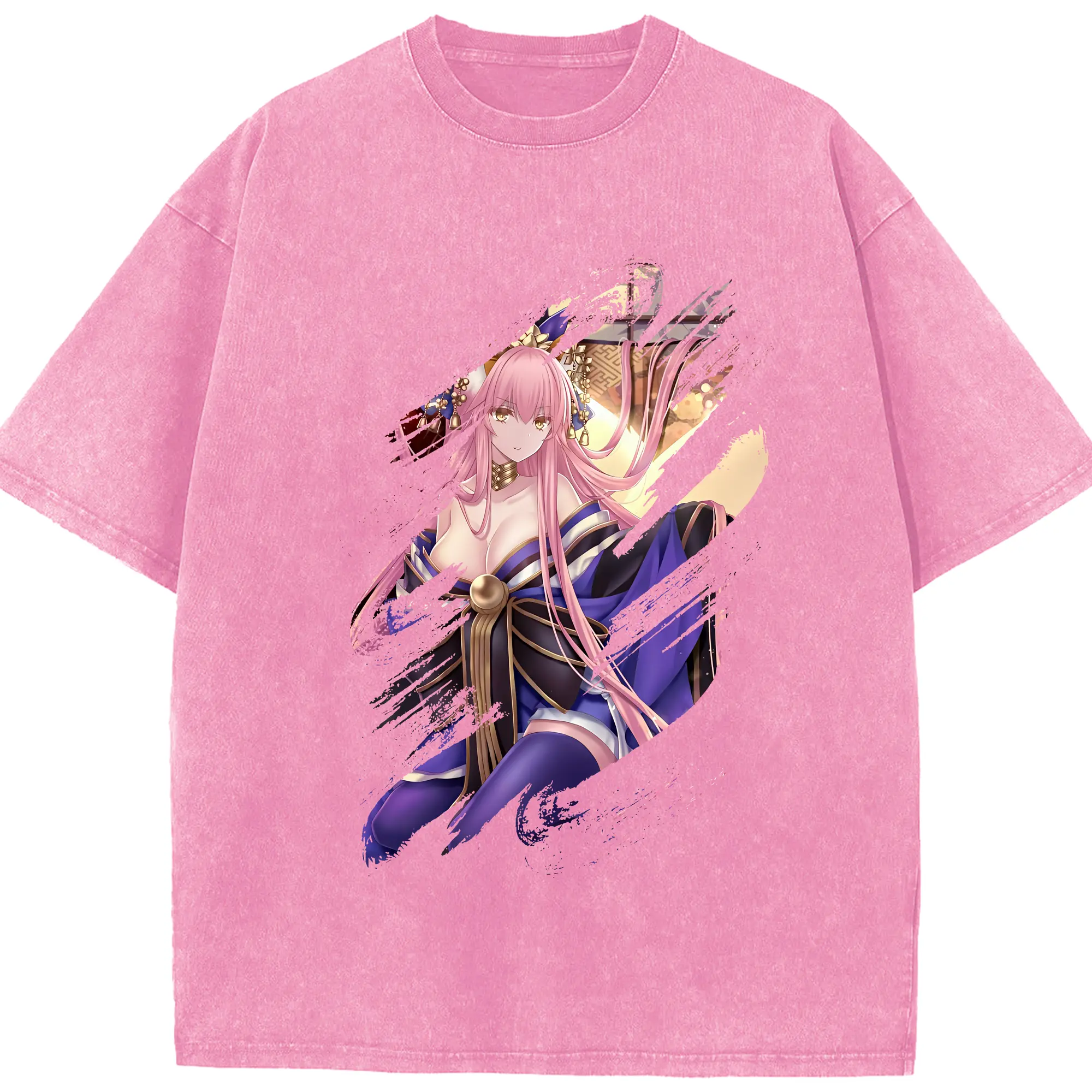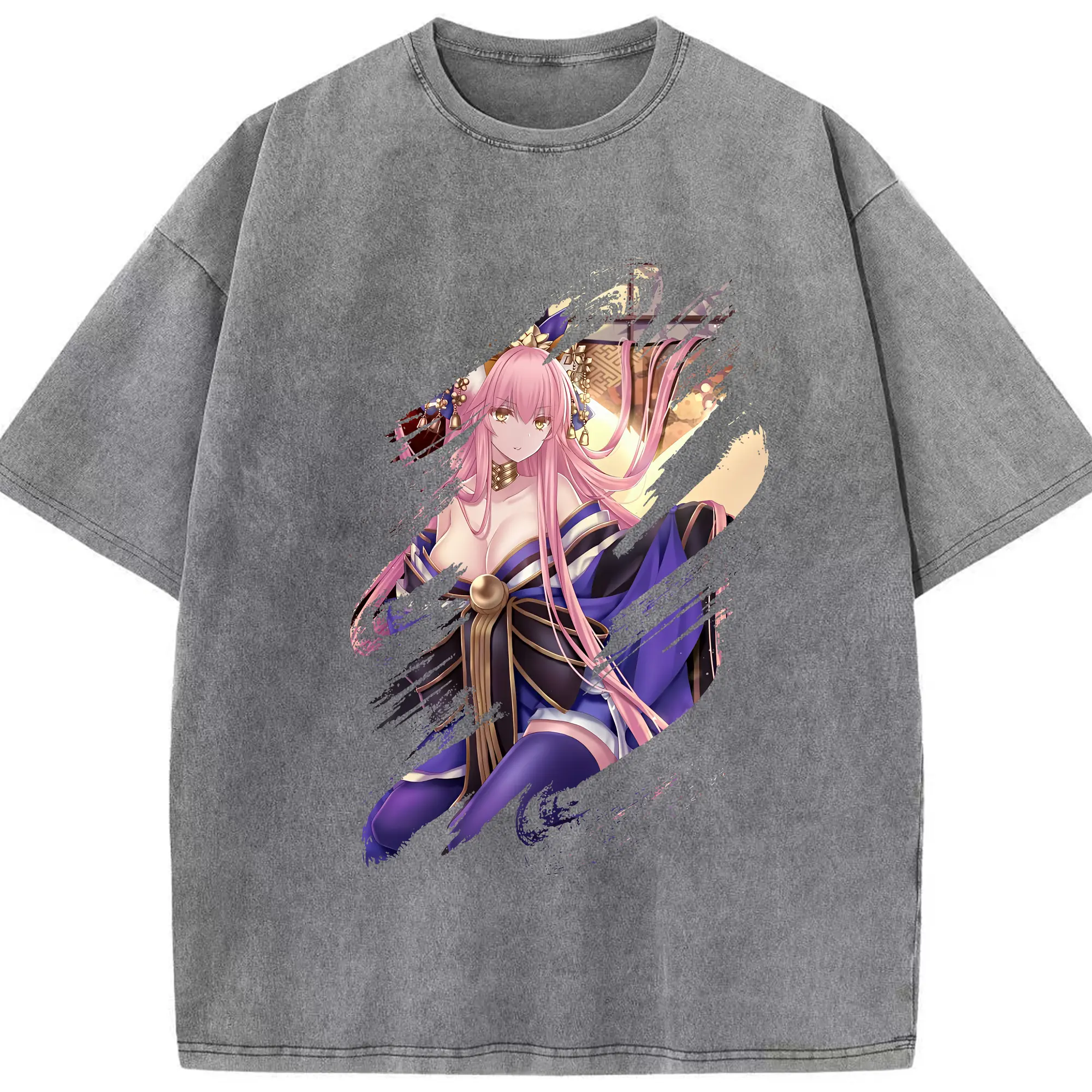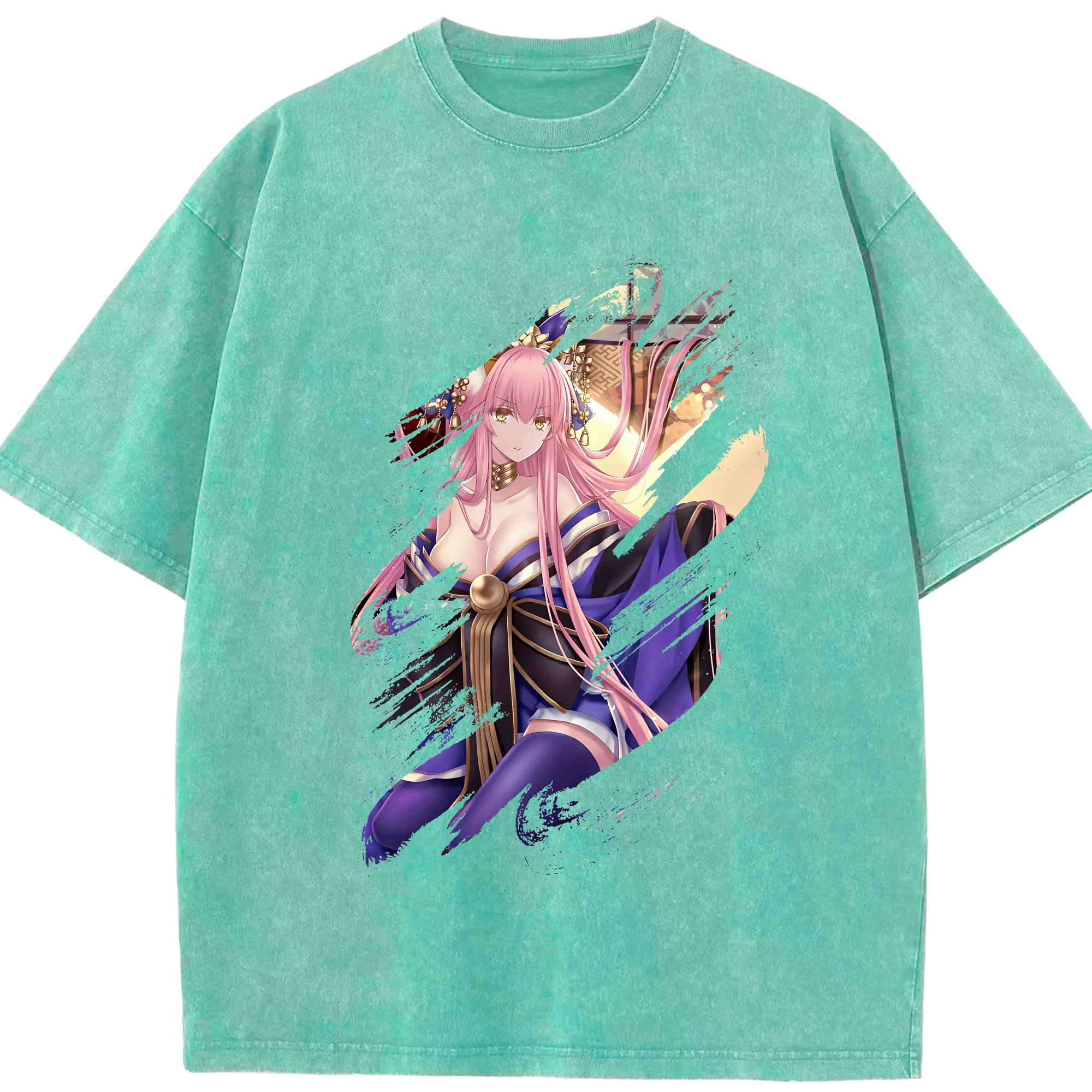 FGO グッズ,玉藻の前 - 綿100% ヴィンテージ風 半袖Tシャツ ・ 背面プリント ・ 柔らか肌触り ・ 通気性 快適 ・ スポーツ カジュアル 外出用