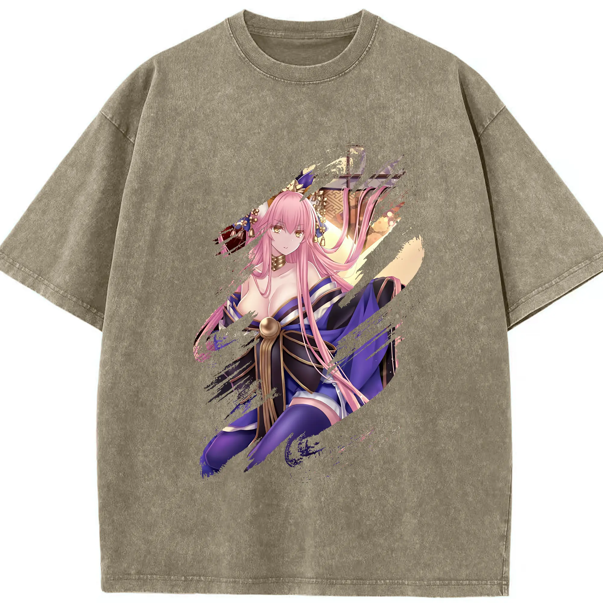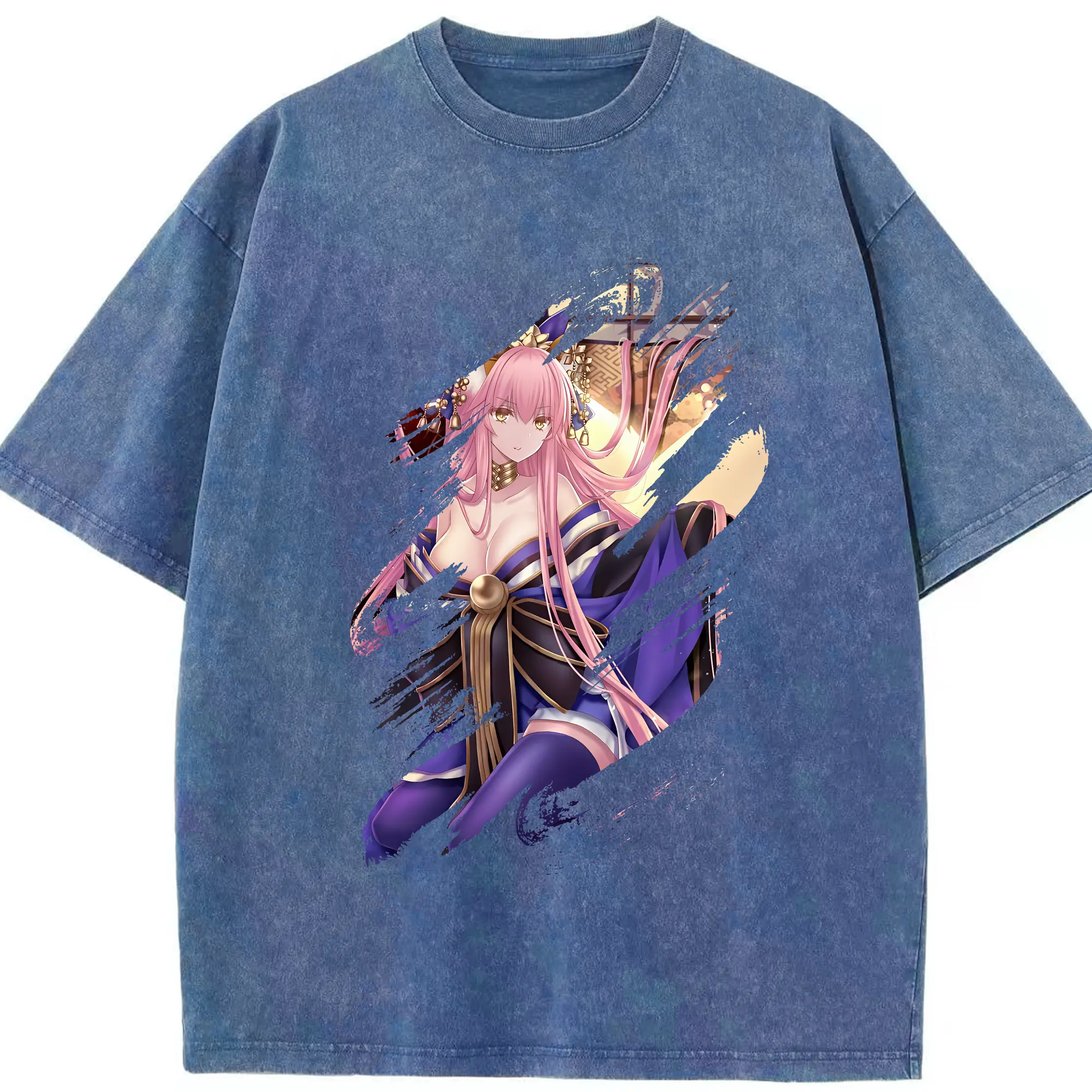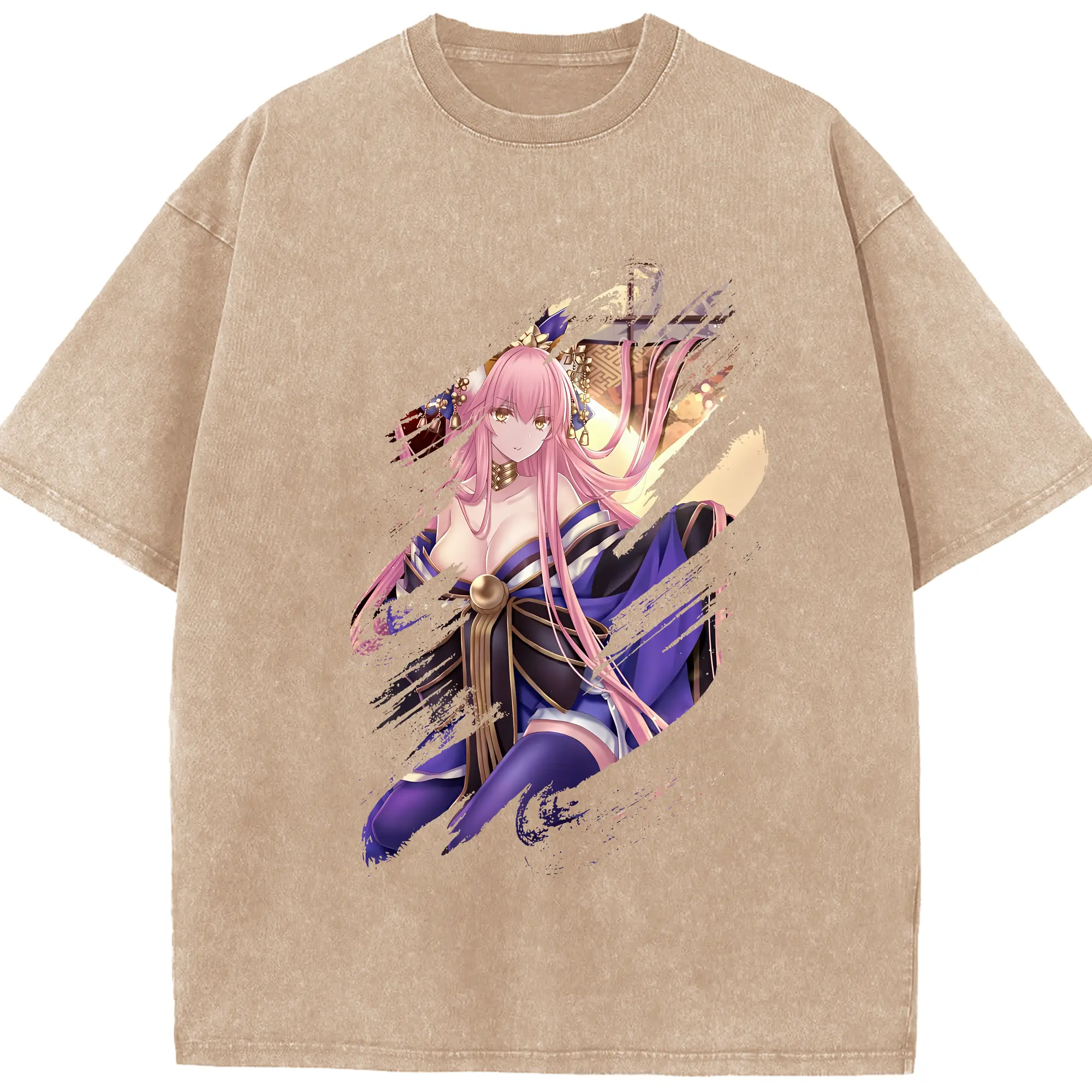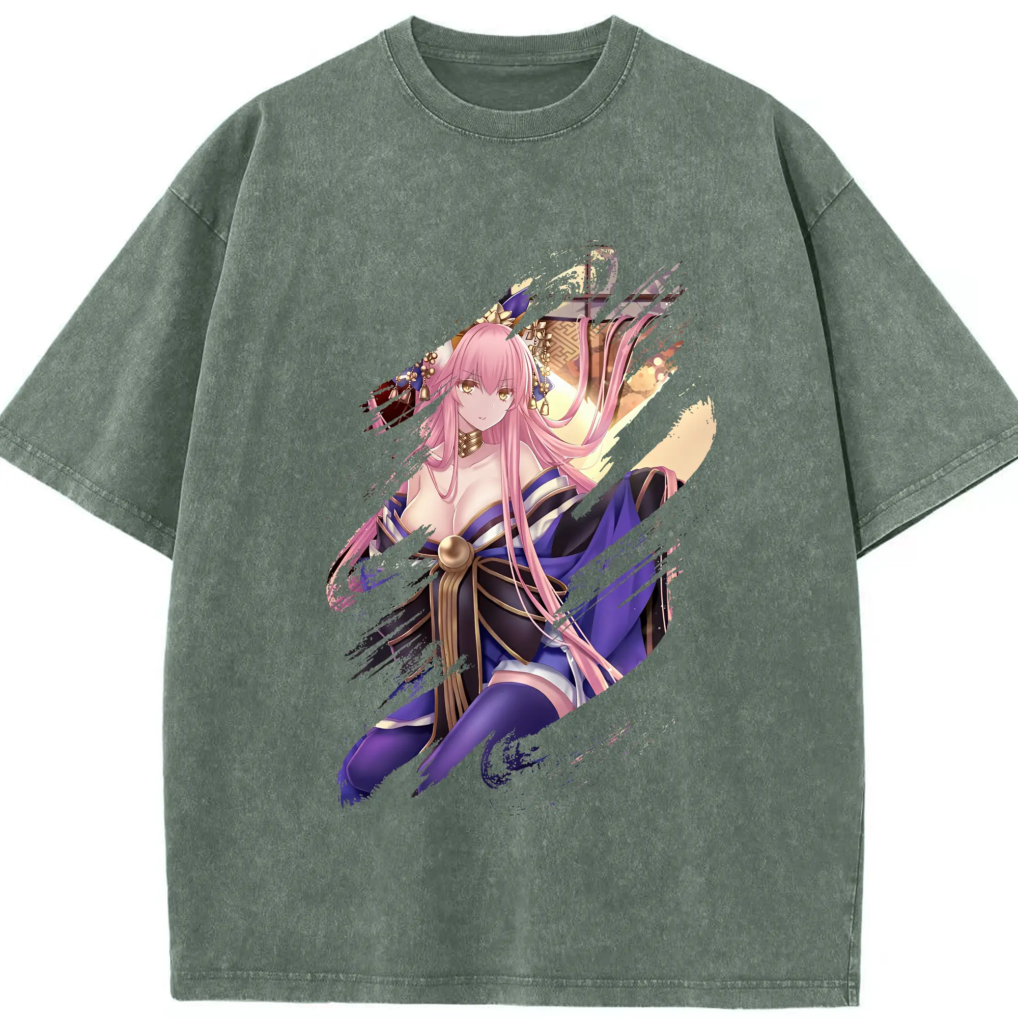 FGO グッズ,玉藻の前 - 綿100% ヴィンテージ風 半袖Tシャツ ・ 背面プリント ・ 柔らか肌触り ・ 通気性 快適 ・ スポーツ カジュアル 外出用