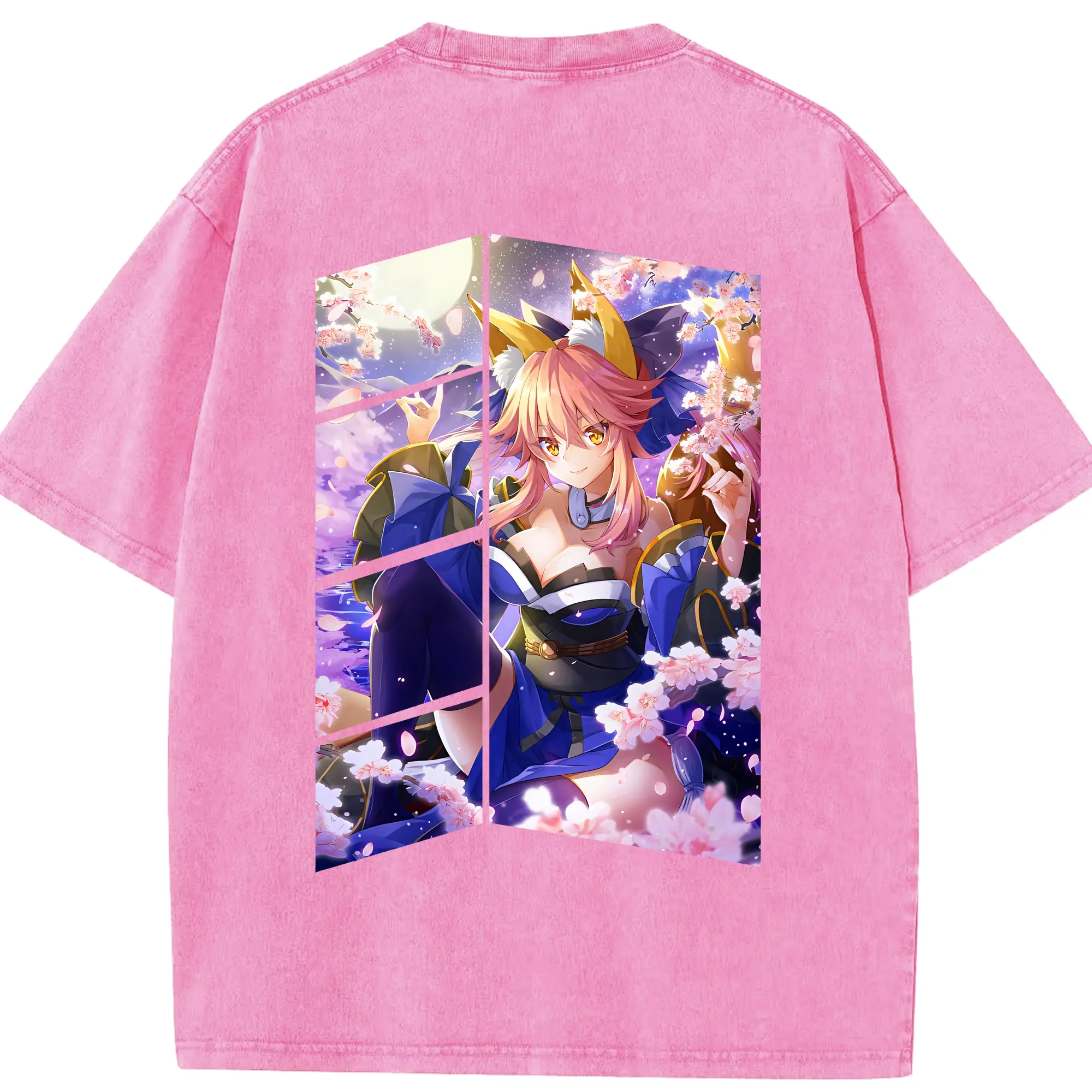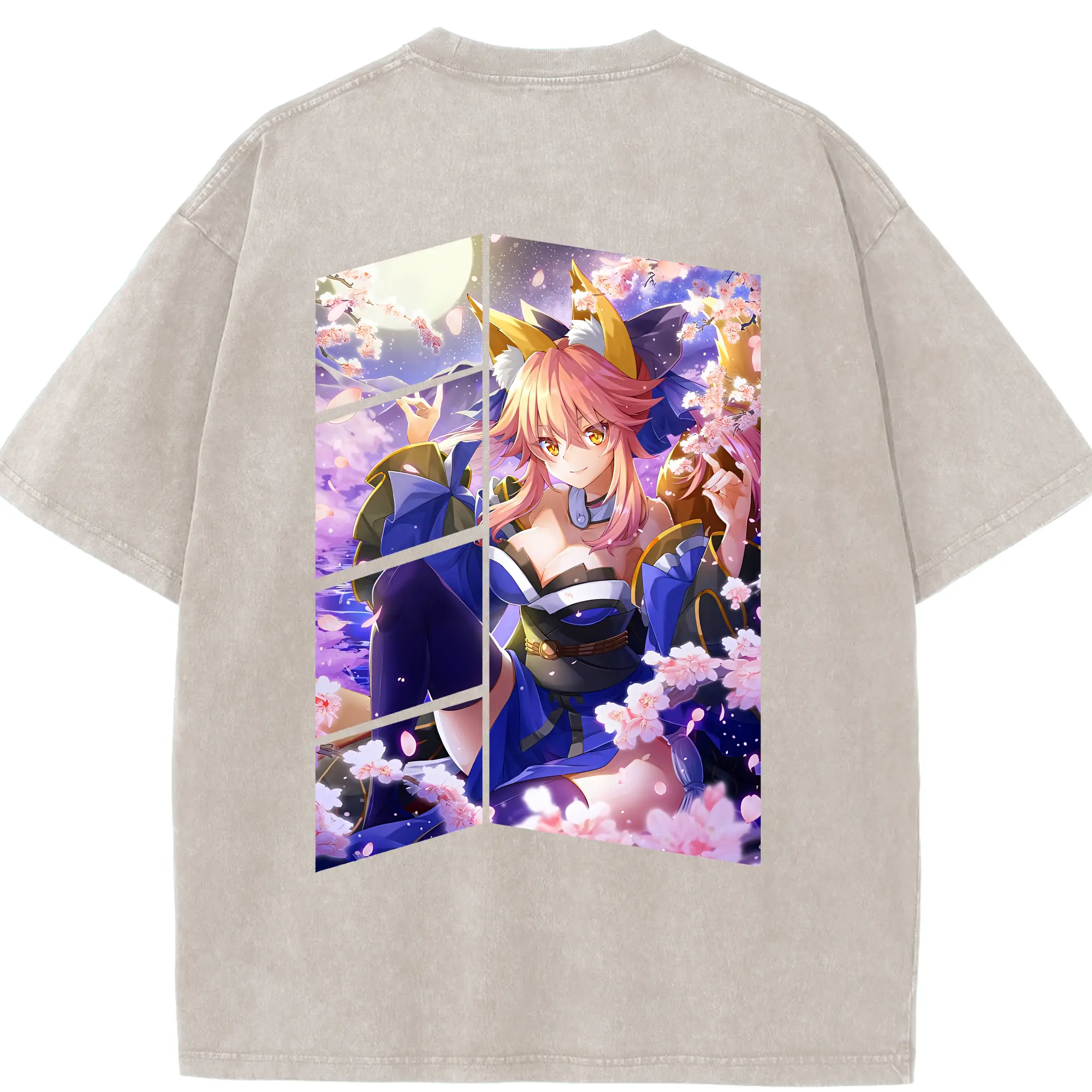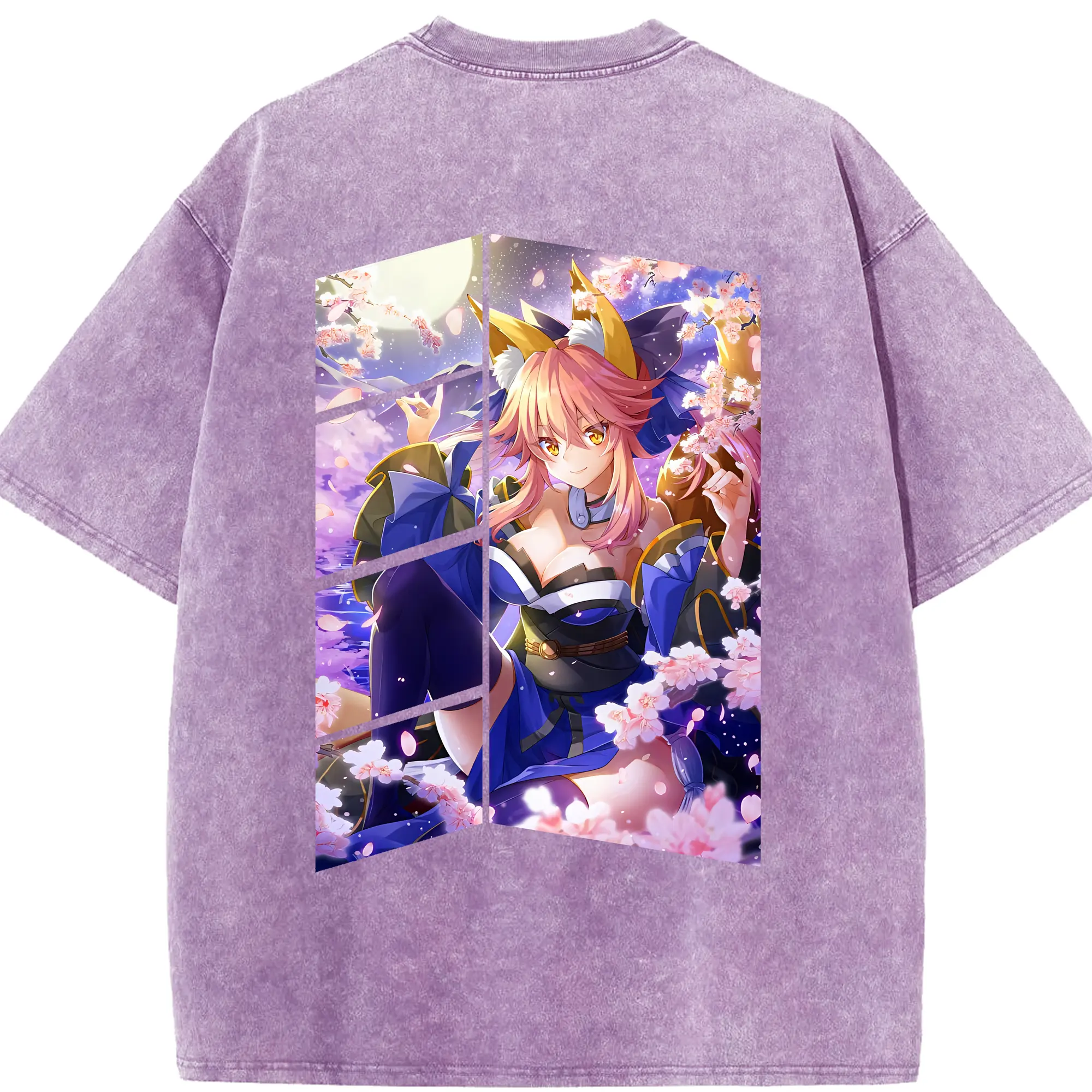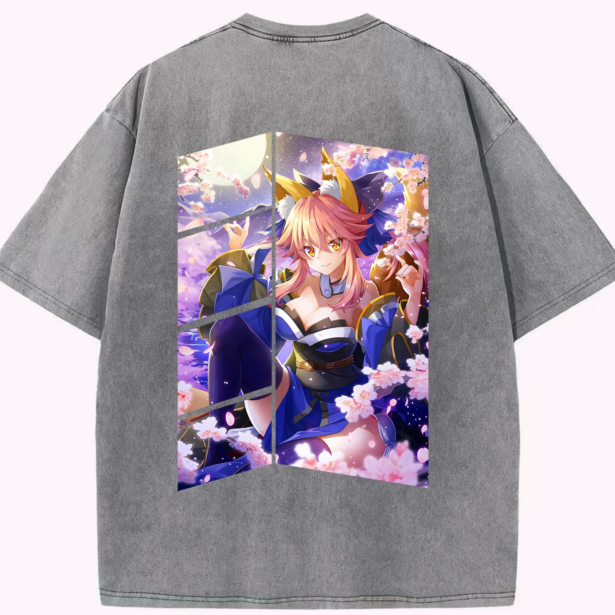 FGO グッズ,玉藻の前 - 綿100% ヴィンテージ風 半袖Tシャツ ・ フロントプリント ・ 柔らか肌触り ・ 通気性 快適 ・ スポーツ カジュアル 外出用