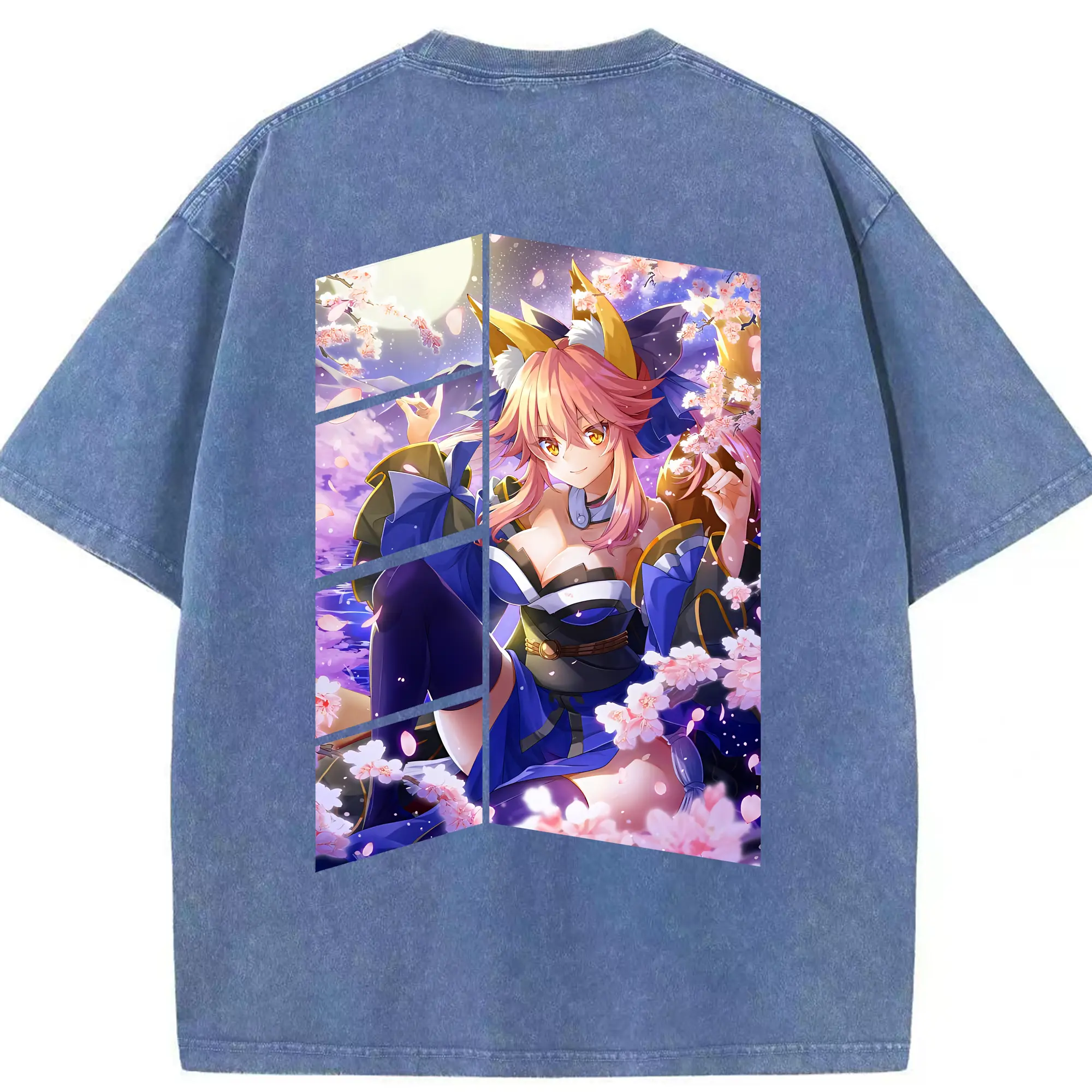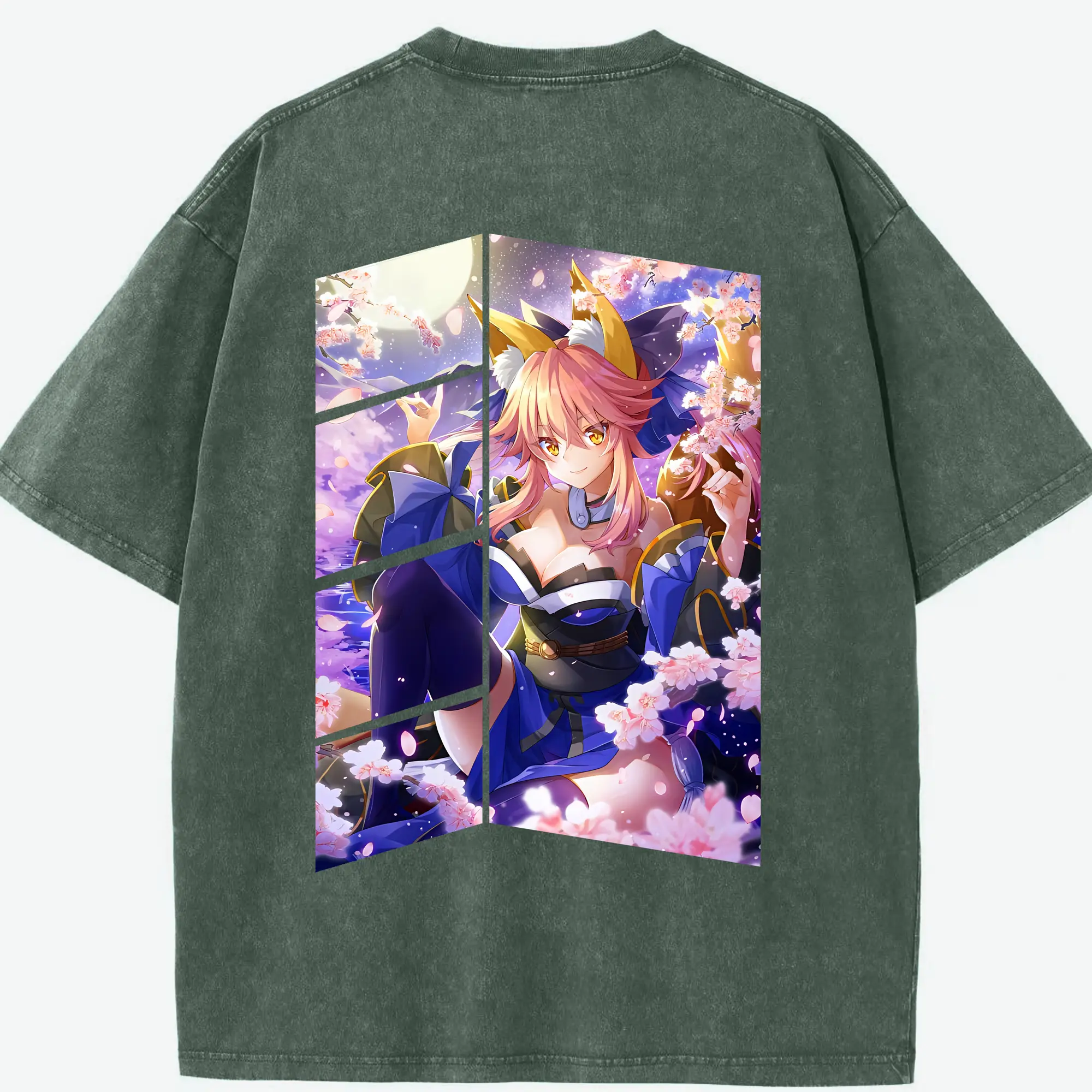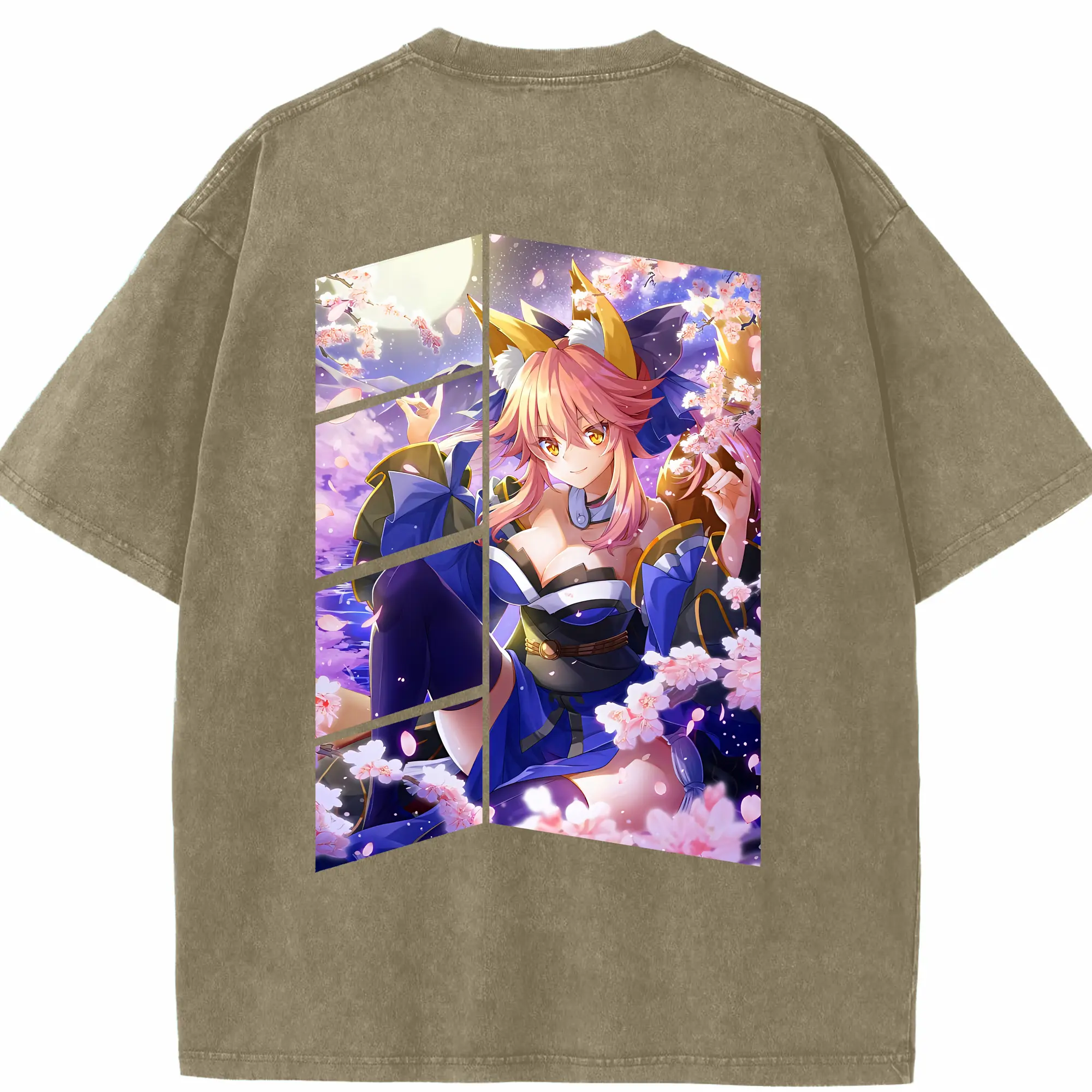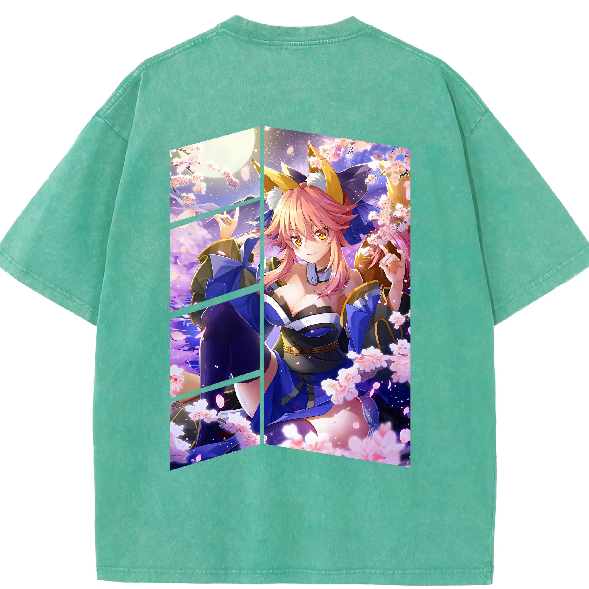 FGO グッズ,玉藻の前 - 綿100% ヴィンテージ風 半袖Tシャツ ・ フロントプリント ・ 柔らか肌触り ・ 通気性 快適 ・ スポーツ カジュアル 外出用