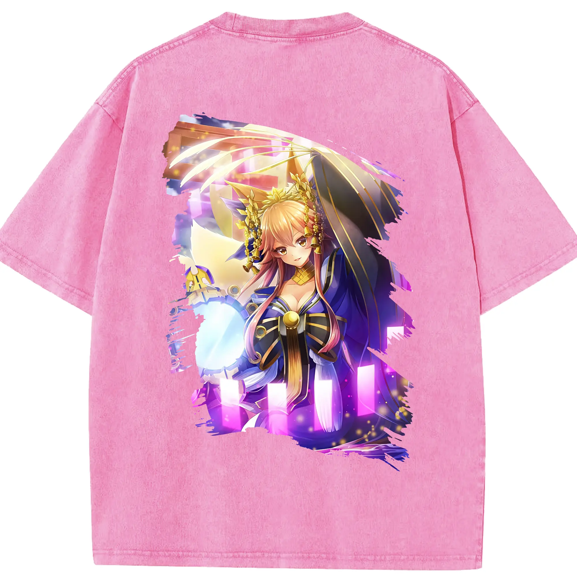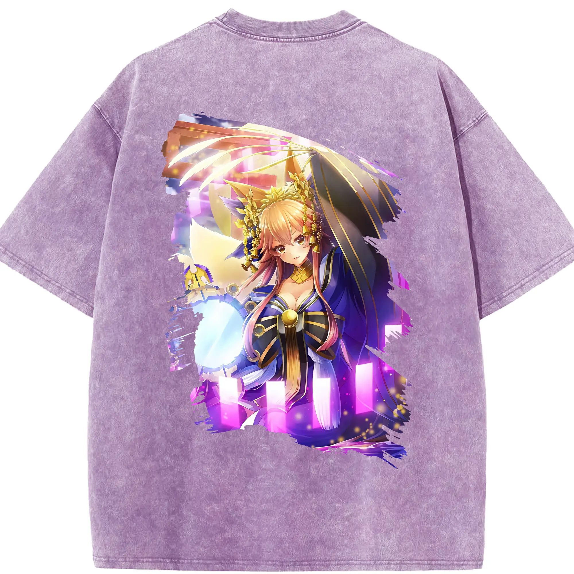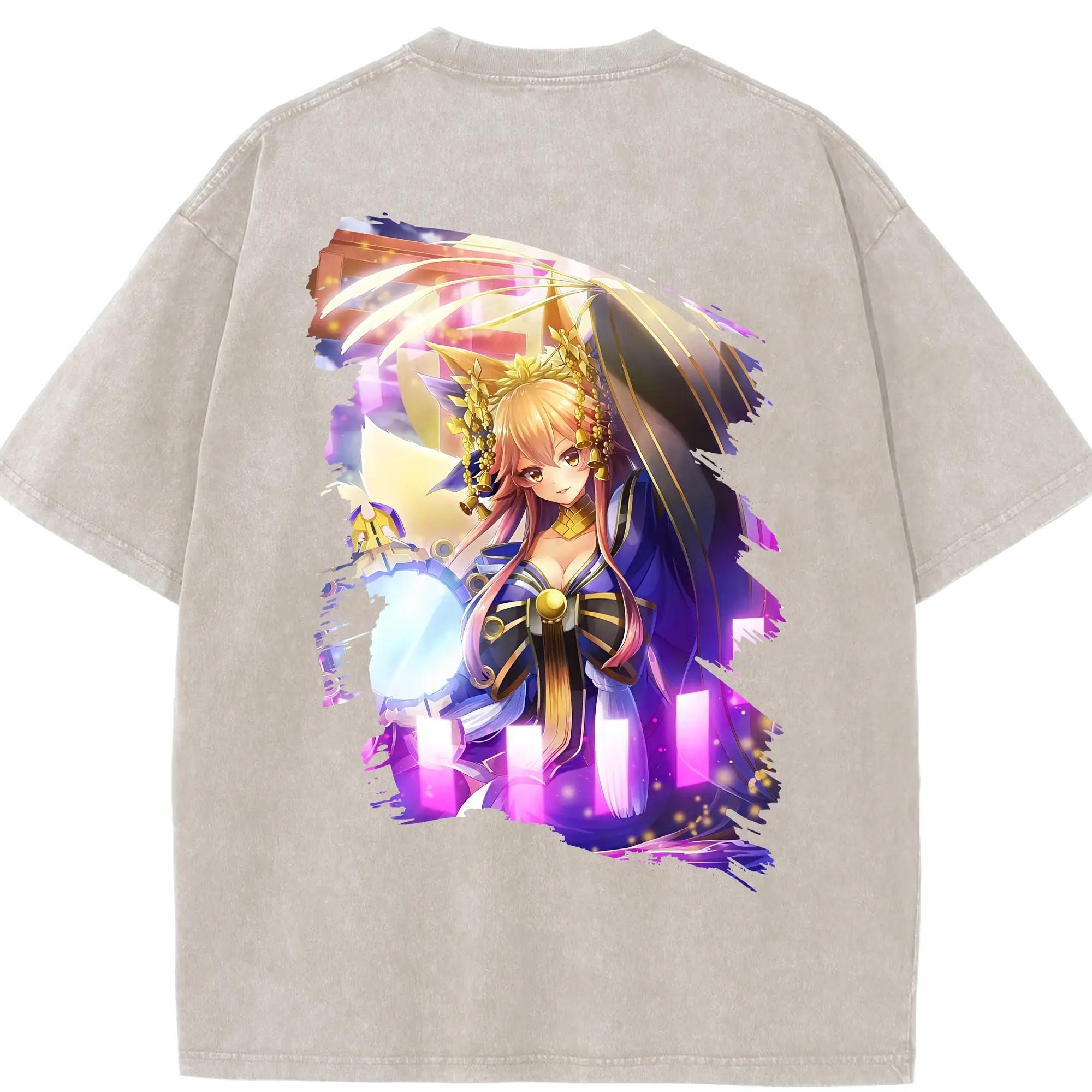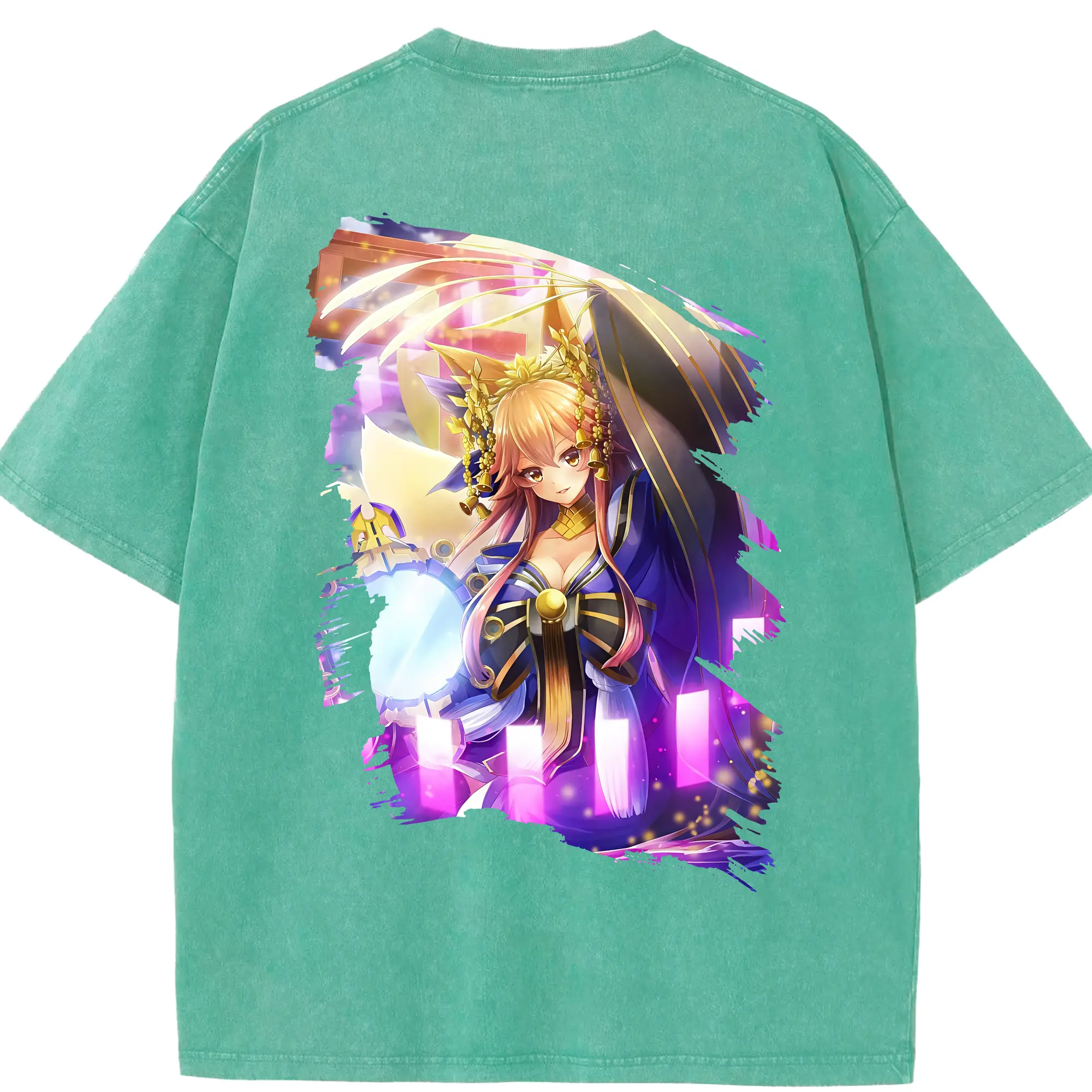 FGO グッズ,玉藻の前 - 綿100% ヴィンテージ風 半袖Tシャツ ・ フロントプリント ・ 柔らか肌触り ・ 通気性 快適 ・ スポーツ カジュアル 外出用