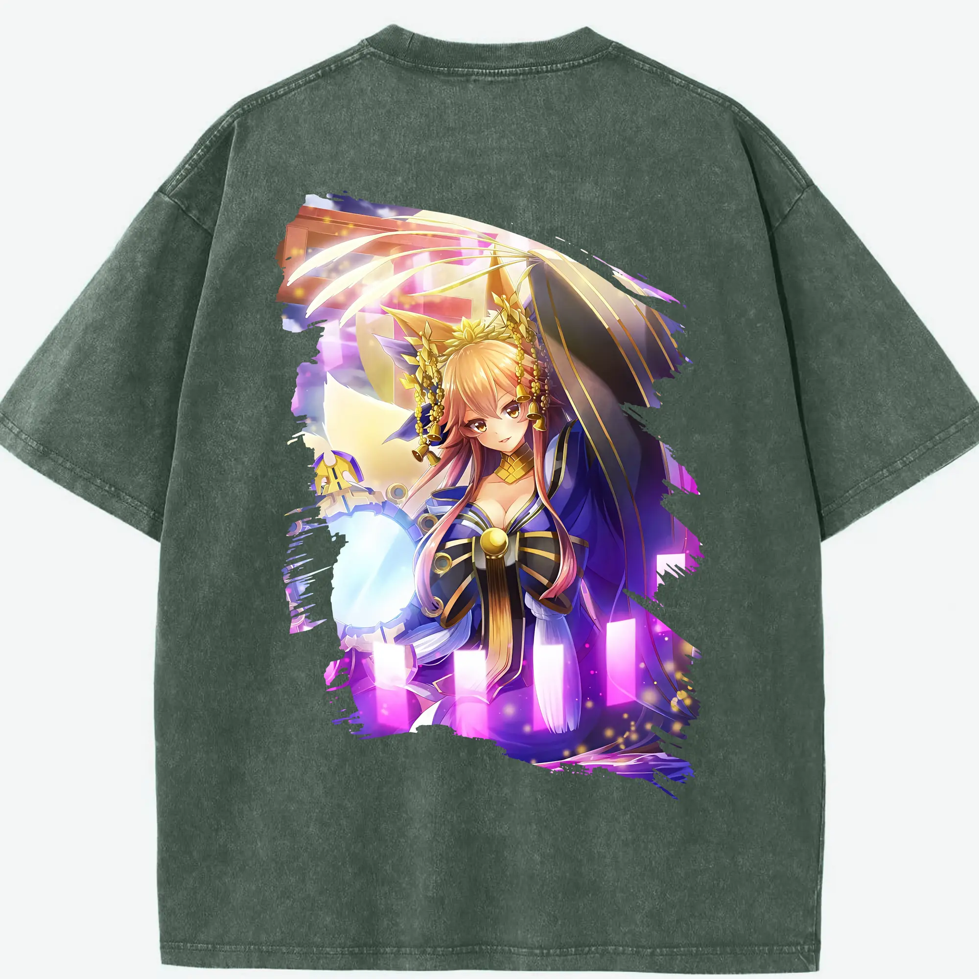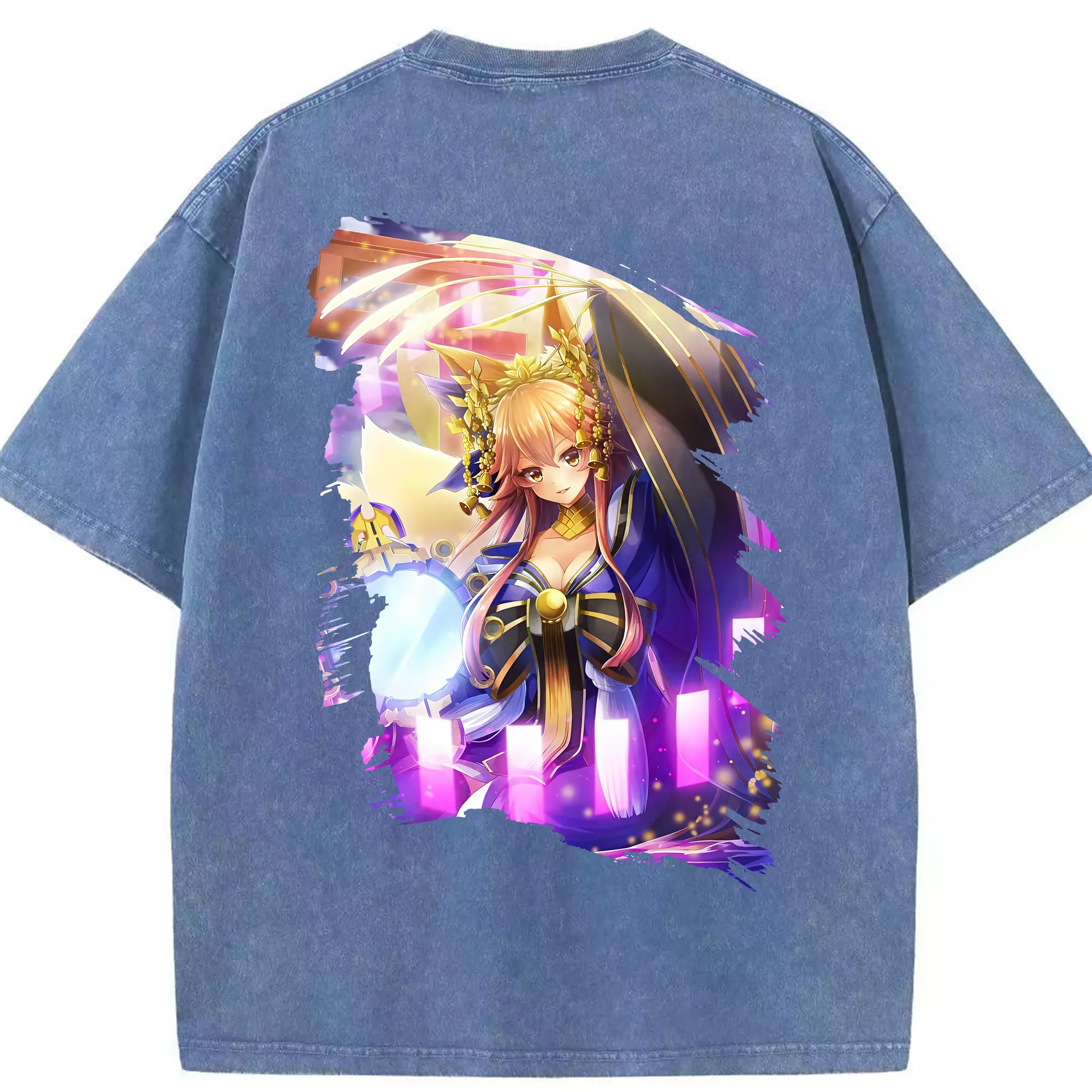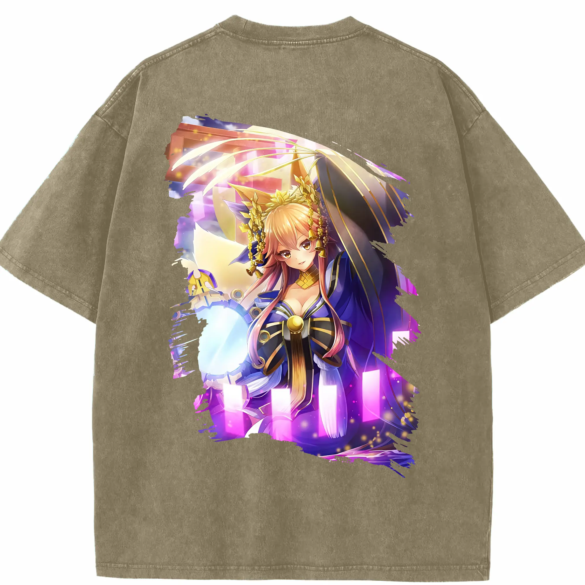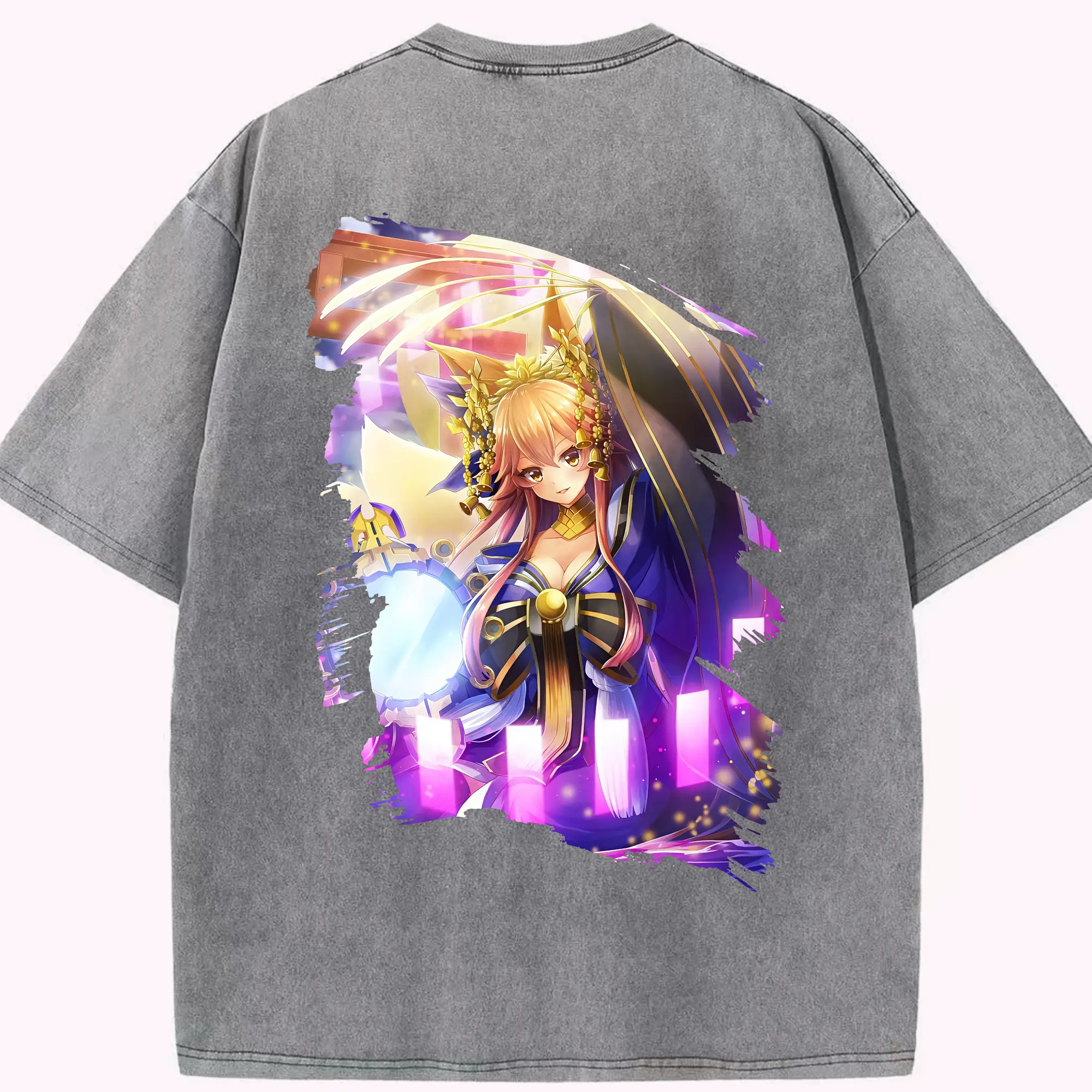 FGO グッズ,玉藻の前 - 綿100% ヴィンテージ風 半袖Tシャツ ・ フロントプリント ・ 柔らか肌触り ・ 通気性 快適 ・ スポーツ カジュアル 外出用