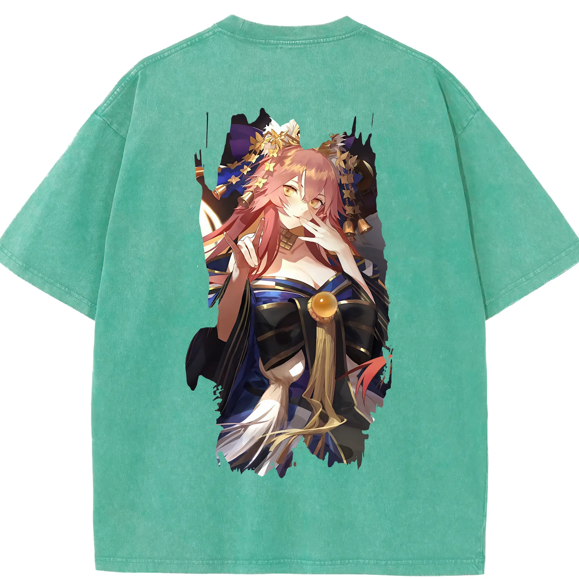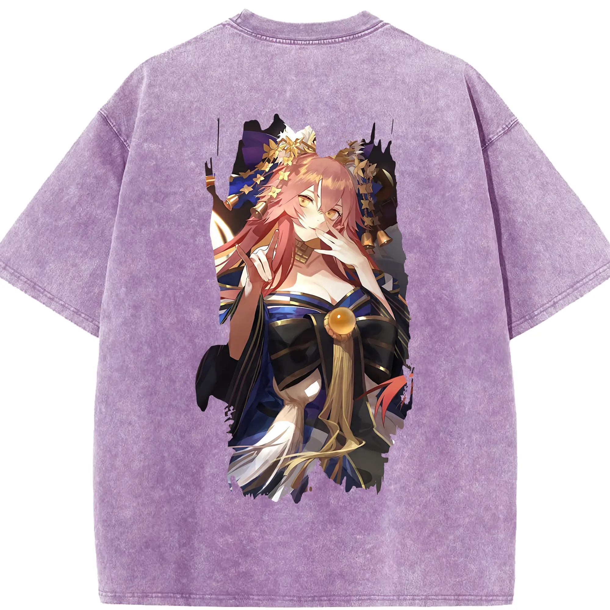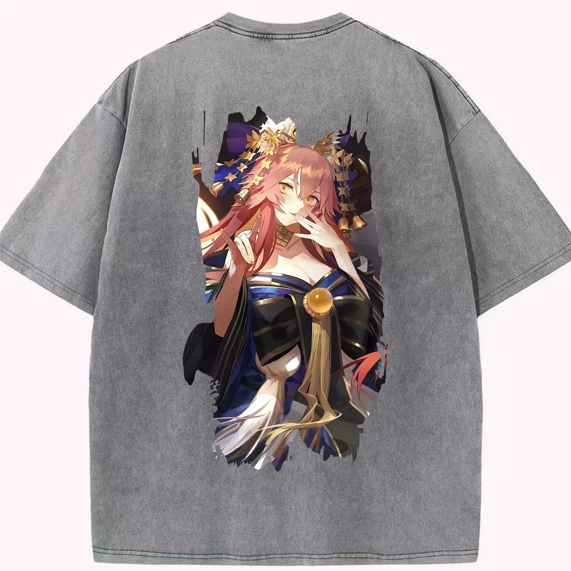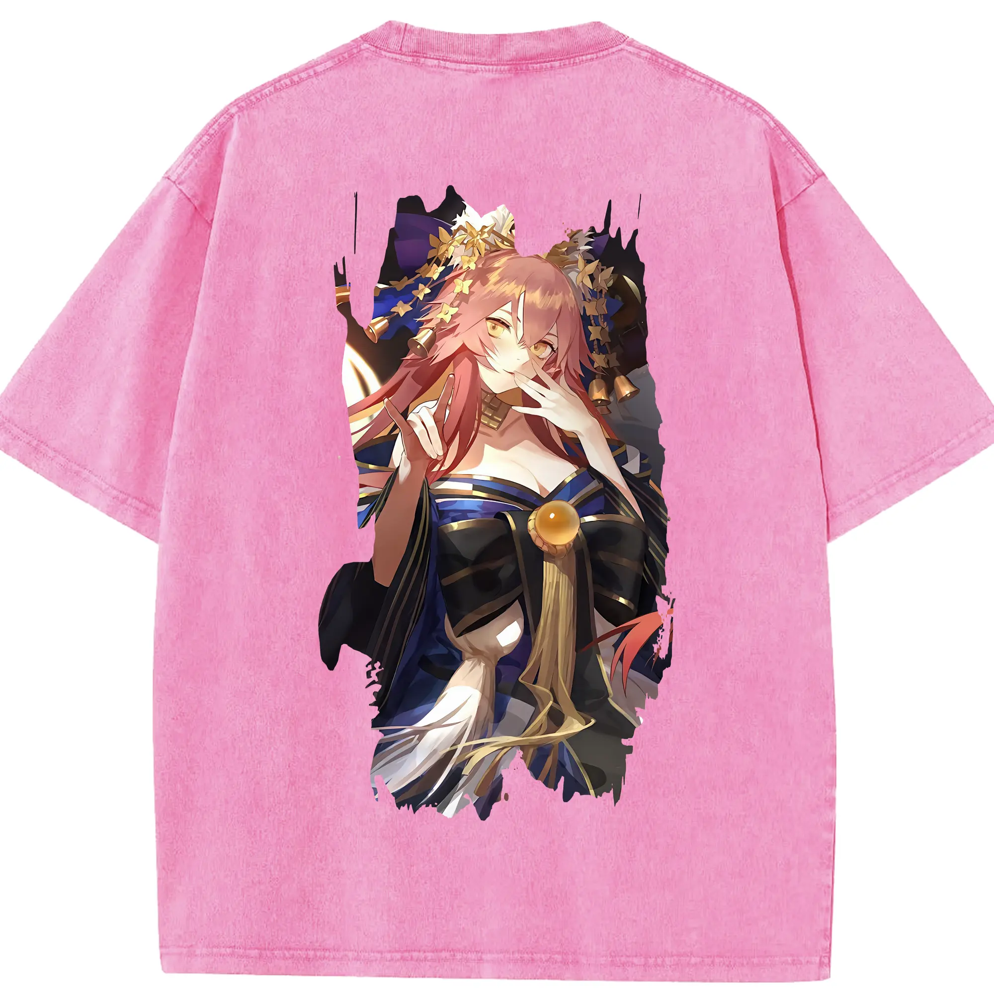 FGO グッズ,玉藻の前 - 綿100% ヴィンテージ風 半袖Tシャツ ・ フロントプリント ・ 柔らか肌触り ・ 通気性 快適 ・ スポーツ カジュアル 外出用