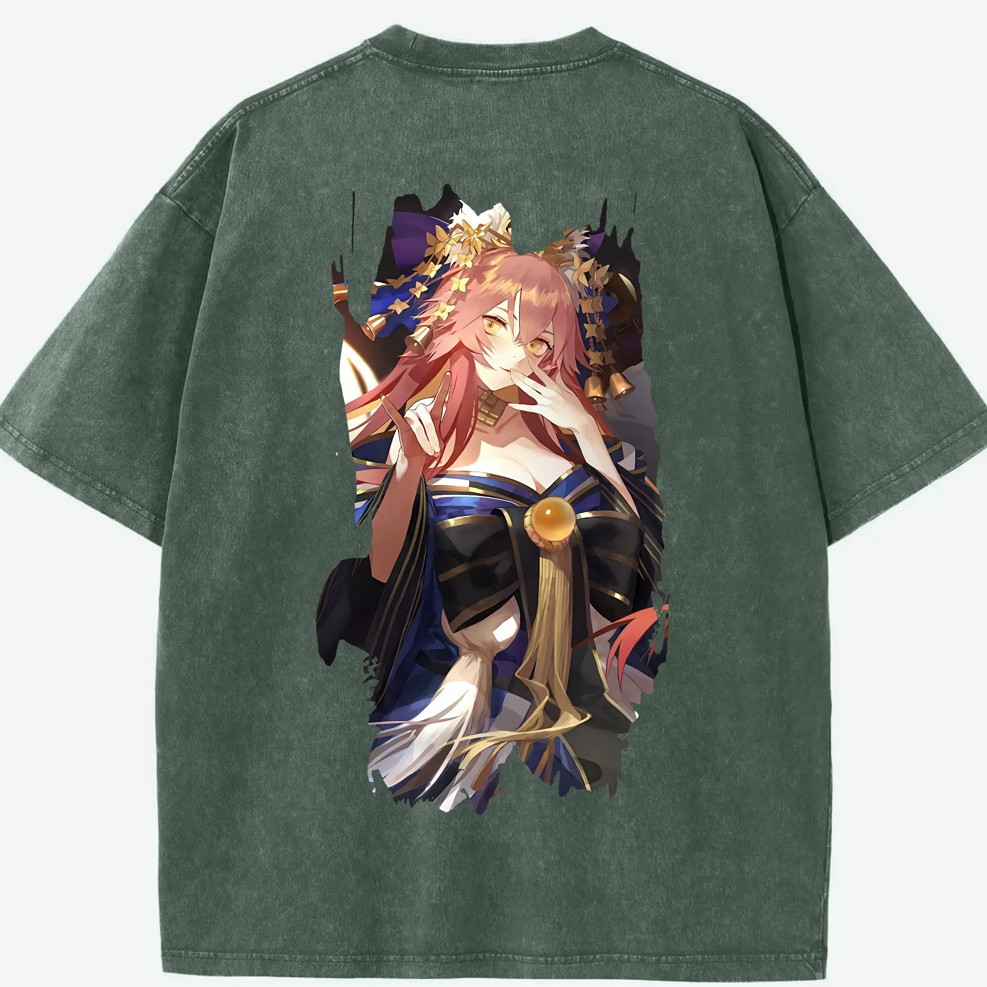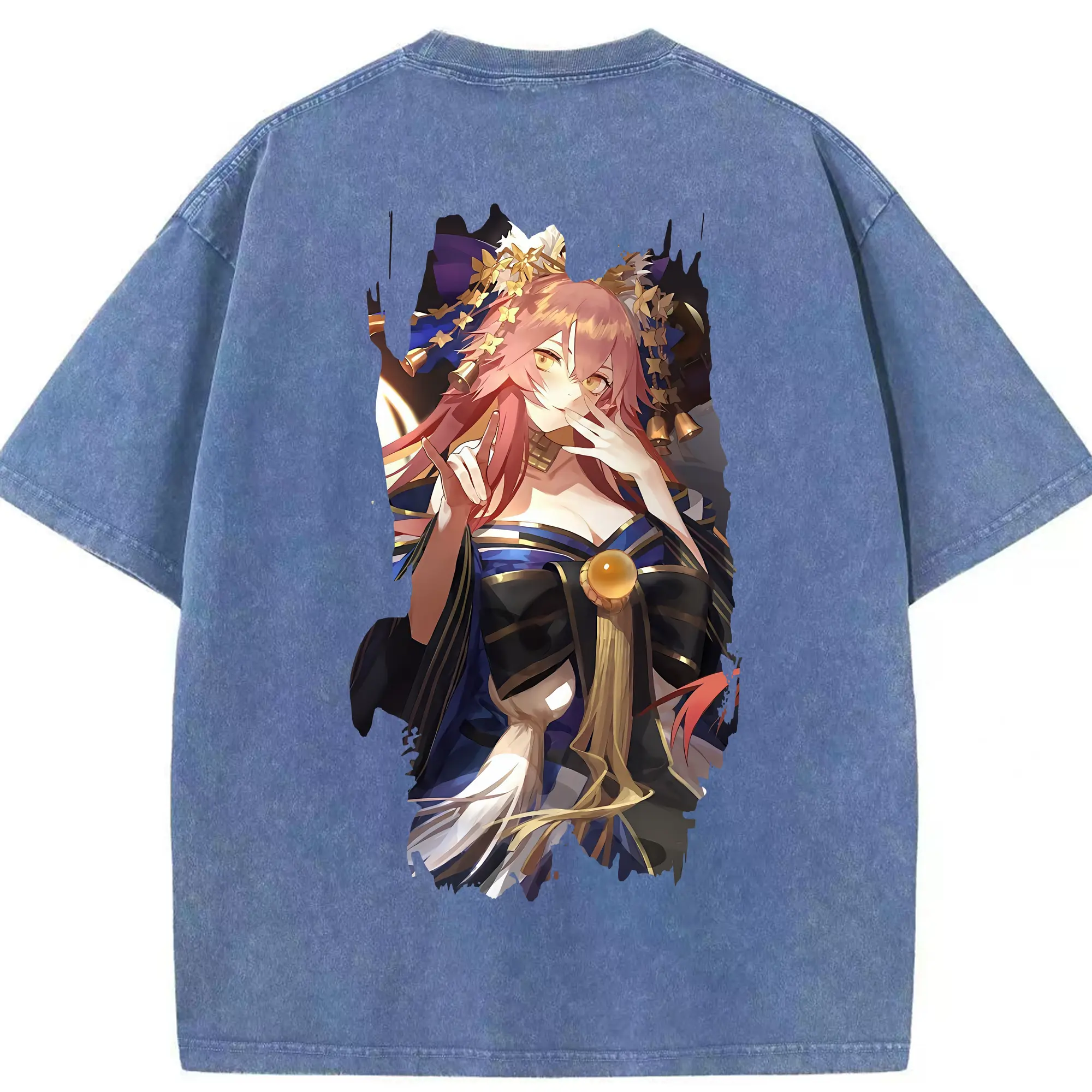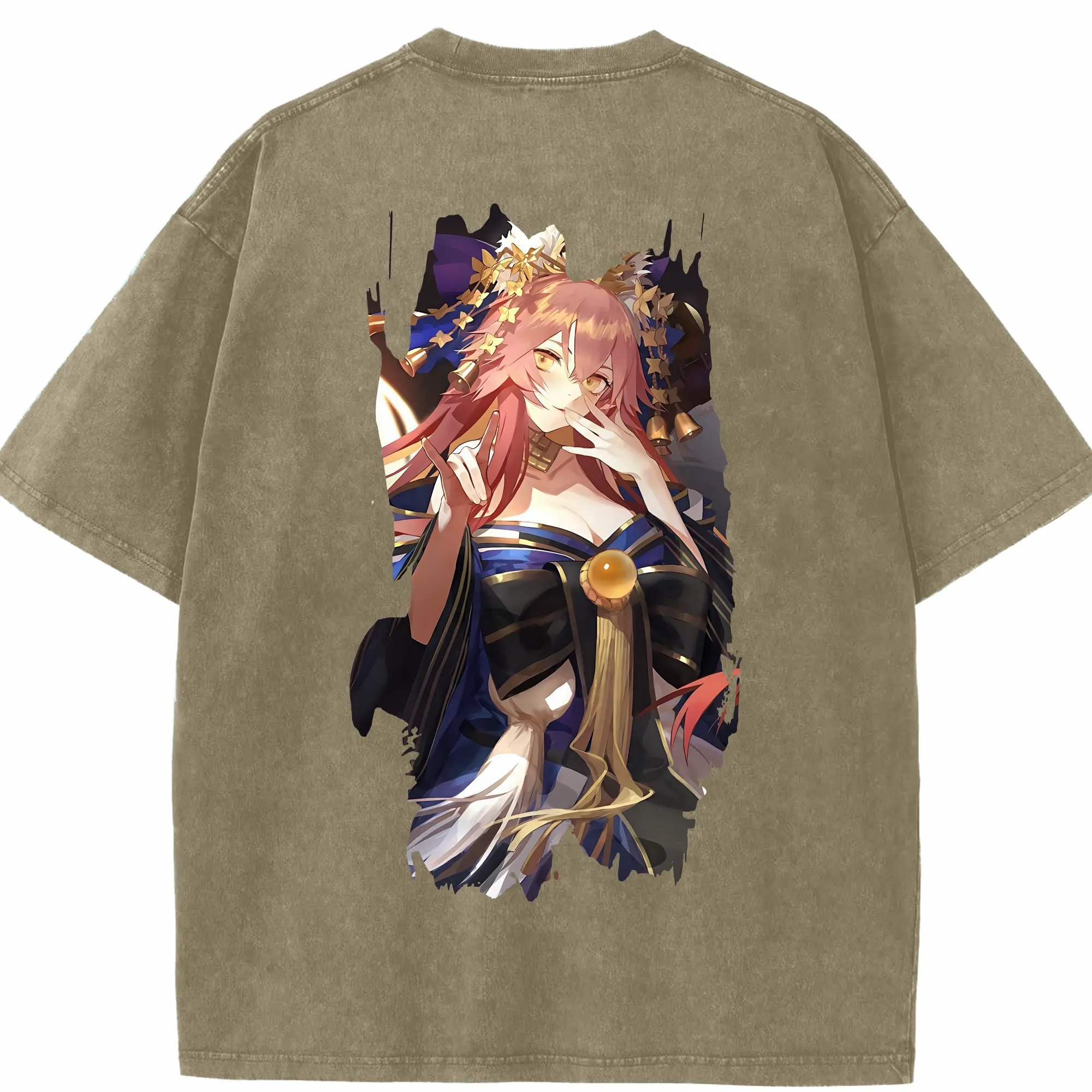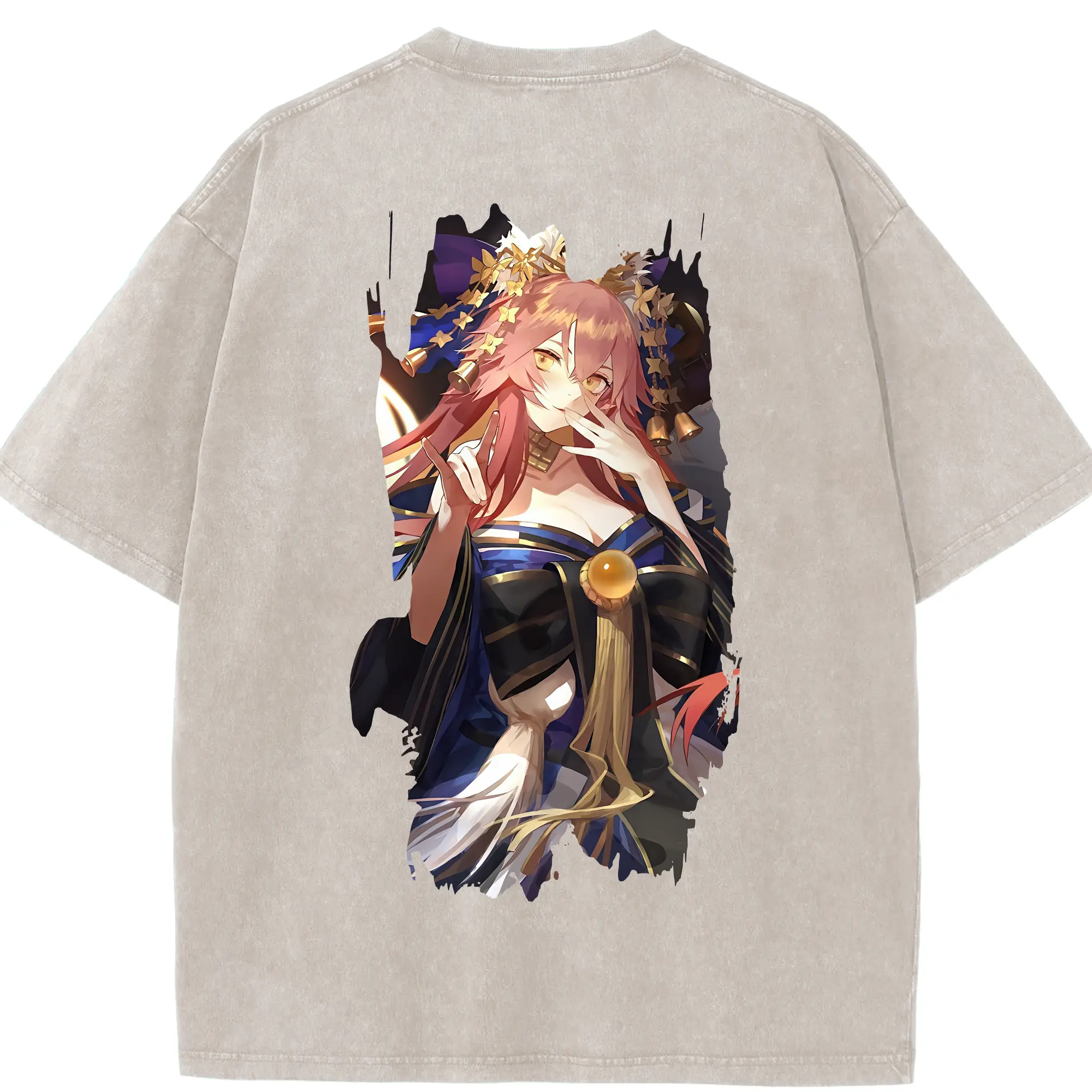 FGO グッズ,玉藻の前 - 綿100% ヴィンテージ風 半袖Tシャツ ・ フロントプリント ・ 柔らか肌触り ・ 通気性 快適 ・ スポーツ カジュアル 外出用