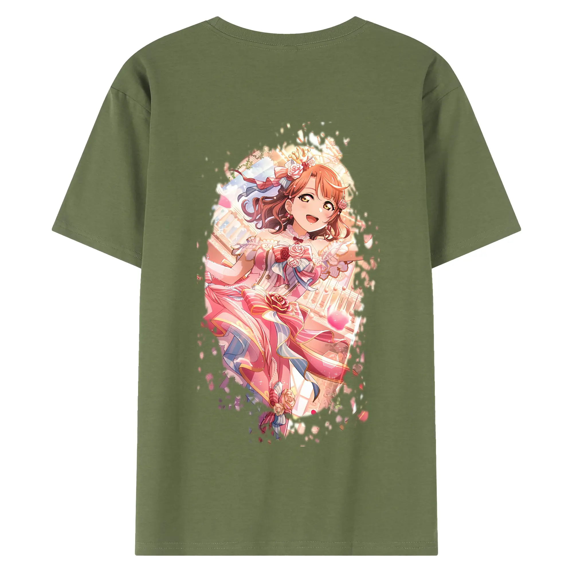 Love Live! グッズ,上原歩夢 - 綿100% ヴィンテージ風 半袖Tシャツ ・ 背面プリント ・ 柔らか肌触り ・ 通気性 快適 ・ スポーツ カジュアル 外出用