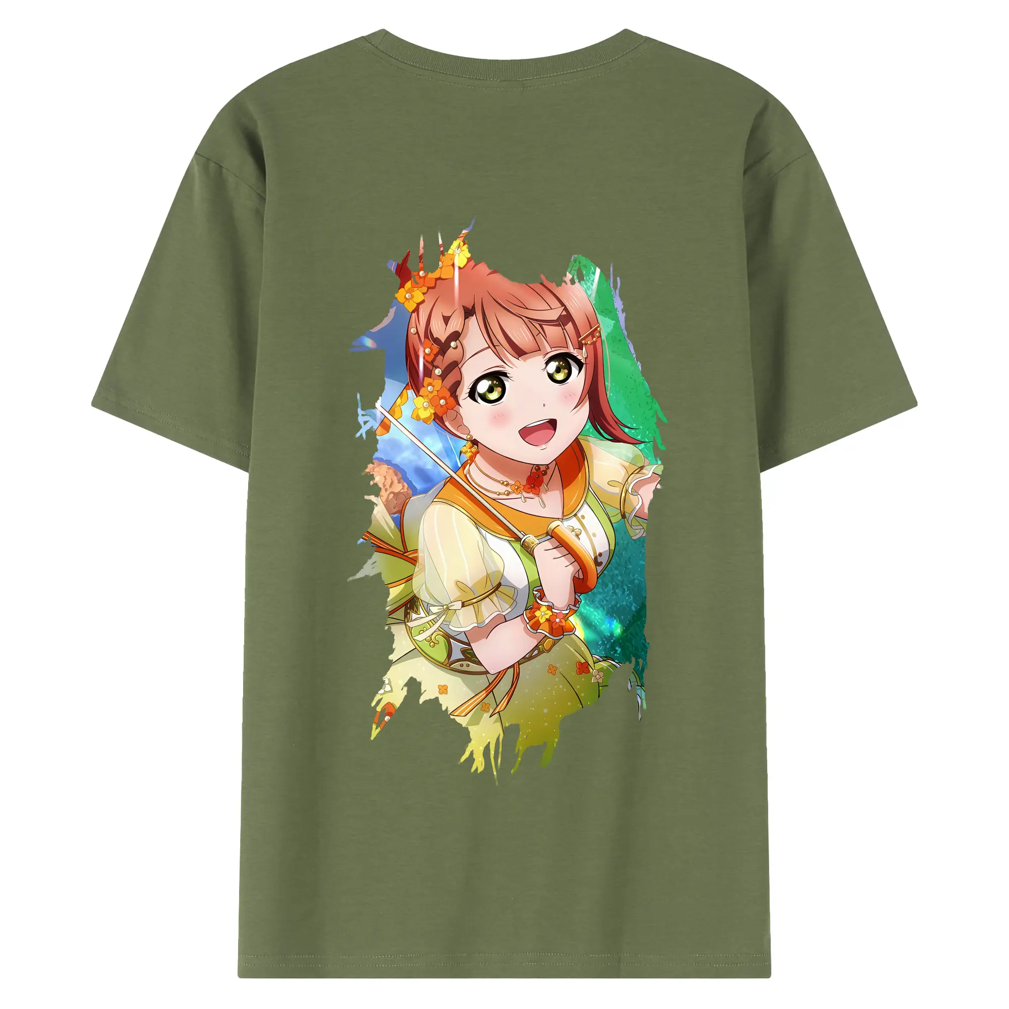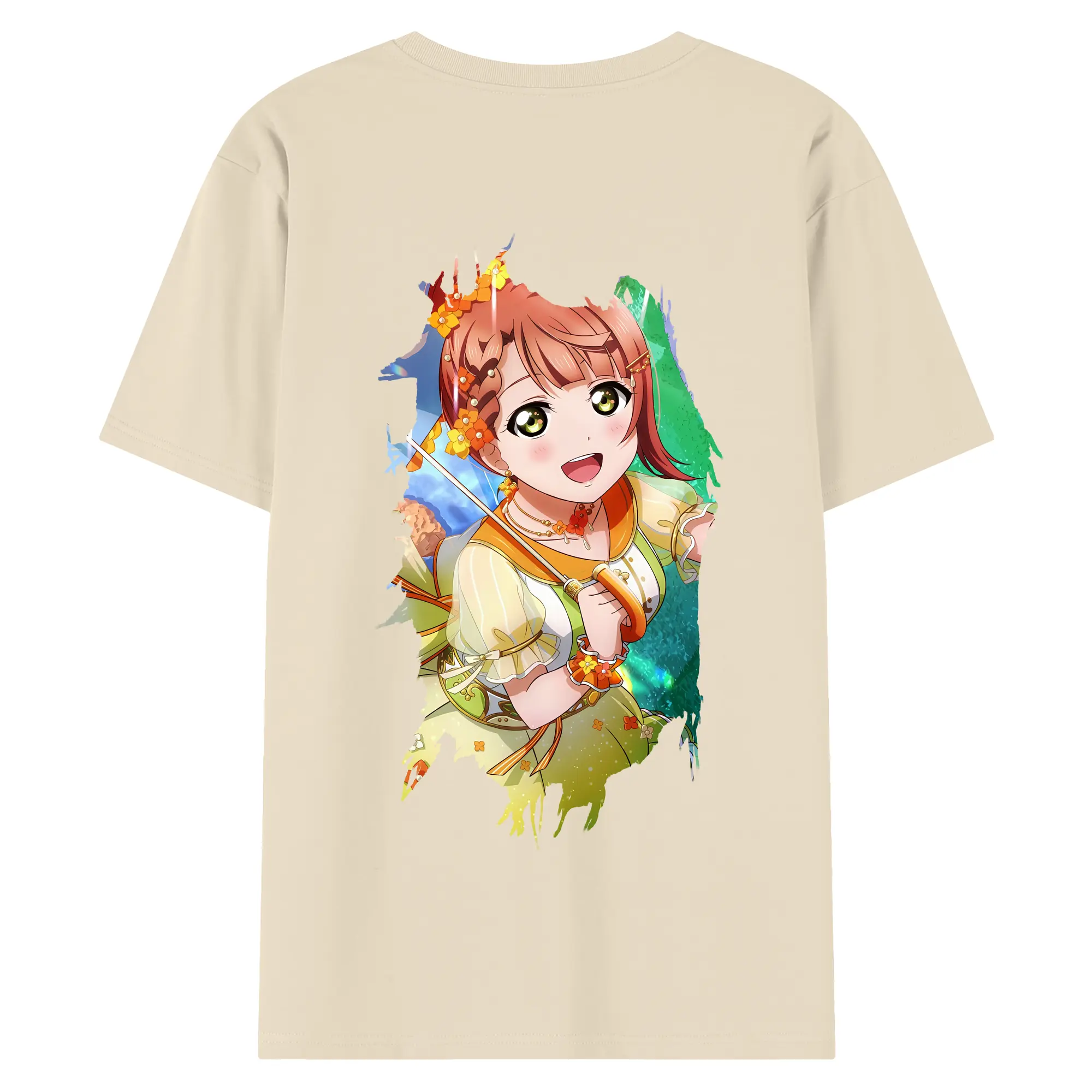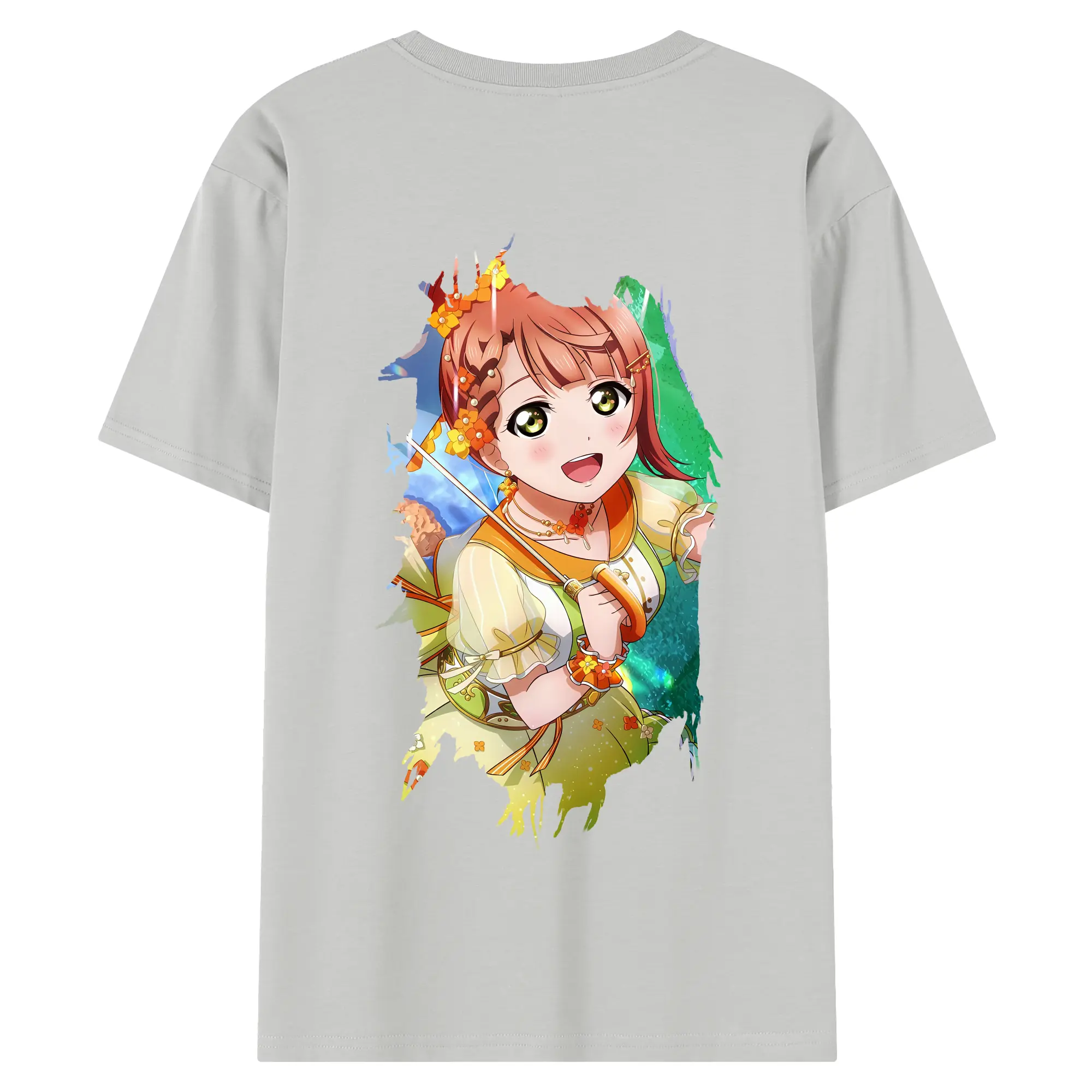 Love Live! グッズ,上原歩夢 - 綿100% ヴィンテージ風 半袖Tシャツ ・ 背面プリント ・ 柔らか肌触り ・ 通気性 快適 ・ スポーツ カジュアル 外出用