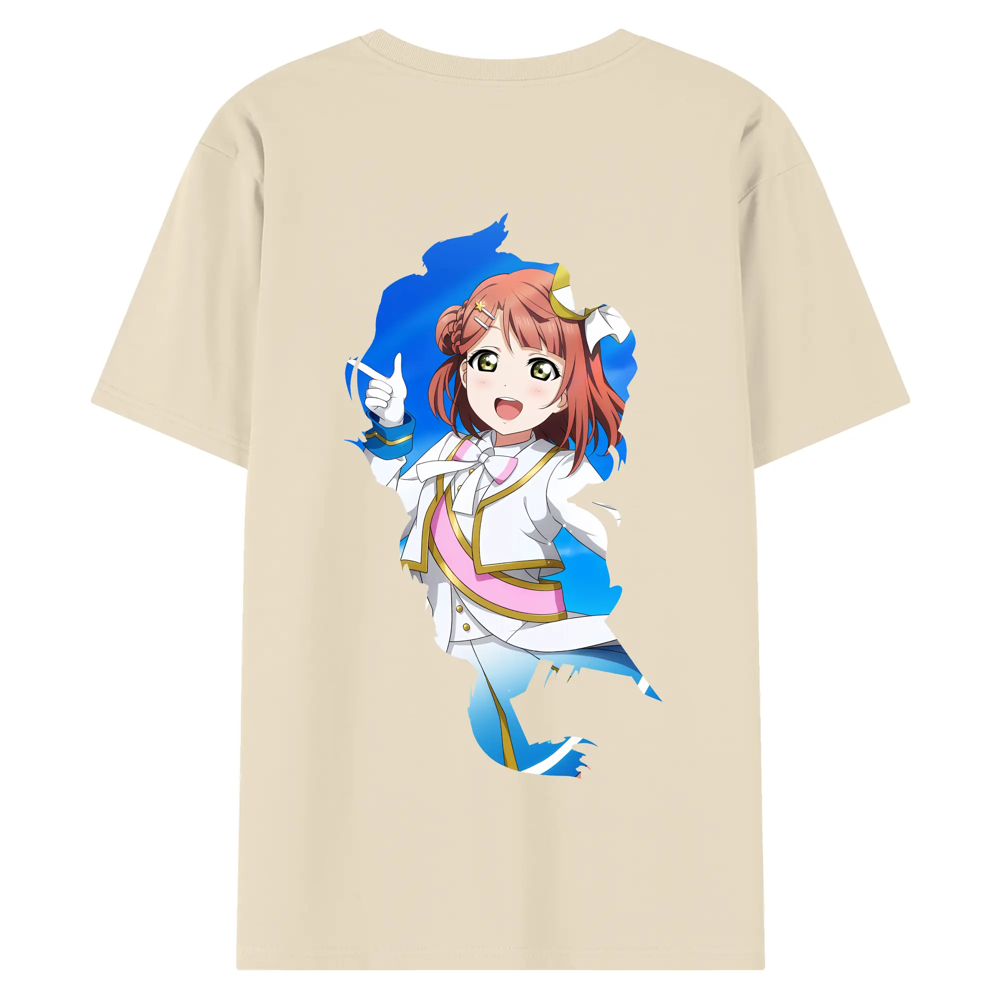 Love Live! グッズ,上原歩夢 - 綿100% ヴィンテージ風 半袖Tシャツ ・ 背面プリント ・ 柔らか肌触り ・ 通気性 快適 ・ スポーツ カジュアル 外出用