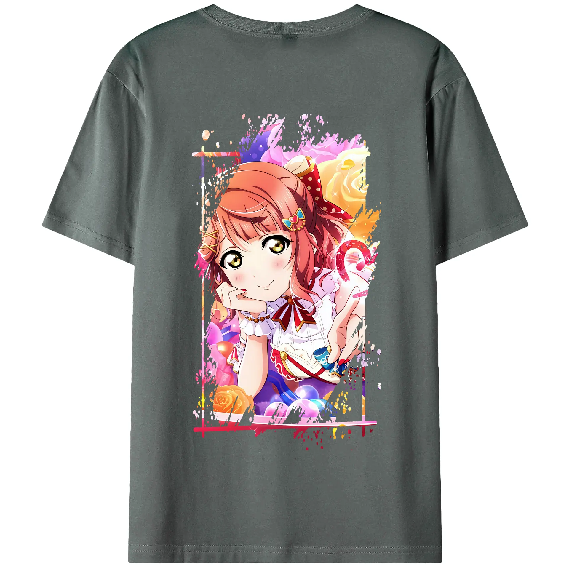Love Live! グッズ,上原歩夢 - 綿100% ヴィンテージ風 半袖Tシャツ ・ フロントプリント ・ 柔らか肌触り ・ 通気性 快適 ・ スポーツ カジュアル 外出用