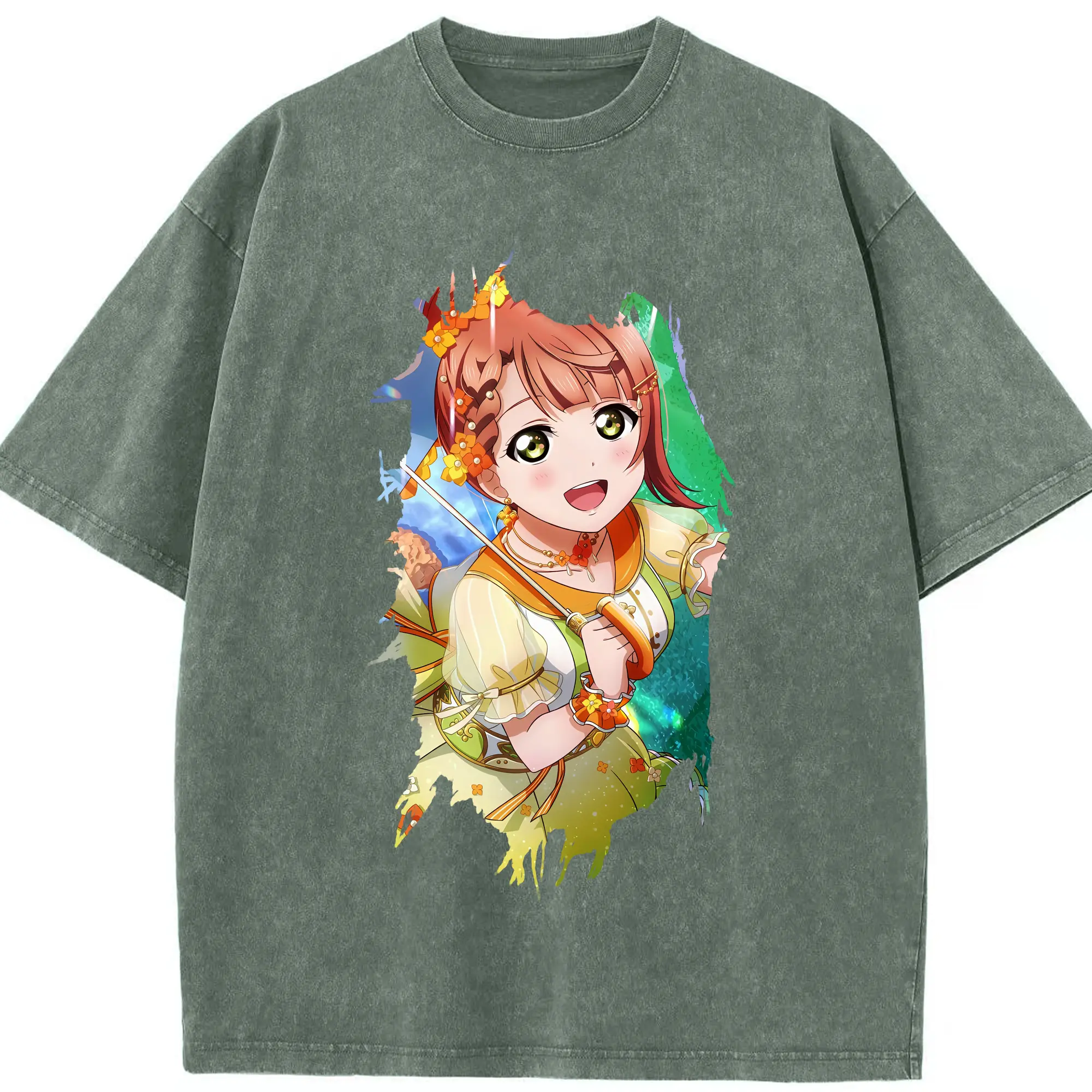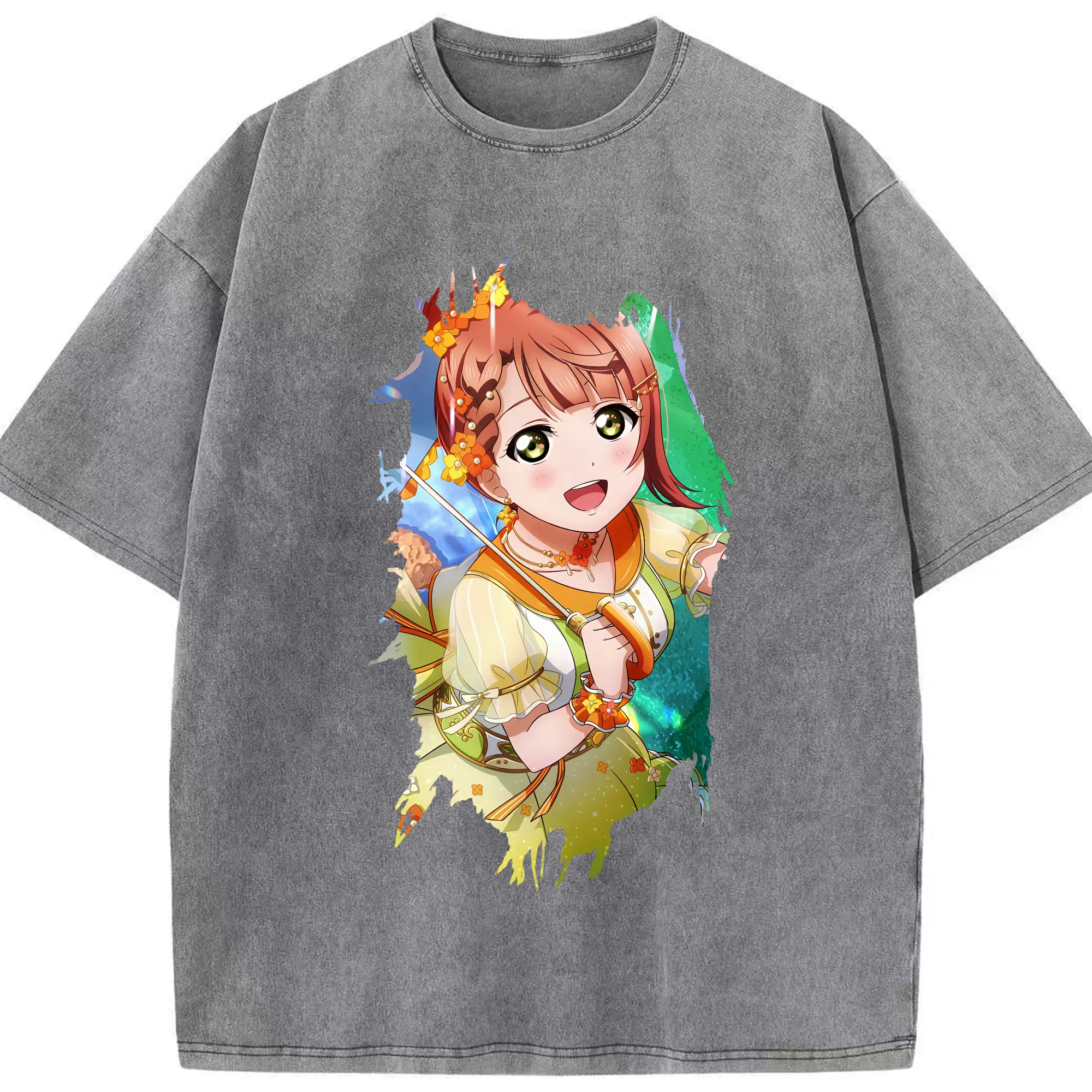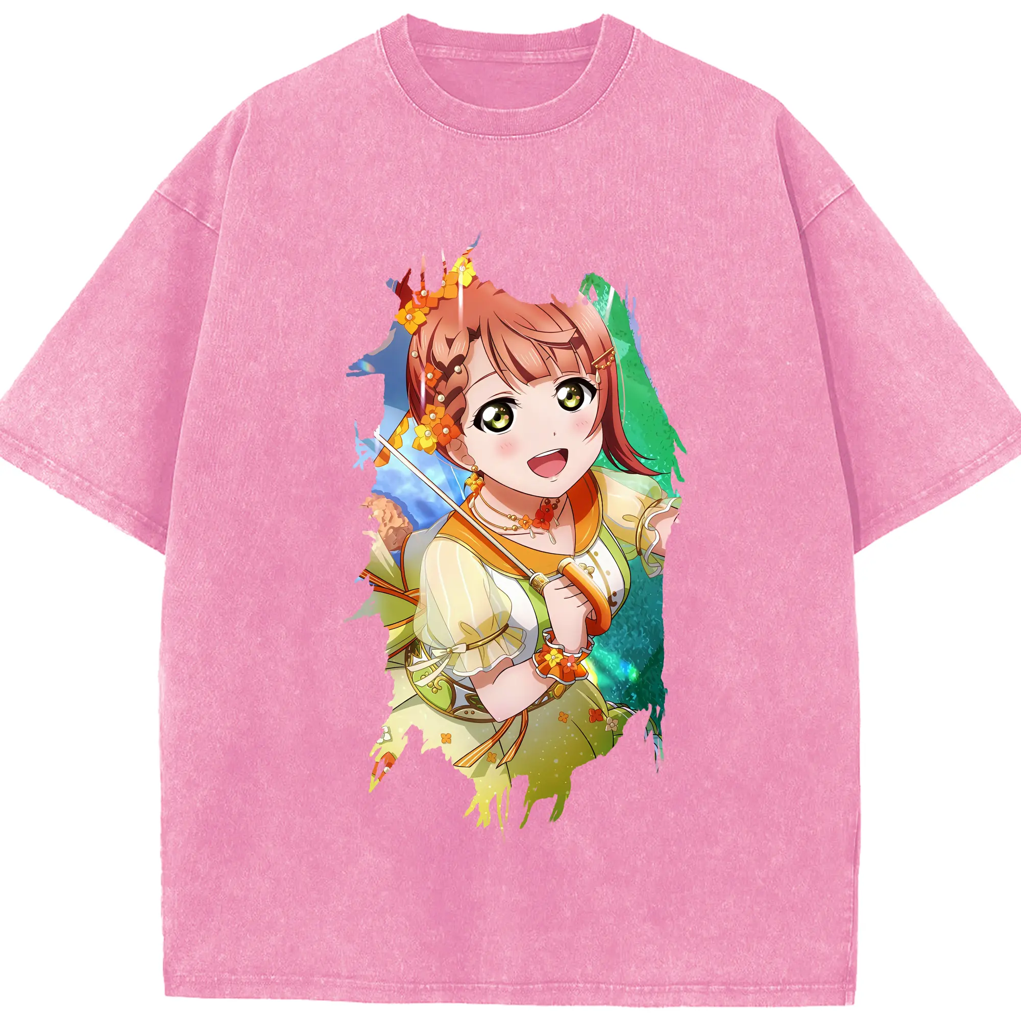 Love Live! グッズ,上原歩夢 - 綿100% ヴィンテージ風 半袖Tシャツ ・ 背面プリント ・ 柔らか肌触り ・ 通気性 快適 ・ スポーツ カジュアル 外出用