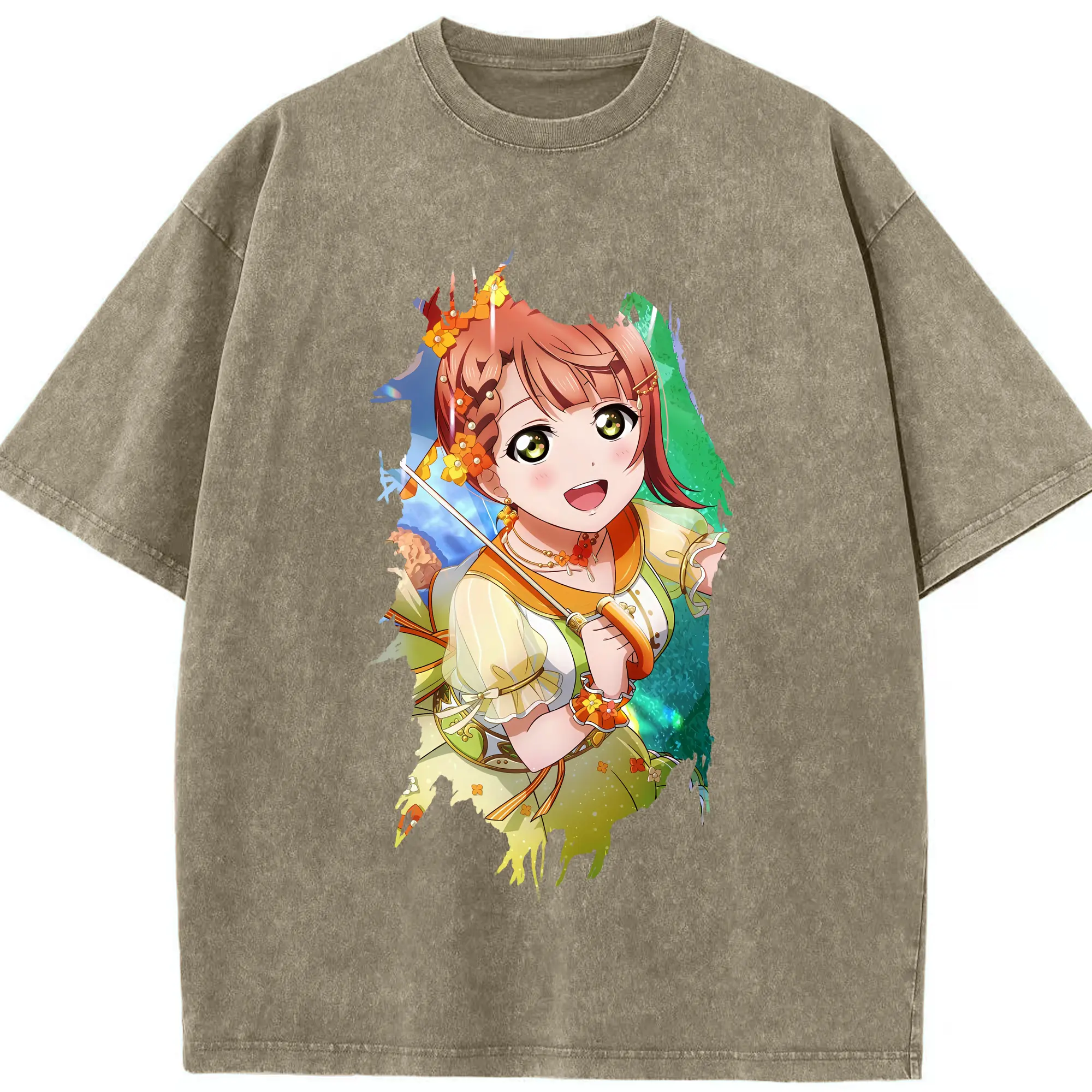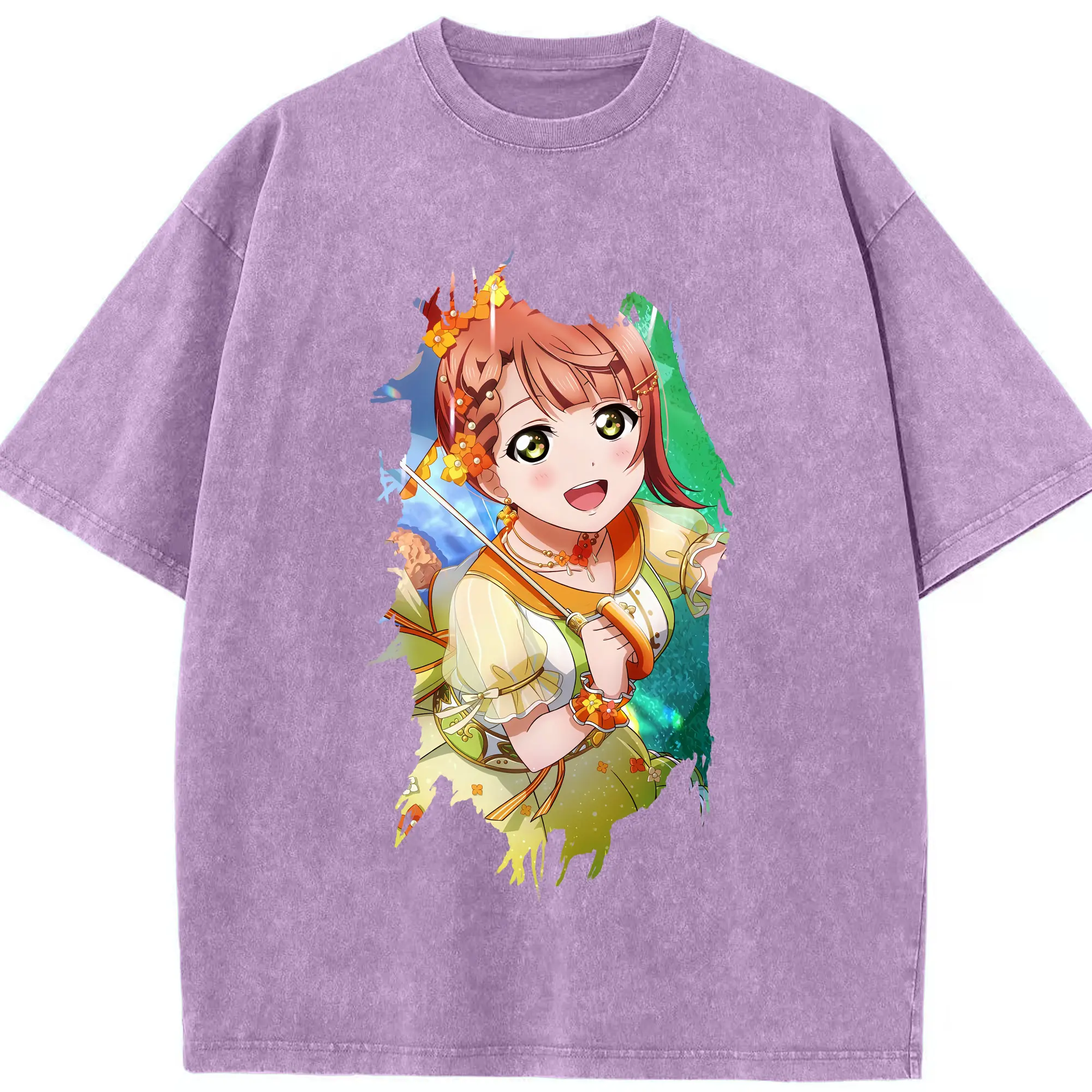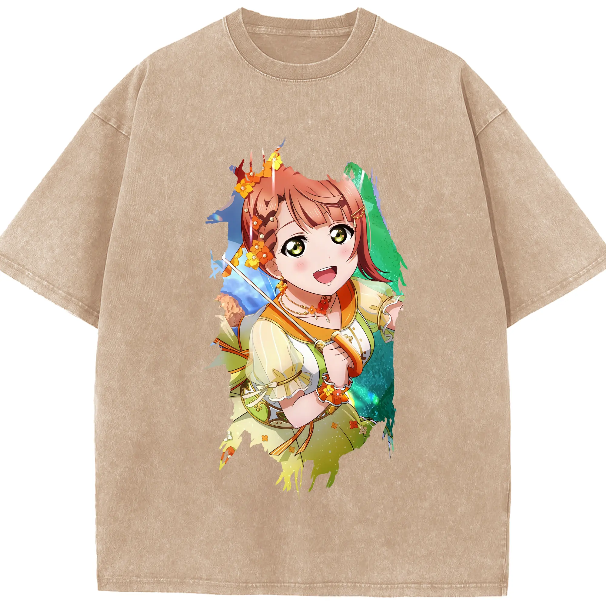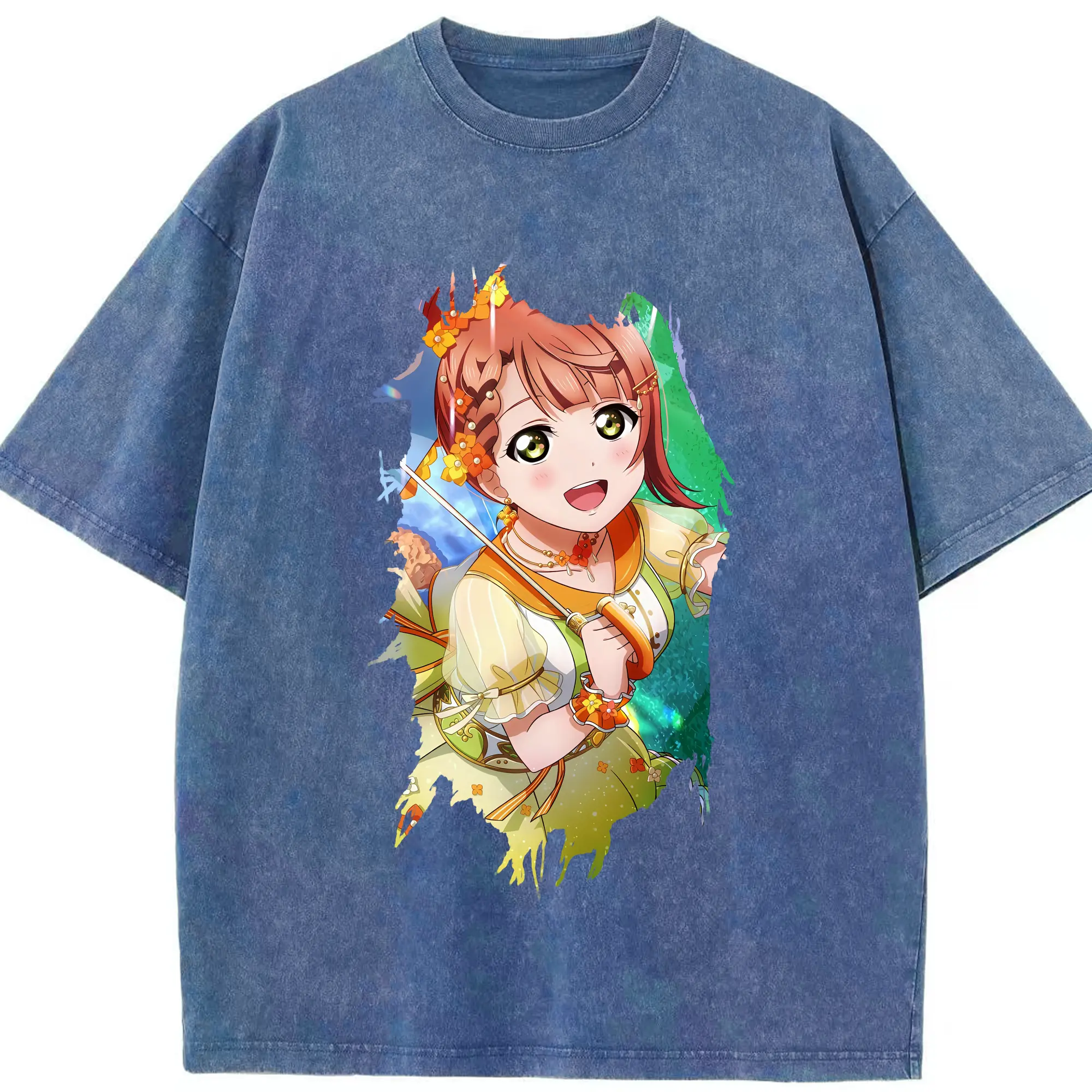 Love Live! グッズ,上原歩夢 - 綿100% ヴィンテージ風 半袖Tシャツ ・ 背面プリント ・ 柔らか肌触り ・ 通気性 快適 ・ スポーツ カジュアル 外出用