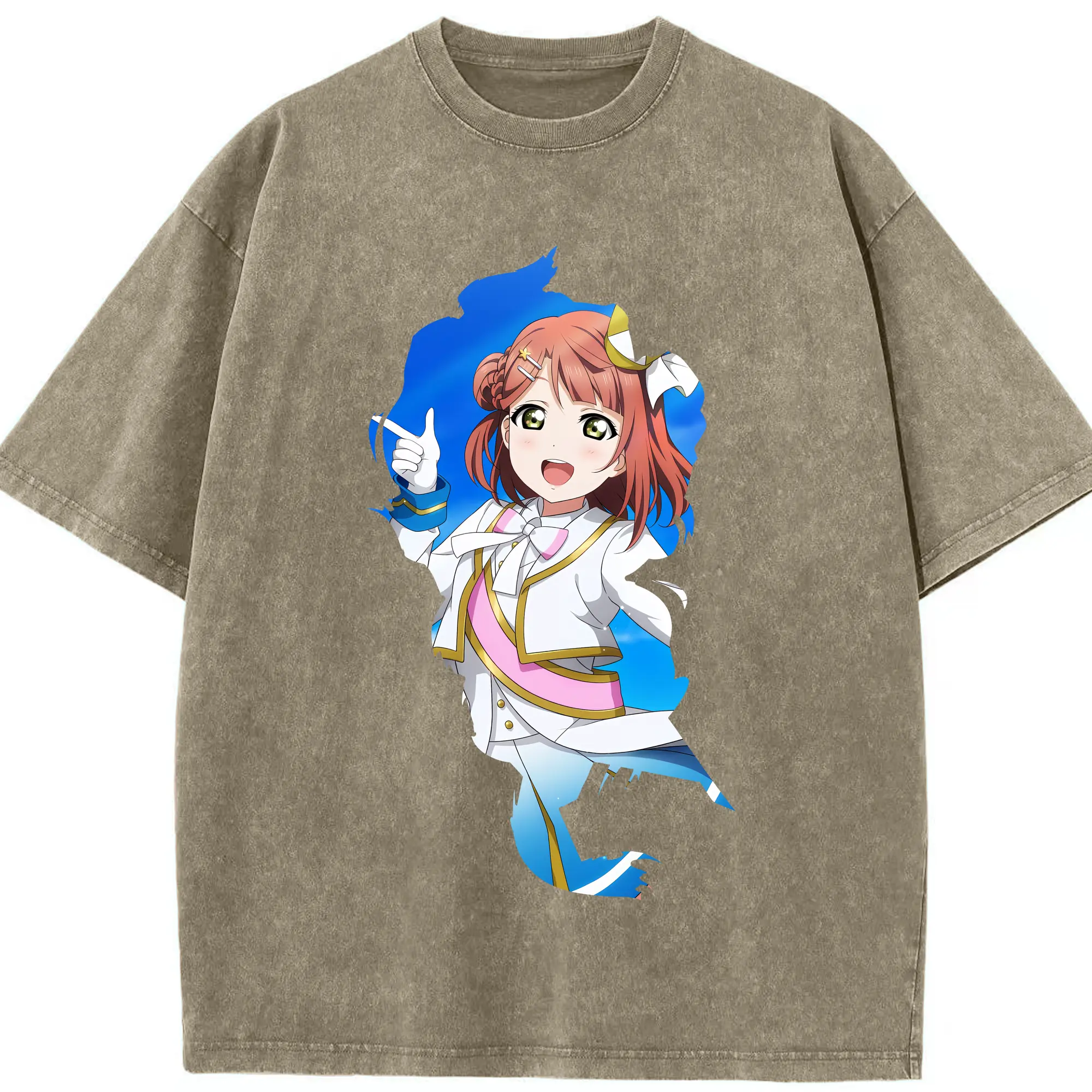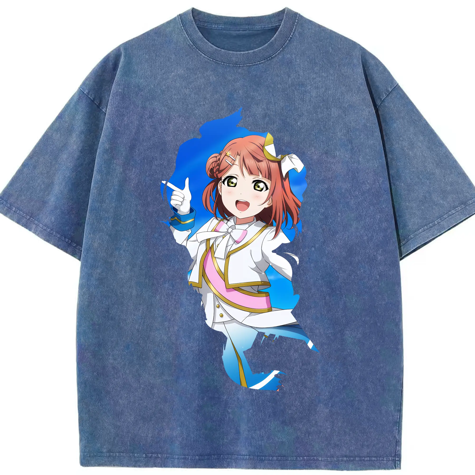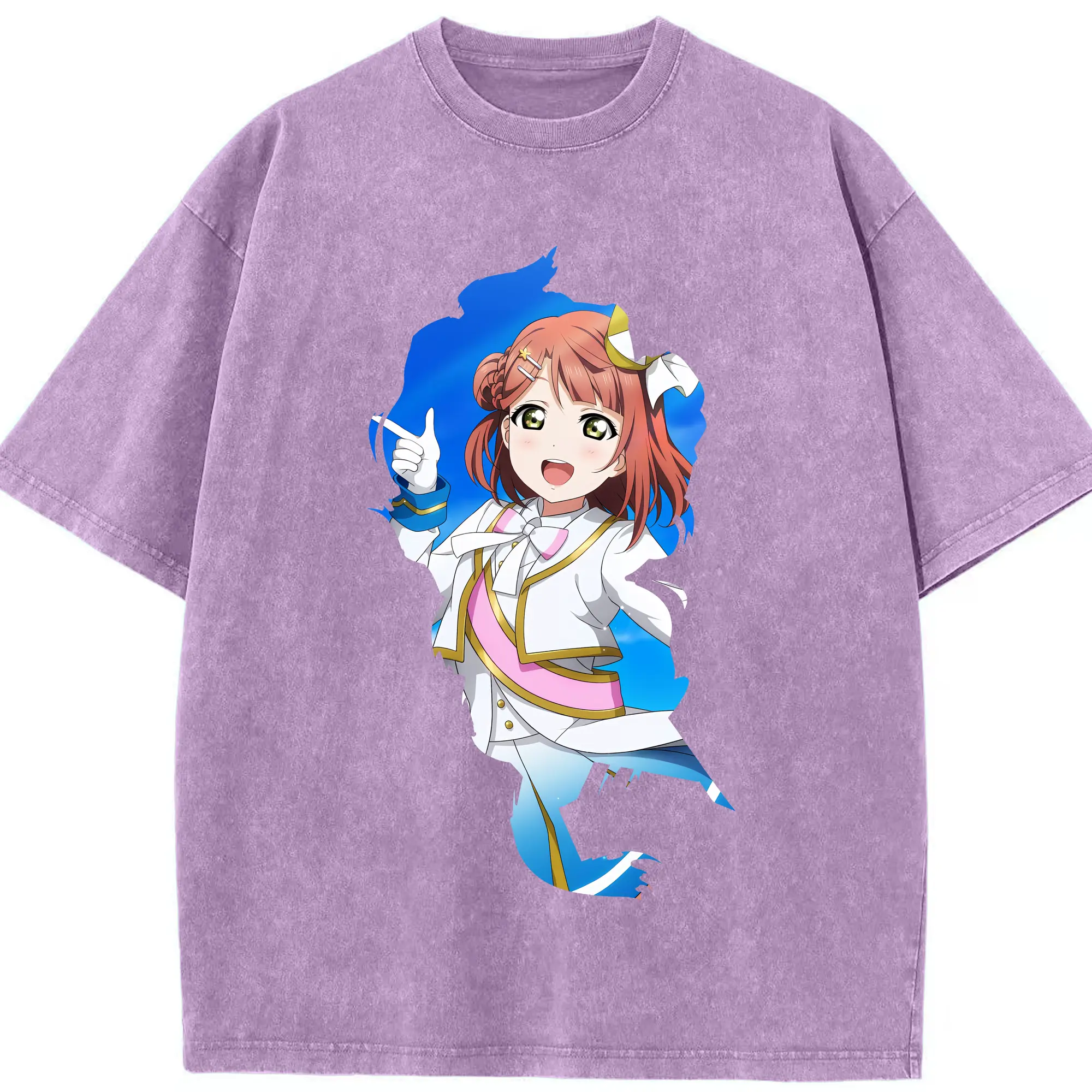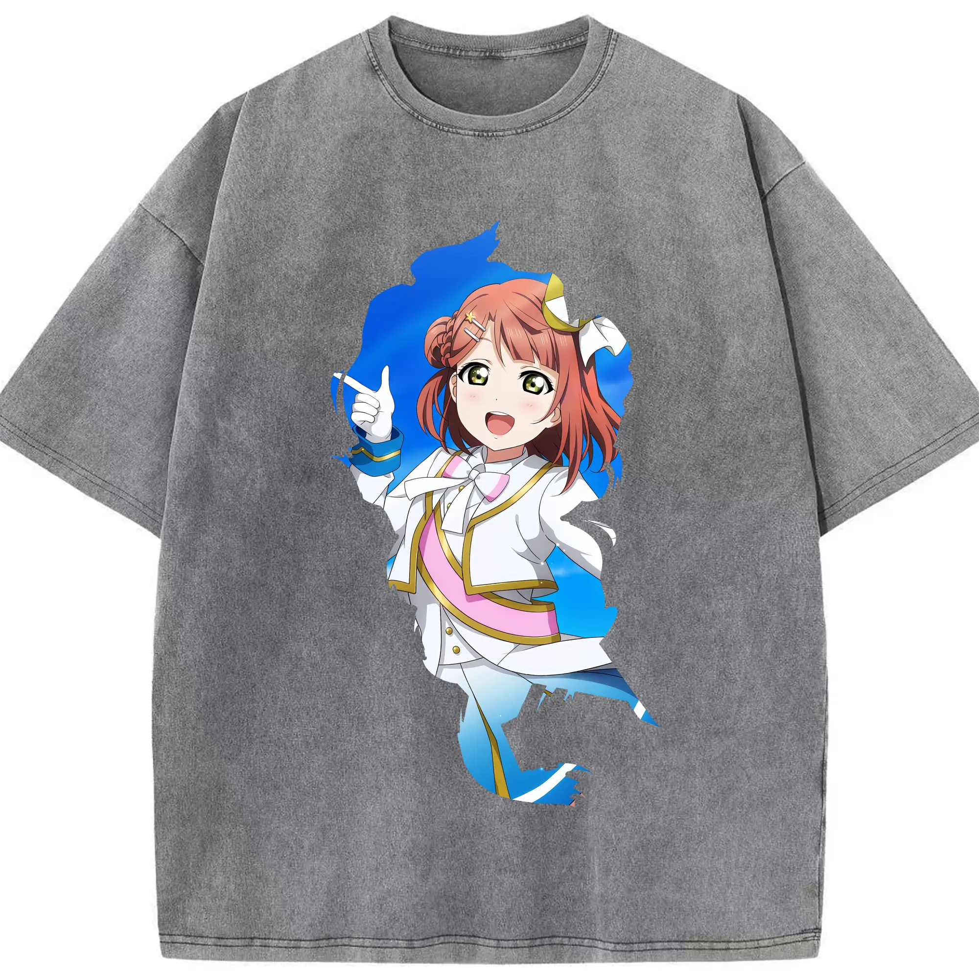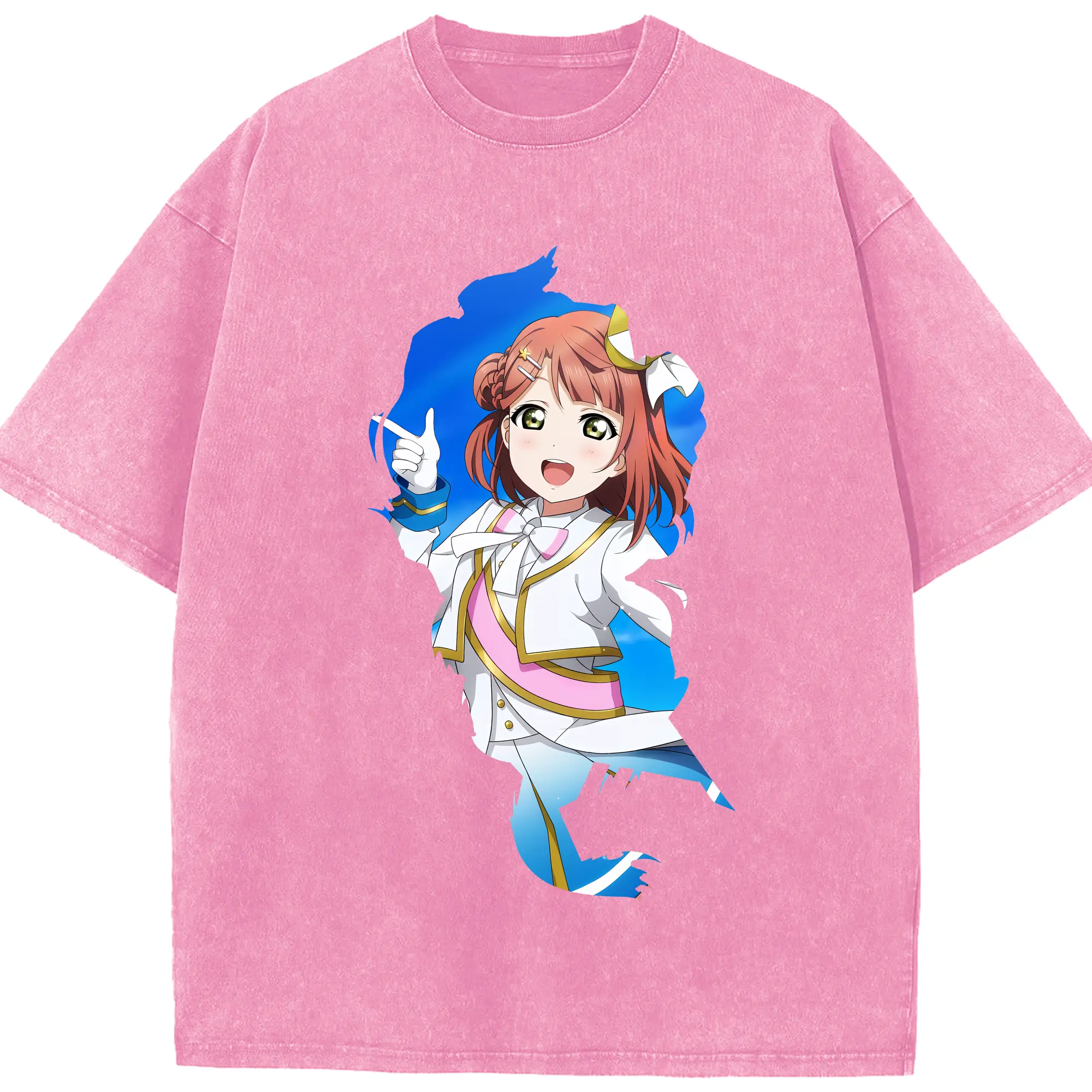 Love Live! グッズ,上原歩夢 - 綿100% ヴィンテージ風 半袖Tシャツ ・ 背面プリント ・ 柔らか肌触り ・ 通気性 快適 ・ スポーツ カジュアル 外出用