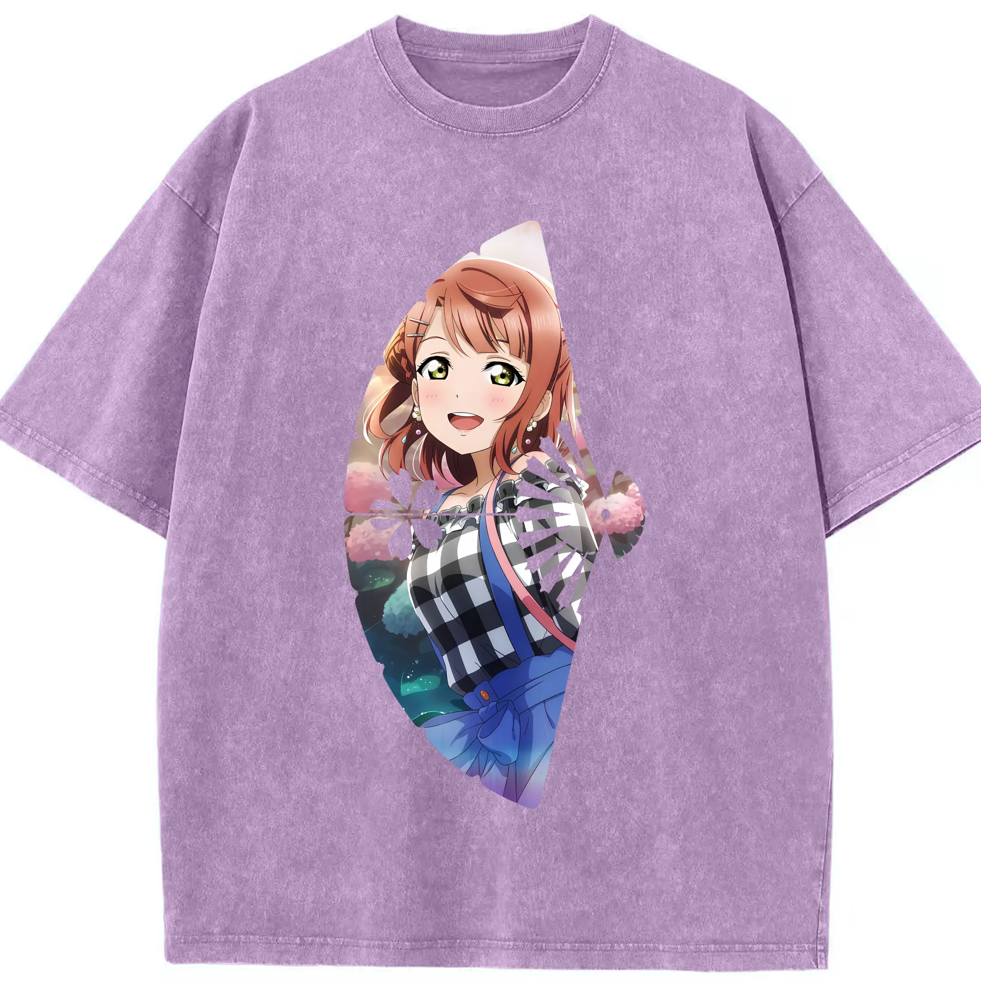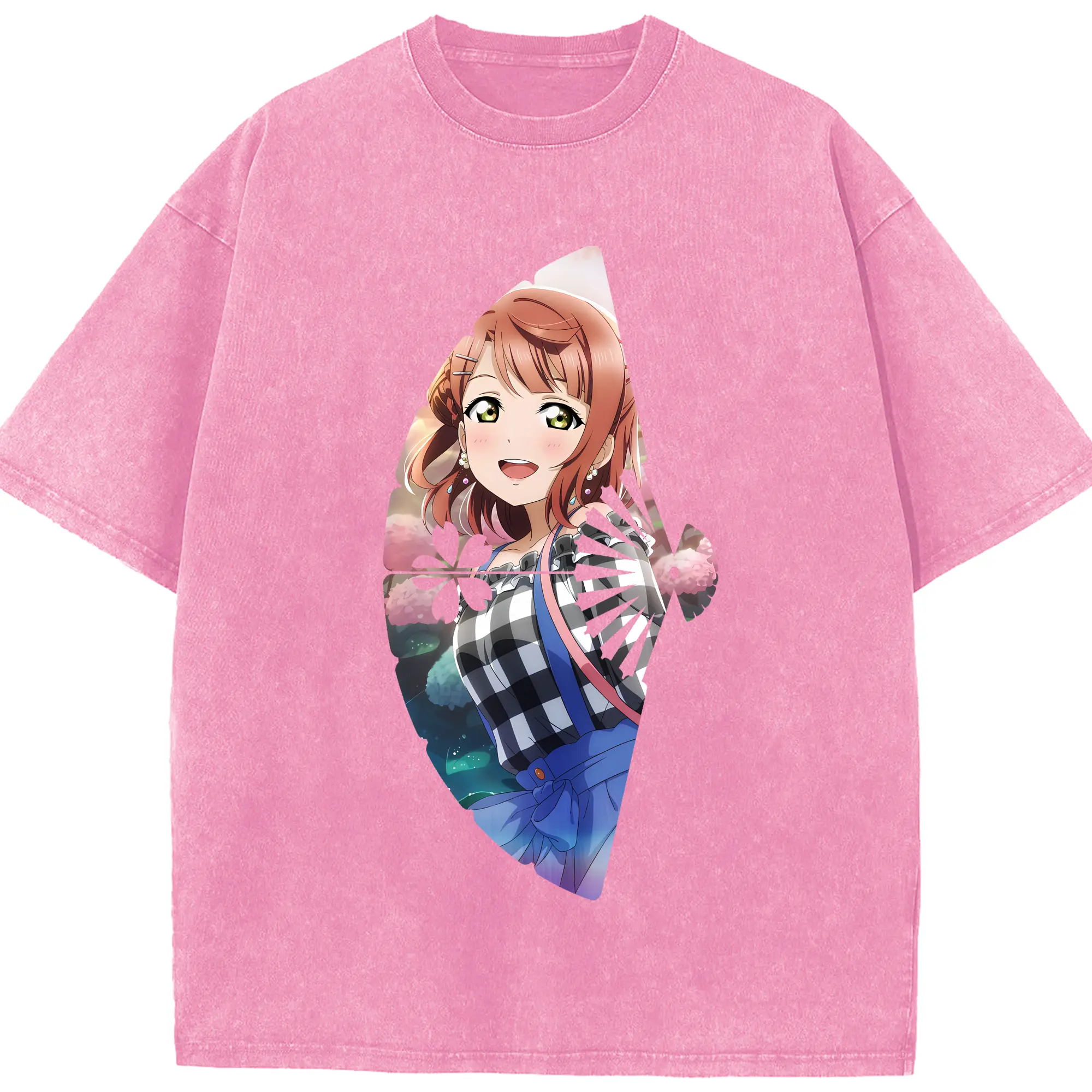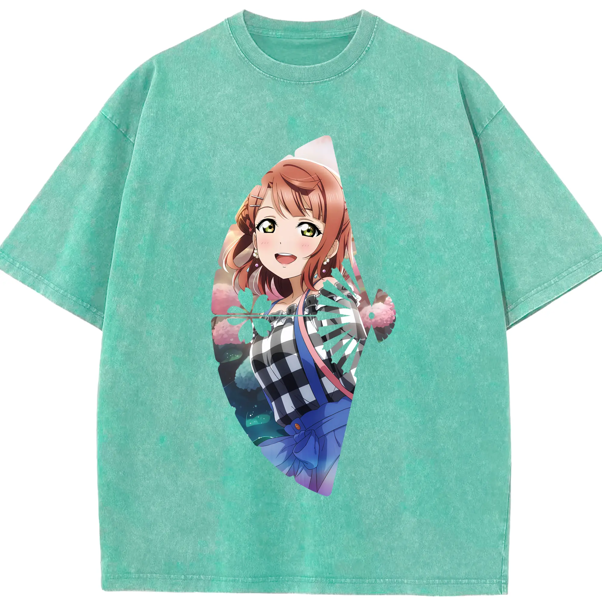 Love Live! グッズ,上原歩夢 - 綿100% ヴィンテージ風 半袖Tシャツ ・ 背面プリント ・ 柔らか肌触り ・ 通気性 快適 ・ スポーツ カジュアル 外出用