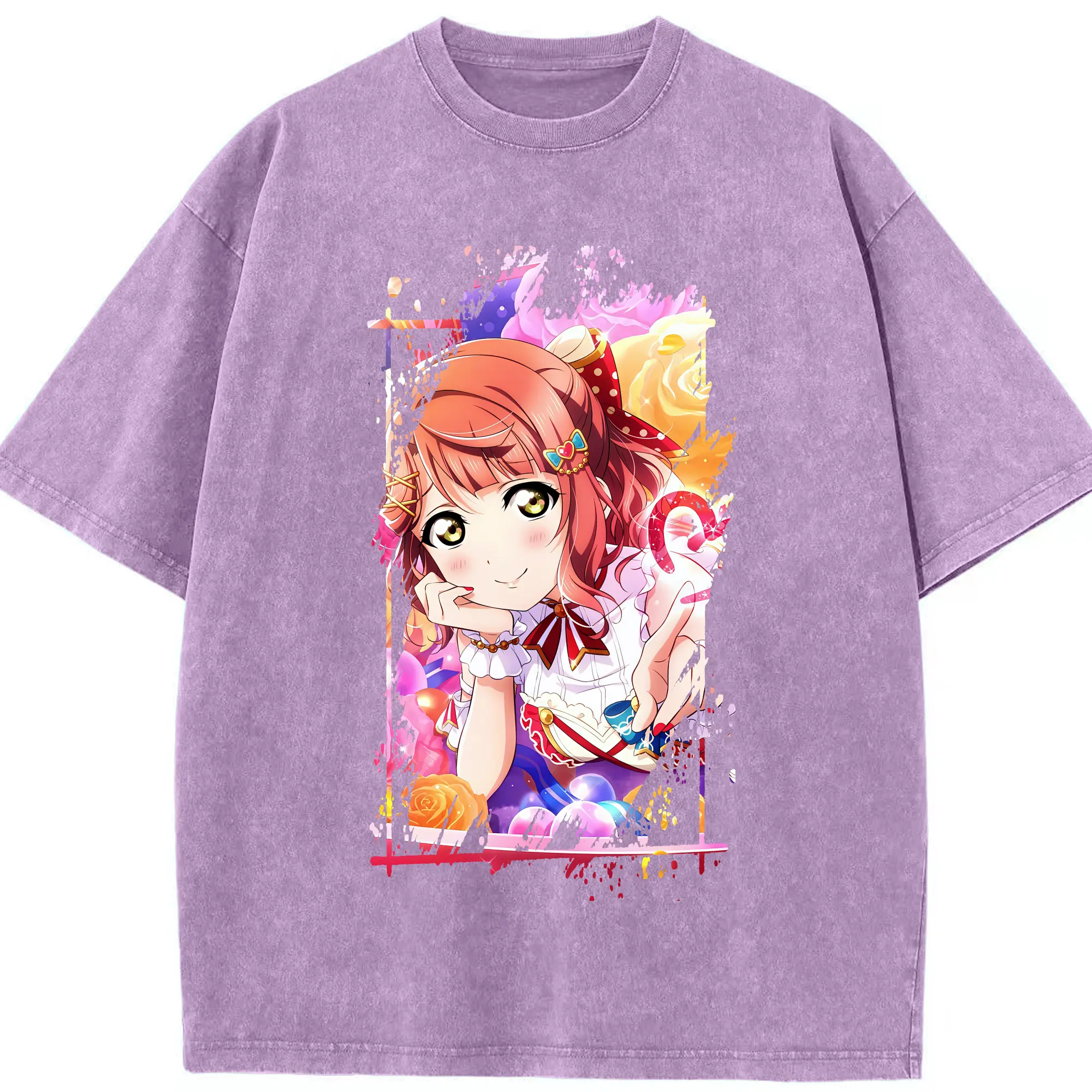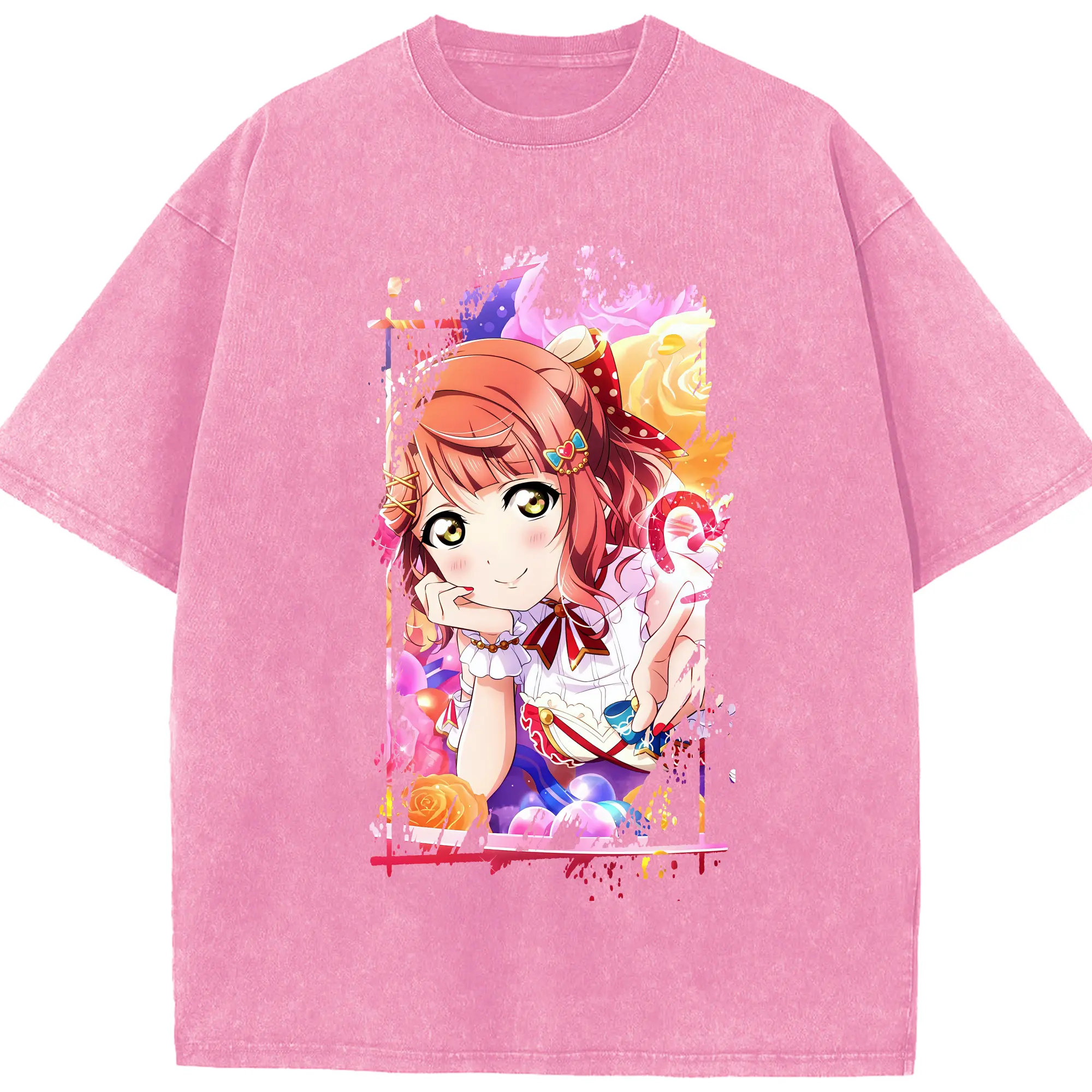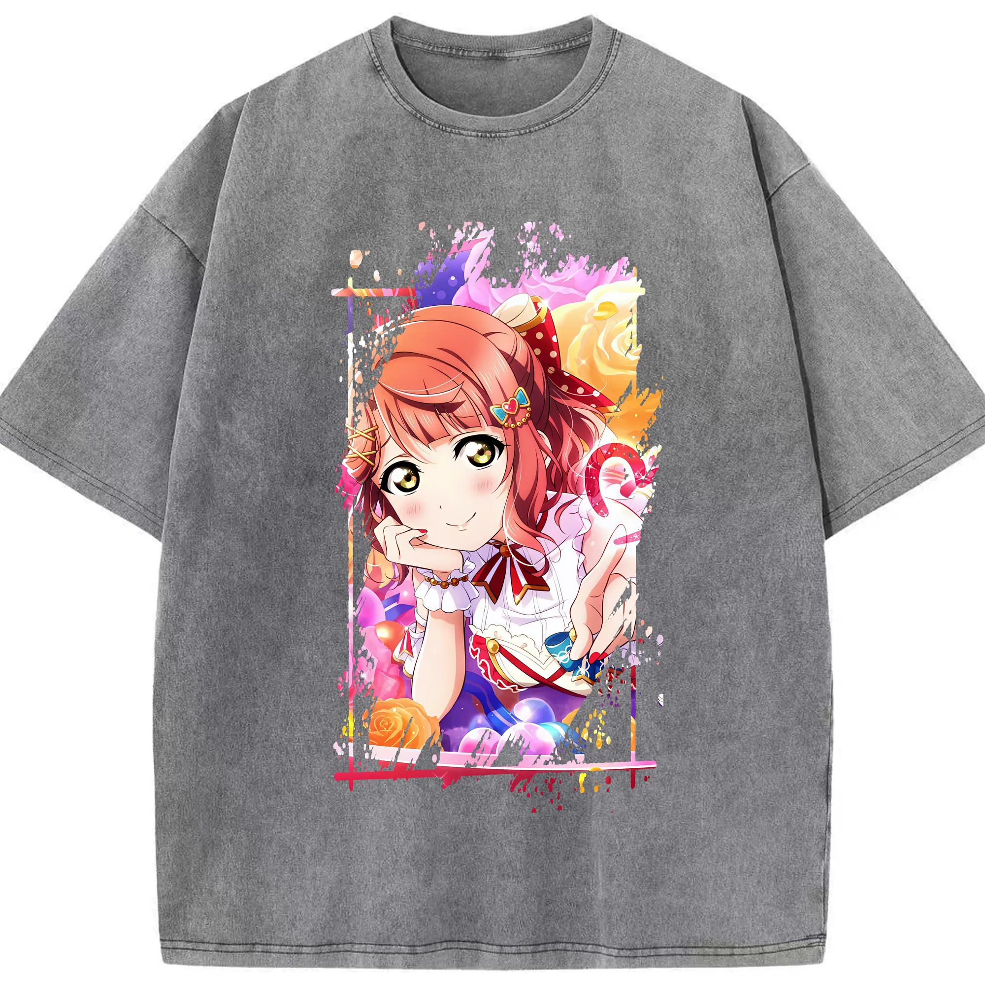 Love Live! グッズ,上原歩夢 - 綿100% ヴィンテージ風 半袖Tシャツ ・ 背面プリント ・ 柔らか肌触り ・ 通気性 快適 ・ スポーツ カジュアル 外出用