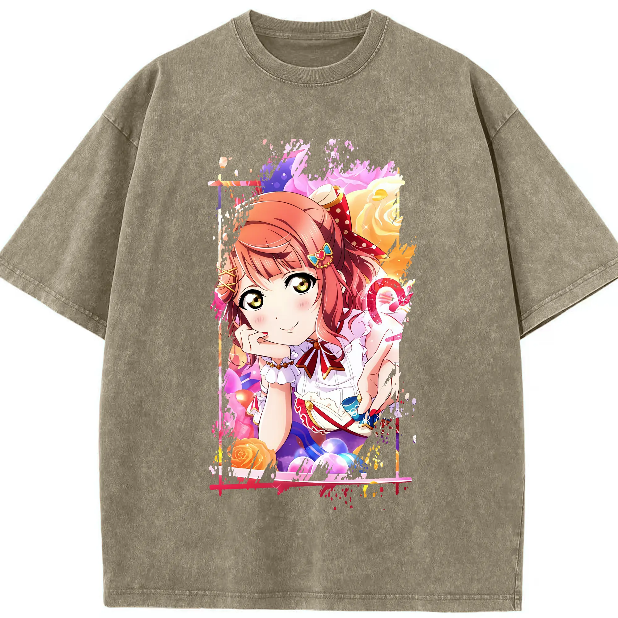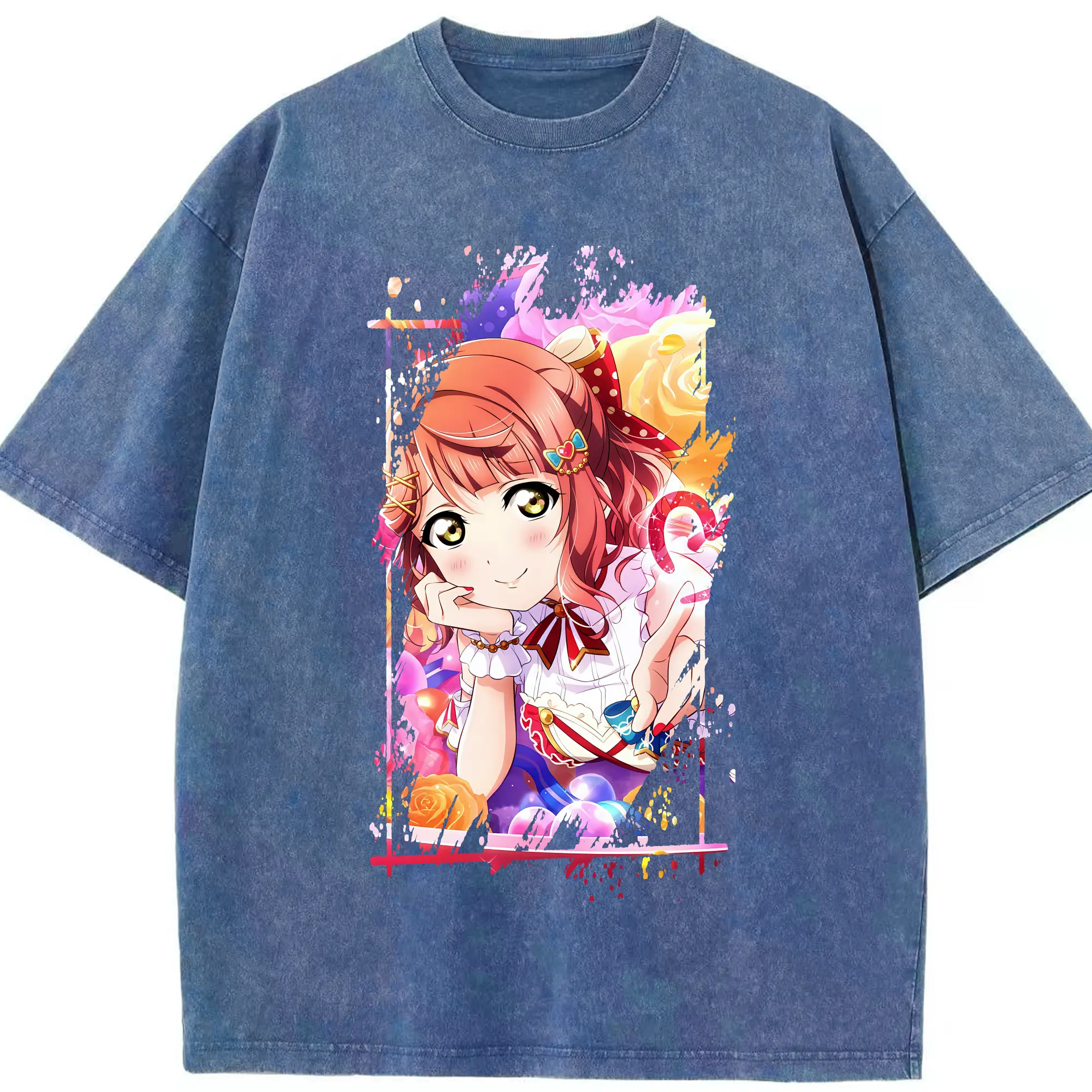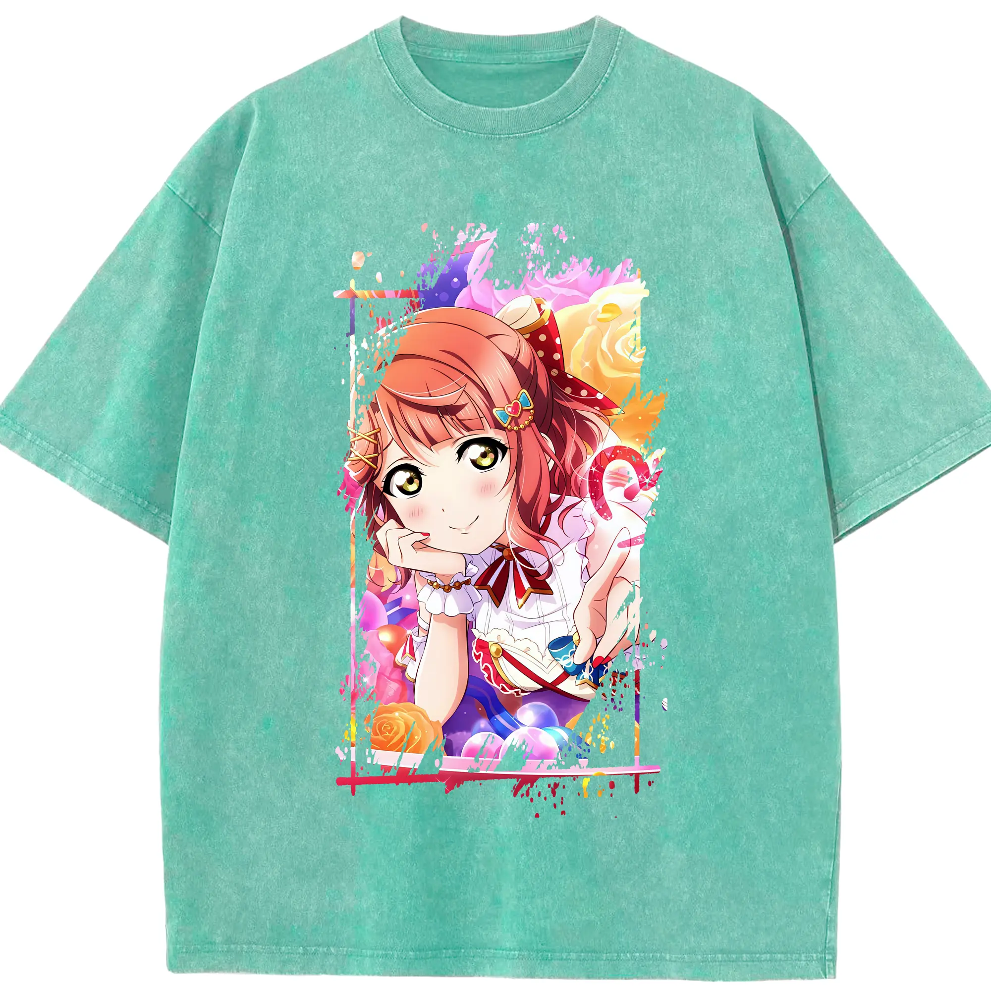 Love Live! グッズ,上原歩夢 - 綿100% ヴィンテージ風 半袖Tシャツ ・ 背面プリント ・ 柔らか肌触り ・ 通気性 快適 ・ スポーツ カジュアル 外出用