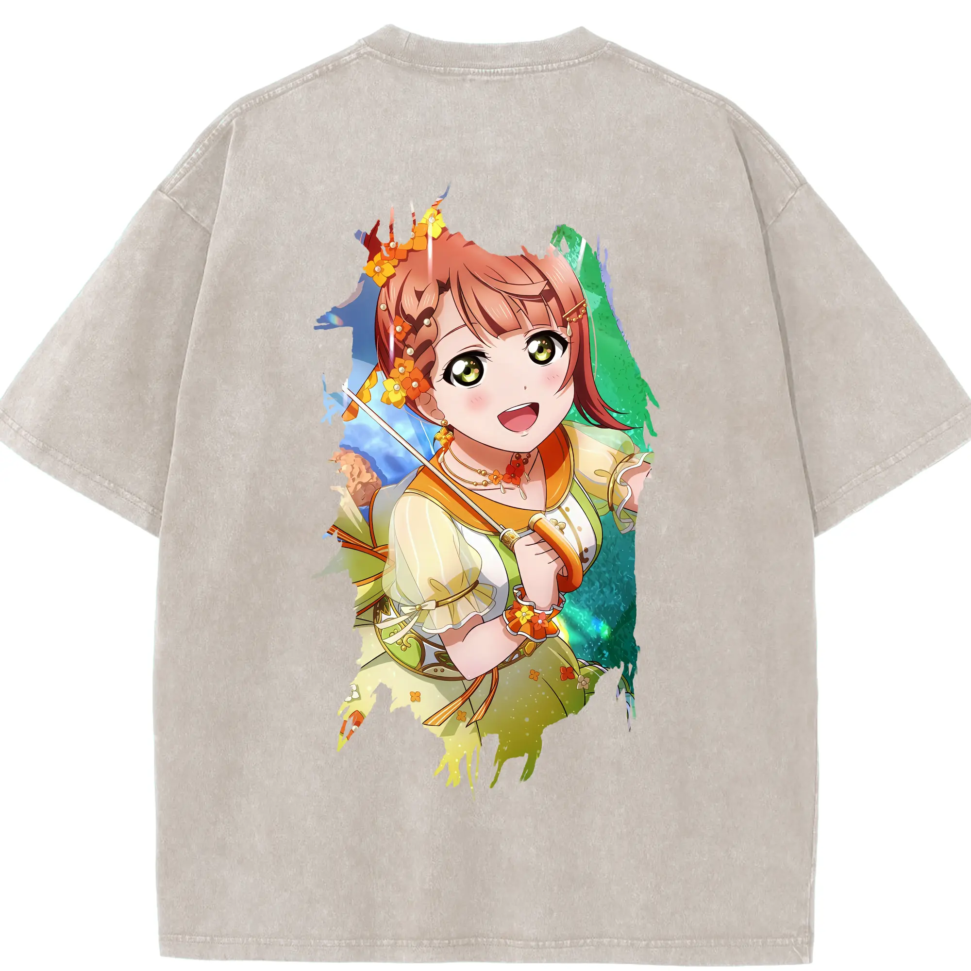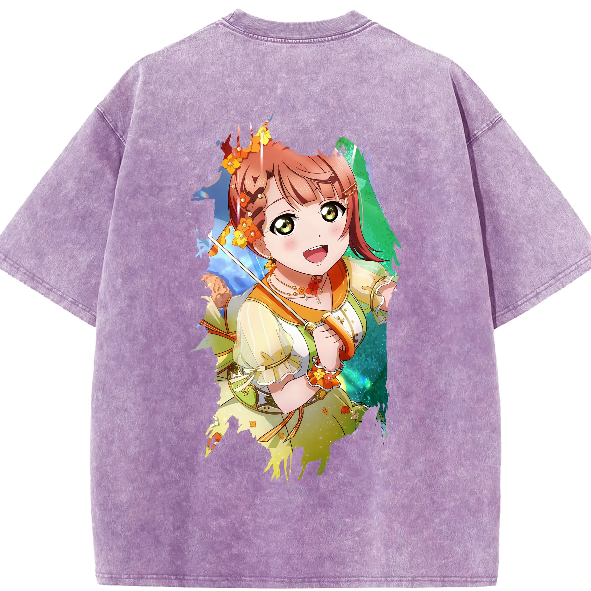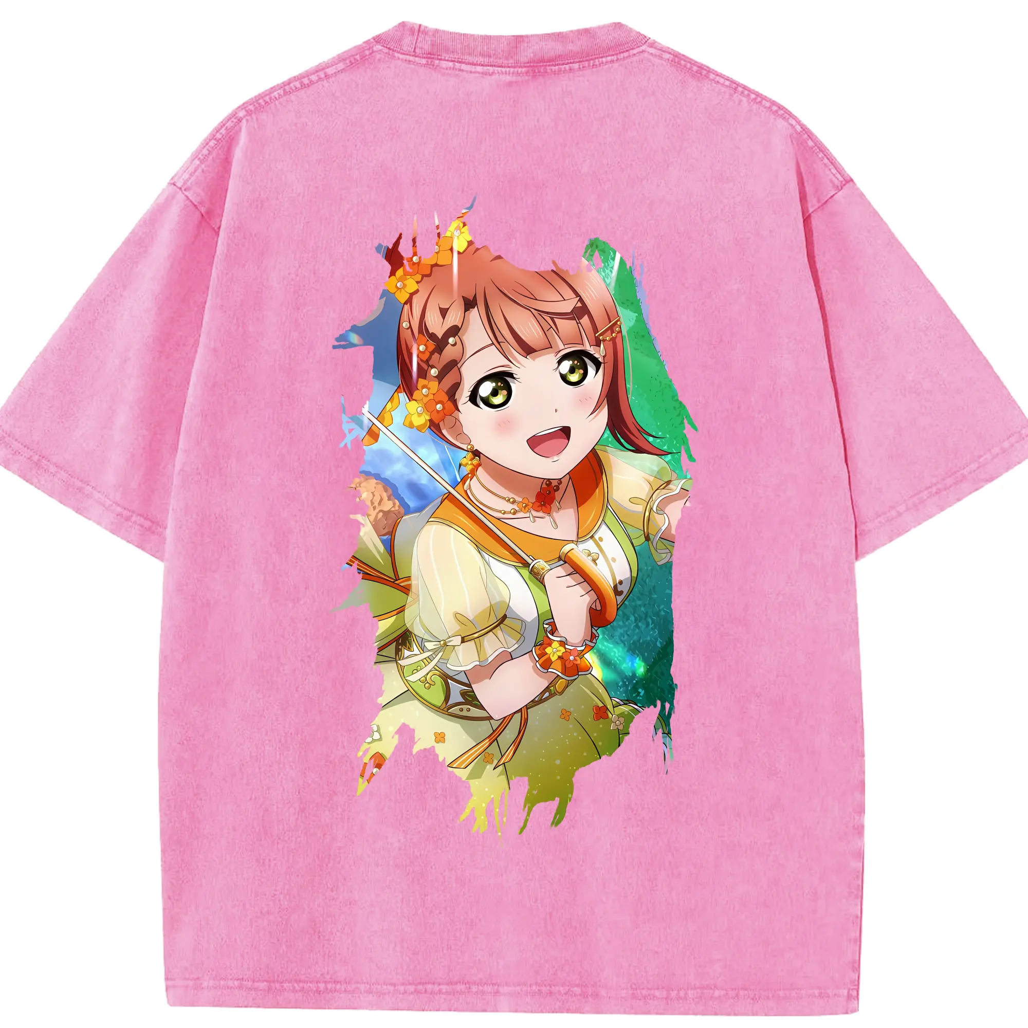 Love Live! グッズ,上原歩夢 - 綿100% ヴィンテージ風 半袖Tシャツ ・ フロントプリント ・ 柔らか肌触り ・ 通気性 快適 ・ スポーツ カジュアル 外出用