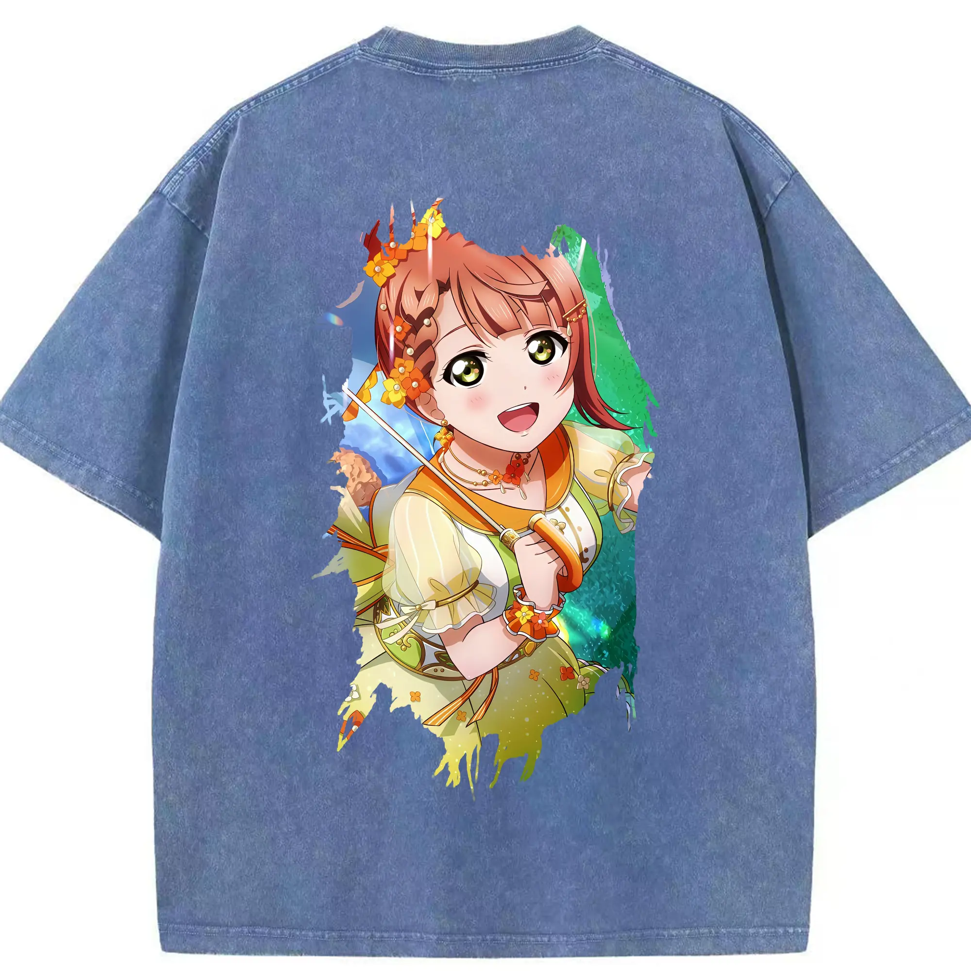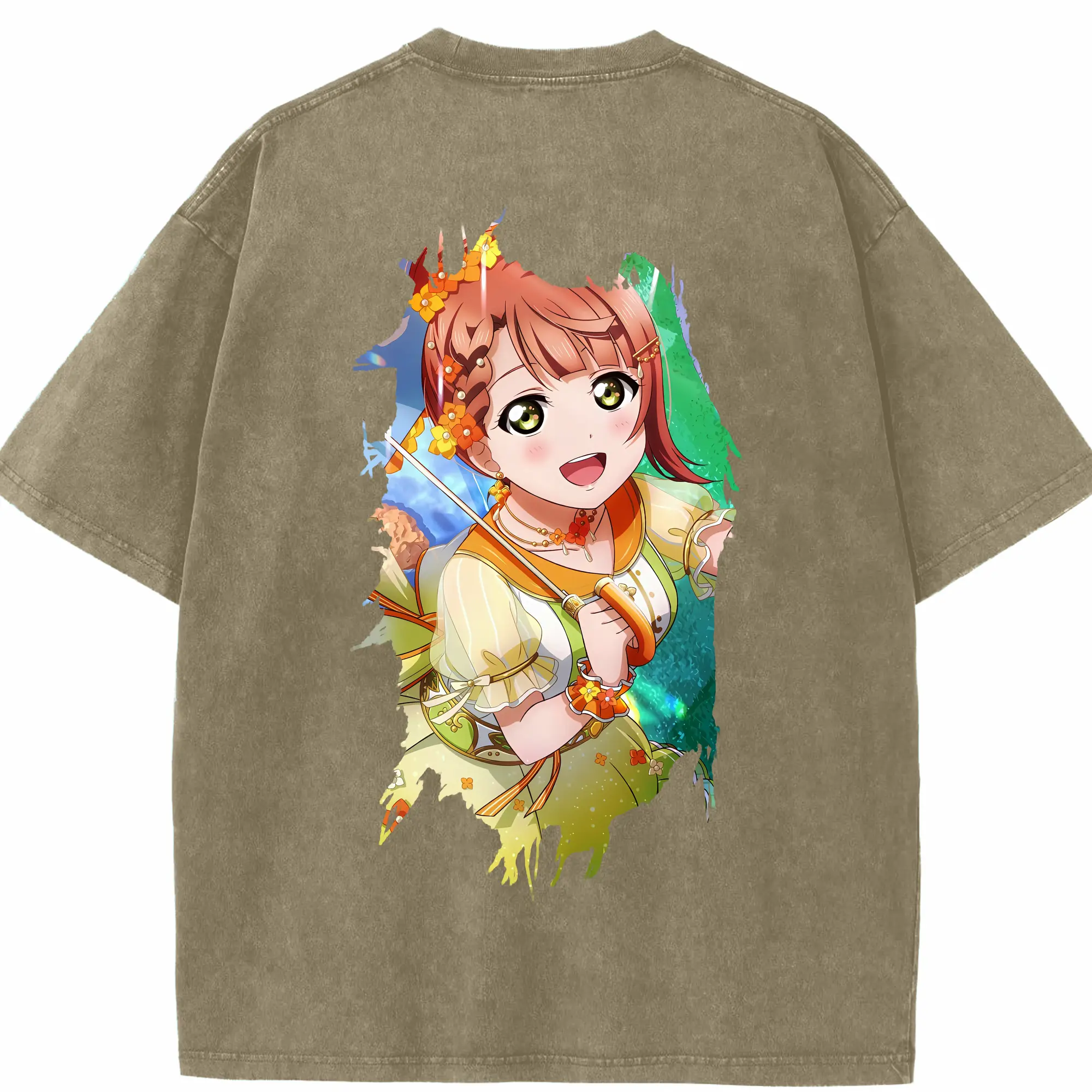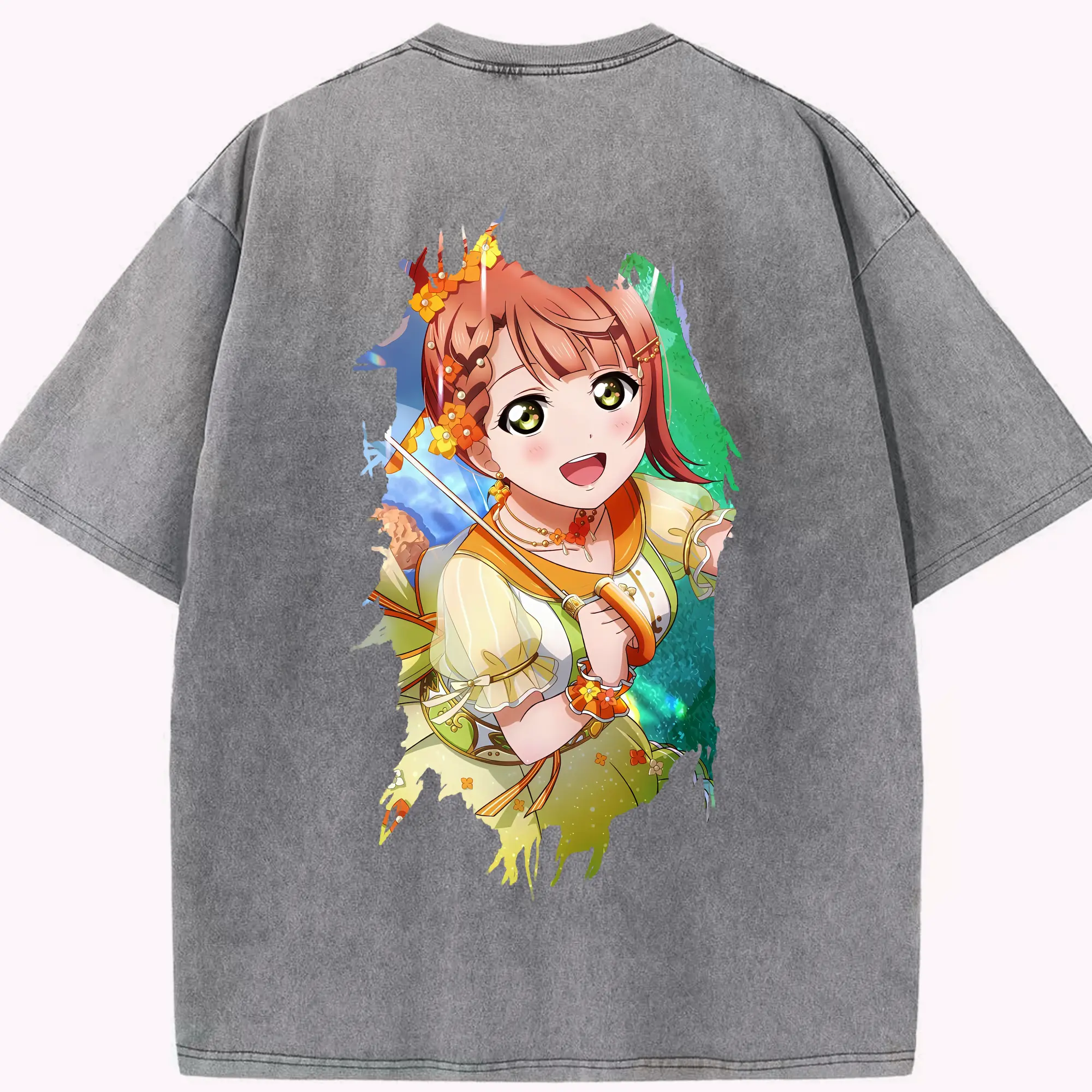 Love Live! グッズ,上原歩夢 - 綿100% ヴィンテージ風 半袖Tシャツ ・ フロントプリント ・ 柔らか肌触り ・ 通気性 快適 ・ スポーツ カジュアル 外出用