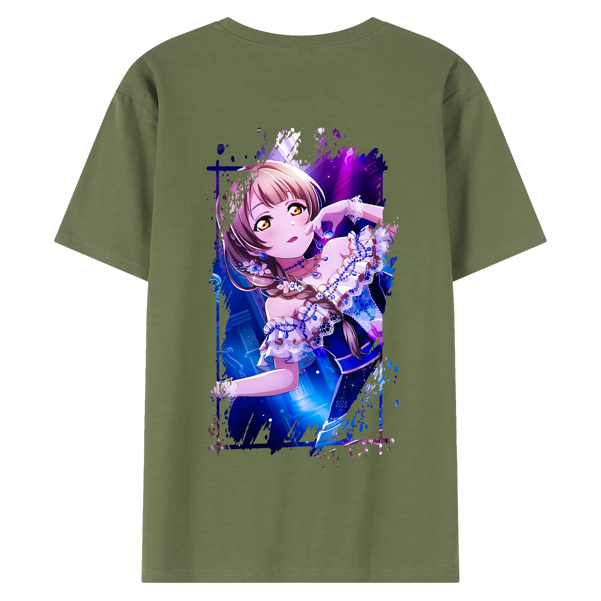 Love Live! グッズ,南ことり - 綿100% ヴィンテージ風 半袖Tシャツ ・ 背面プリント ・ 柔らか肌触り ・ 通気性 快適 ・ スポーツ カジュアル 外出用