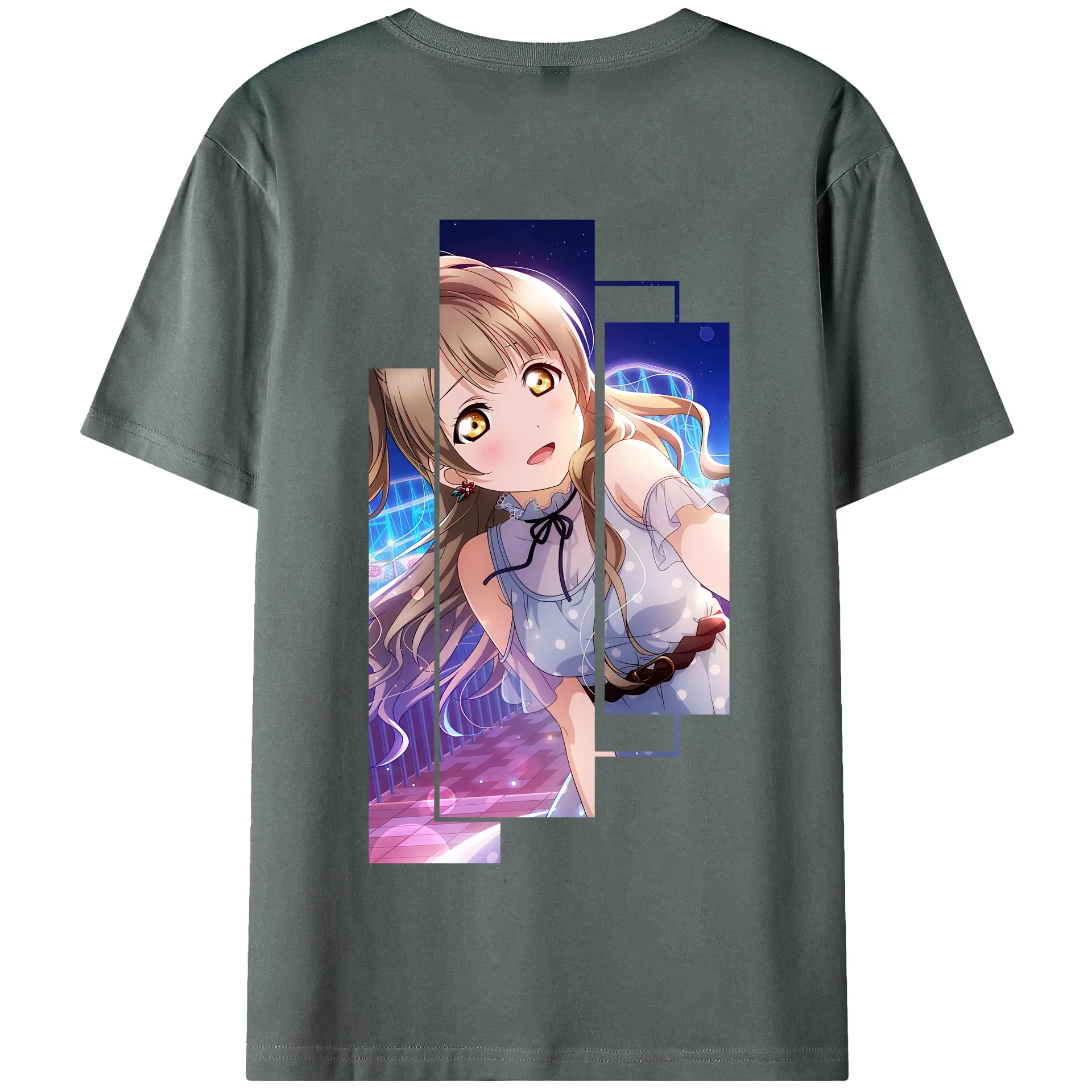 Love Live! グッズ,南ことり - 綿100% ヴィンテージ風 半袖Tシャツ ・ 背面プリント ・ 柔らか肌触り ・ 通気性 快適 ・ スポーツ カジュアル 外出用